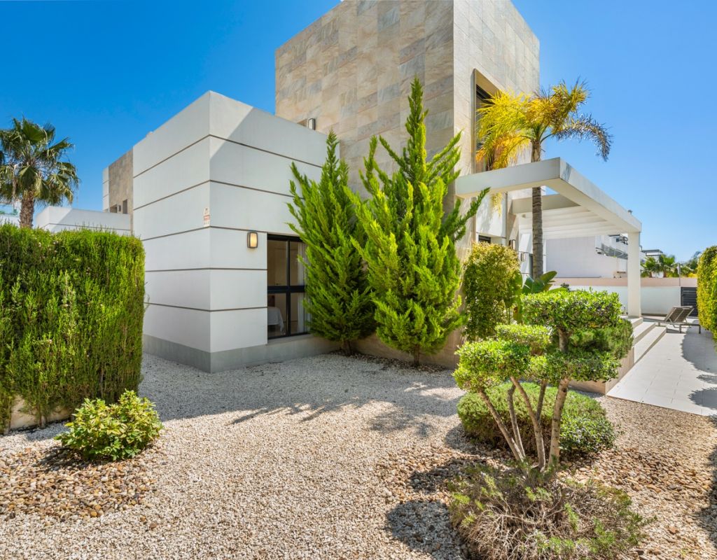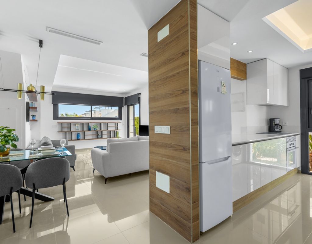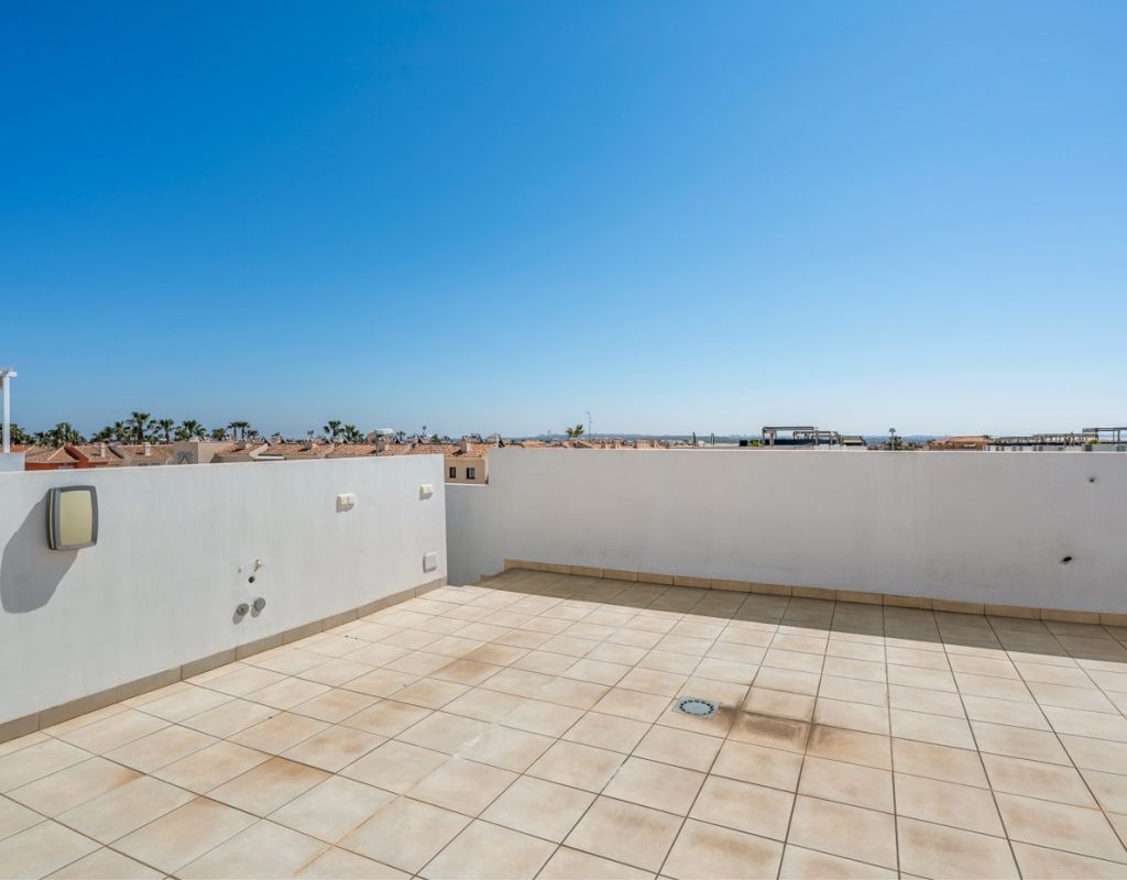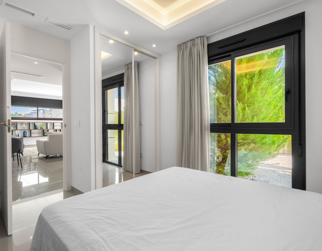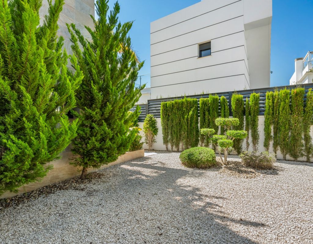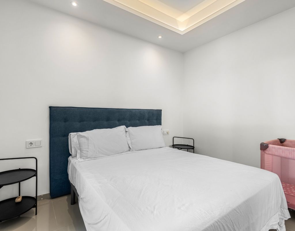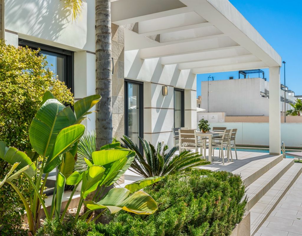 Ontdek deze stijlvolle moderne villa verdeeld over twee verdiepingen, ontworpen voor comfort en functionaliteit. De woning beschikt over 3 ruime tweepersoonsslaapkamers en 3 badkamers. Op de begane grond vindt u een lichte woon- en eetkamer met directe toegang tot buiten, een gedeeltelijk open volledig uitgeruste keuken, één slaapkamer en een badkamer. Daarnaast is er een praktische bergruimte. Op de eerste verdieping bevinden zich twee slaapkamers, beide met en-suite badkamers. De hoofdslaapkamer beschikt over een inloopkast, terwijl de andere slaapkamers ingebouwde kasten hebben. Vanuit deze verdieping heeft u toegang tot een ruim terras dat leidt naar het grote dakterras. De villa is voorzien van centrale airconditioning (warm/koud), vloerverwarming in alle badkamers, dubbele beglazing en een beveiligde toegangsdeur. Daarnaast is er stijlvolle geïntegreerde LED-verlichting in de woonkamer en in twee slaapkamers. BuitenruimteDe woning ligt op een perceel op het zuiden, ideaal om de hele dag van de zon te genieten. Het beschikt over een privézwembad, parkeergelegenheid op het perceel en een gezellige eetruimte buiten bij de ingang. In de tuin bevindt zich ook een wasruimte/berging. Op de eerste verdieping is er een extra terras en de woning beschikt ook over een dakterras van circa 50 m² met mooi uitzicht over de omgeving. LiggingDe woning ligt op korte loopafstand van winkels, restaurants, cafés en alle voorzieningen, ideaal als permanente woning of investering.