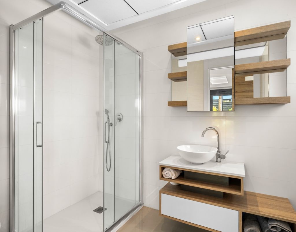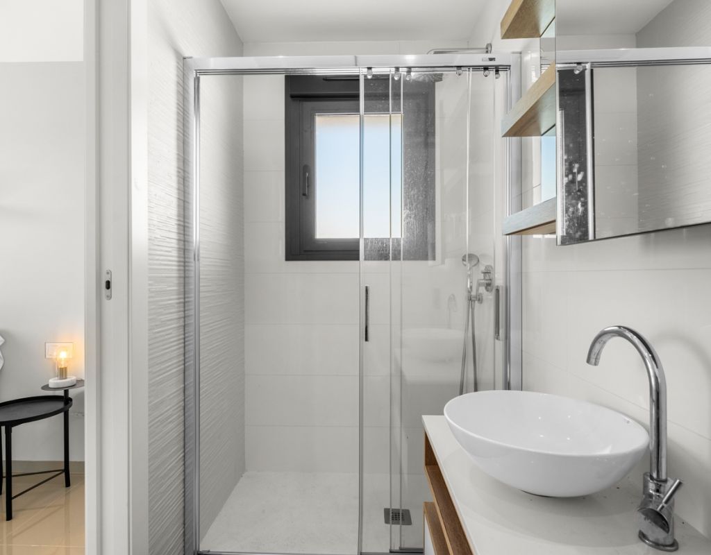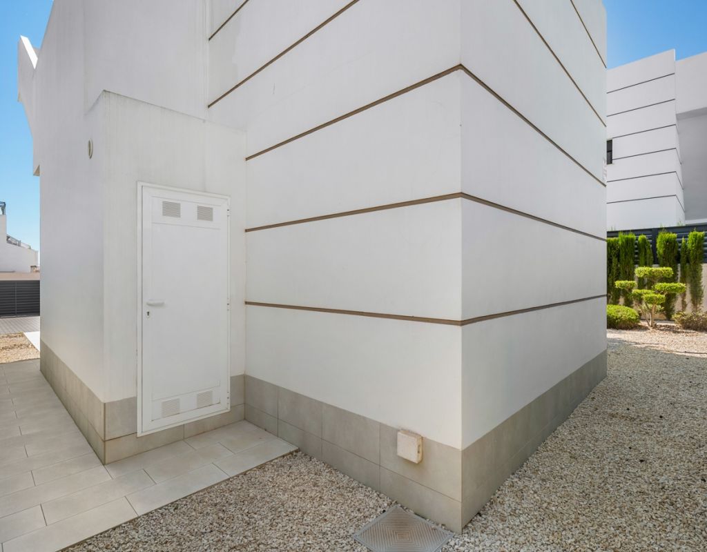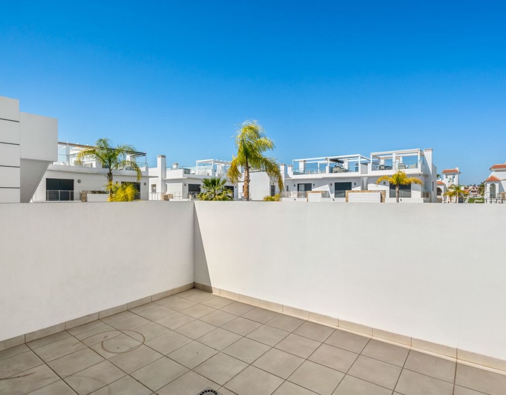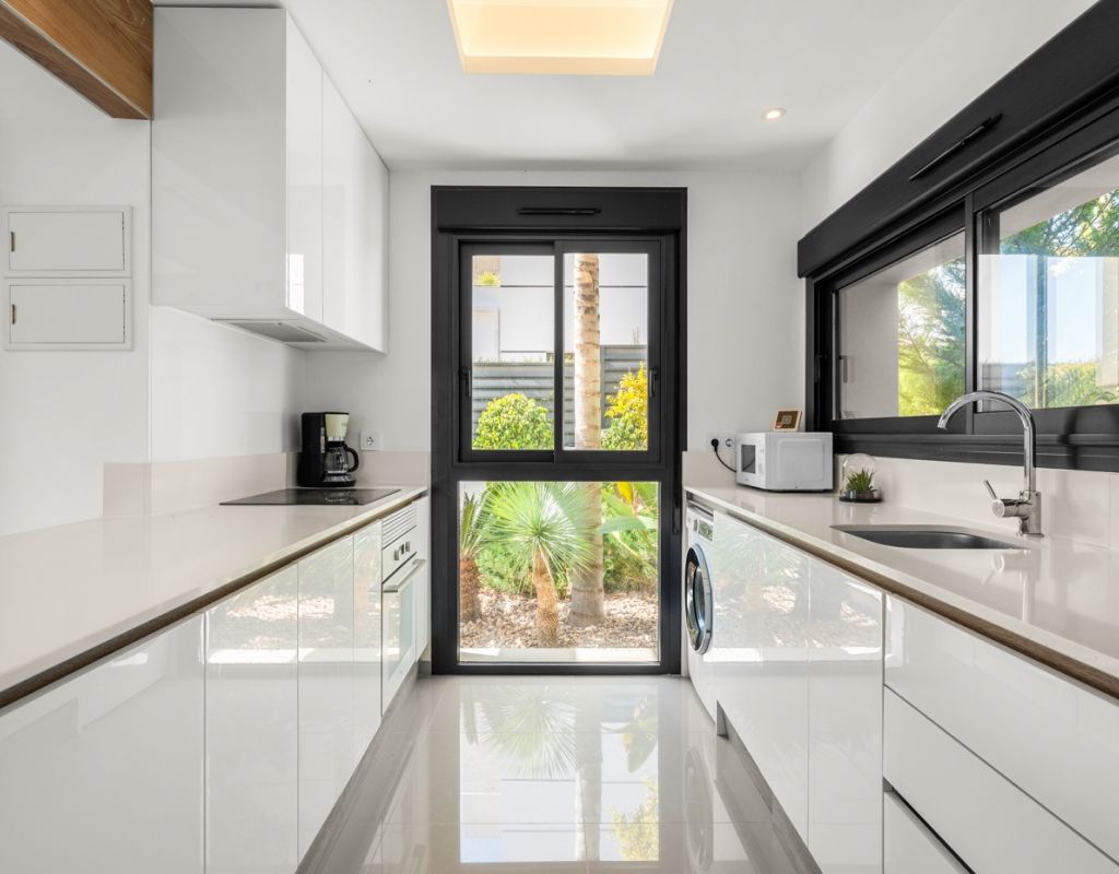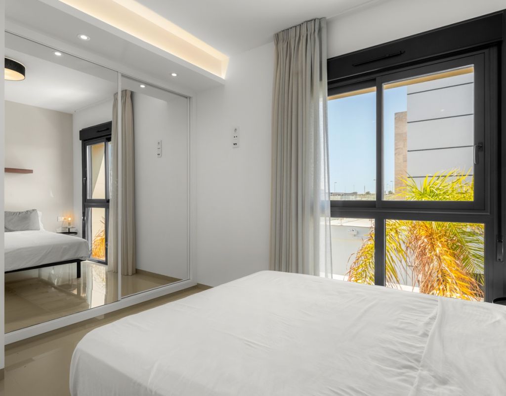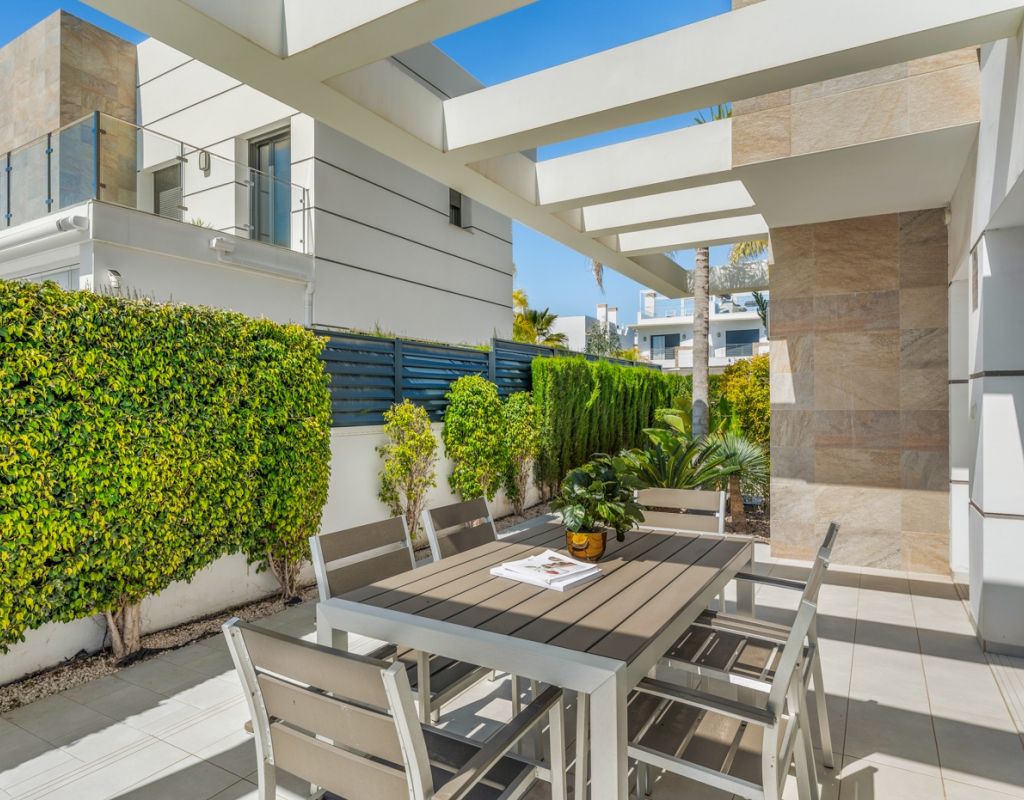Ontdek deze stijlvolle moderne villa verdeeld over twee verdiepingen, ontworpen voor comfort en functionaliteit. De woning beschikt over 3 ruime tweepersoonsslaapkamers en 3 badkamers. Op de begane grond vindt u een lichte woon- en eetkamer met directe toegang tot buiten, een gedeeltelijk open volledig uitgeruste keuken, één slaapkamer en een badkamer. Daarnaast is er een praktische bergruimte. Op de eerste verdieping bevinden zich twee slaapkamers, beide met en-suite badkamers. De hoofdslaapkamer beschikt over een inloopkast, terwijl de andere slaapkamers ingebouwde kasten hebben. Vanuit deze verdieping heeft u toegang tot een ruim terras dat leidt naar het grote dakterras. De villa is voorzien van centrale airconditioning (warm/koud), vloerverwarming in alle badkamers, dubbele beglazing en een beveiligde toegangsdeur. Daarnaast is er stijlvolle geïntegreerde LED-verlichting in de woonkamer en in twee slaapkamers. BuitenruimteDe woning ligt op een perceel op het zuiden, ideaal om de hele dag van de zon te genieten. Het beschikt over een privézwembad, parkeergelegenheid op het perceel en een gezellige eetruimte buiten bij de ingang. In de tuin bevindt zich ook een wasruimte/berging. Op de eerste verdieping is er een extra terras en de woning beschikt ook over een dakterras van circa 50 m² met mooi uitzicht over de omgeving. LiggingDe woning ligt op korte loopafstand van winkels, restaurants, cafés en alle voorzieningen, ideaal als permanente woning of investering.