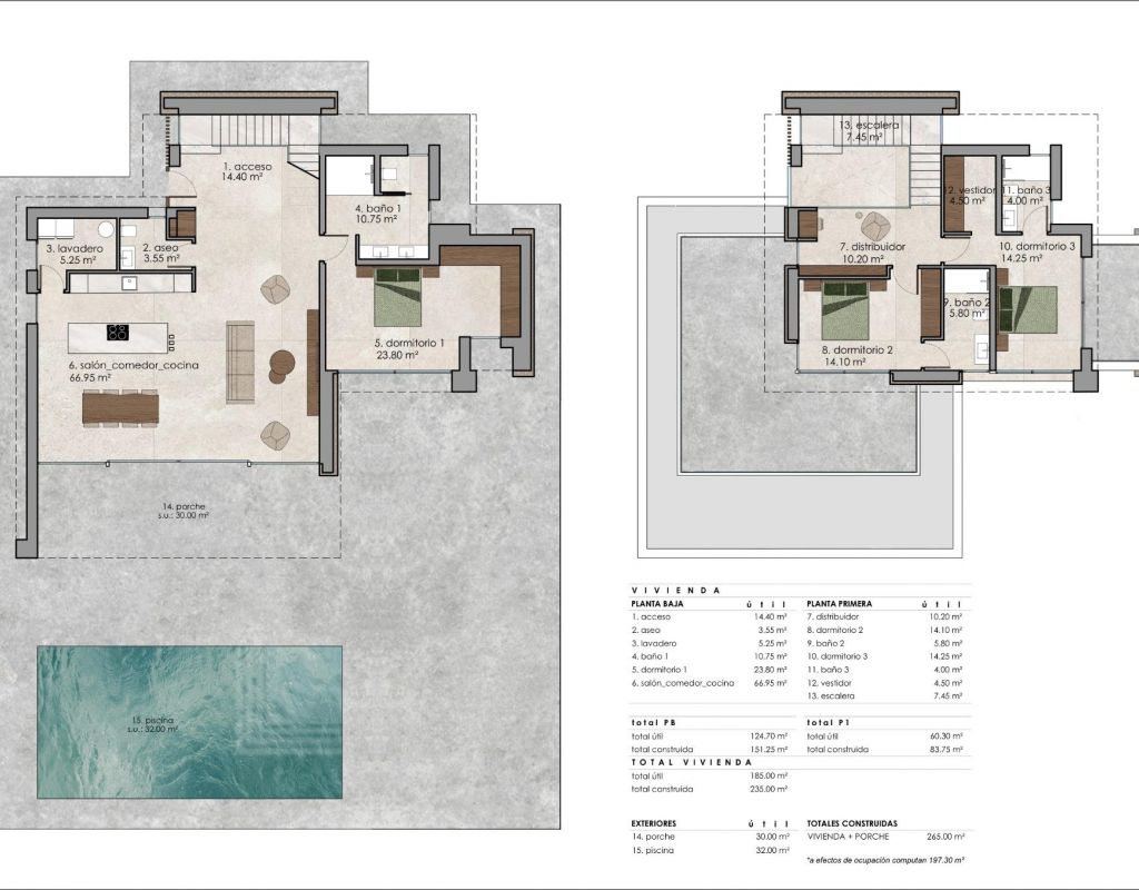 Op maat gebouwde nieuwe villa€s in Pinoso (Alicante): ruime woningen in een natuurlijke omgeving Nieuwbouwwilla's op maat van uw levensstijl in Pinoso Ontdek een unieke kans om uw droomhuis te bouwen in de rustige omgeving van Pinoso, gelegen in het binnenland van Alicante aan de Costa Blanca. Deze moderne vrijstaande villa's zijn ontworpen volgens een zelfbouwconcept, waardoor kopers kunnen kiezen uit verschillende modellen, indelingen en percelen om een volledig gepersonaliseerde woning te creëren. Pinoso is een charmant Spaans stadje dat bekend staat om zijn wijngaarden, traditionele cultuur en ontspannen levensstijl. De omgeving biedt een perfecte balans tussen natuur en dagelijks gemak, met lokale winkels, restaurants en voorzieningen in de buurt. Het is een ideale bestemming voor wie op zoek is naar rust, maar toch verbonden wil blijven met grotere steden en de kust. Flexibele villontwerpen met moderne architectuur Kopers kunnen kiezen uit verschillende villamodellen met 2 of 3 slaapkamers en 2 of 3 badkamers, met opties voor indelingen met één of twee verdiepingen. De bebouwde oppervlakte varieert van ongeveer 100 m² tot 260 m², afgestemd op verschillende levensstijlbehoeften. Elke villa staat op een ruim perceel, met name op landelijke locaties waar percelen beginnen vanaf 10.000 m², wat zorgt voor privacy en een weids uitzicht op het omliggende landschap. Hoogwaardige voorzieningen en energiezuinig wonen Alle villa's zijn gebouwd met hoogwaardige materialen en beschikken over een privézwembad van 8 bij 4 meter, een volledig uitgeruste keuken met apparatuur en een compleet airconditioningsysteem met Airzone-technologie. De woningen zijn tevens voorzien van aerothermische systemen voor warm water, volledig ingerichte badkamers met spiegels en doucheschermen, en een A-energielabel voor maximale efficiëntie. Voor rustieke percelen zijn de woningen voorzien van 24 fotovoltaïsche zonnepanelen, waterzuiveringssystemen waar nodig en duurzame afvalwateroplossingen. Stedelijke percelen profiteren van aansluiting op de waterleiding en riolering. De buitenruimtes zijn zorgvuldig afgewerkt met betegelde terrassen, zwembadzones en een wandelpad rondom, terwijl de percelen zijn voorzien van 3.000 m² omheining, toegang voor gemotoriseerde voertuigen en een aangelegde omgeving. Perceelskeuze op maat en zelfbouwproces Er zijn verschillende percelen beschikbaar op diverse locaties rond Pinoso, elk met een eigen prijs (voor deze advertentie is uitgegaan van een perceel met een prijs van 55.000 euro; indien een ander perceel wordt gekozen, wordt de uiteindelijke prijs dienovereenkomstig herberekend). De bouw vindt plaats volgens een zelfbouwsysteem, waarbij betalingen in fasen worden gedaan naarmate het project vordert. De geschatte opleveringstermijn is ongeveer 10 maanden vanaf de afgifte van de bouwvergunning. Uitstekende locatie met goede verbindingen Pinoso biedt een strategische locatie in het binnenland met gemakkelijke toegang tot belangrijke bestemmingen. De luchthaven van Alicante ligt op ongeveer 60 km afstand, terwijl de stranden van de Costa Blanca op ongeveer 65 km bereikbaar zijn. Golfbanen bevinden zich binnen een straal van 40 tot 50 km, en de steden Elche en Alicante liggen beide op comfortabele rijafstand. Ideale investering of permanente woning Deze op maat gebouwde villa's bieden een uitstekende kans om een huis op maat te creëren in een rustige en natuurlijke omgeving, met modern comfort en een sterk investeringspotentieel. Neem vandaag nog contact met ons op voor meer informatie en begin met het ontwerpen van uw nieuwe villa in Pinoso.