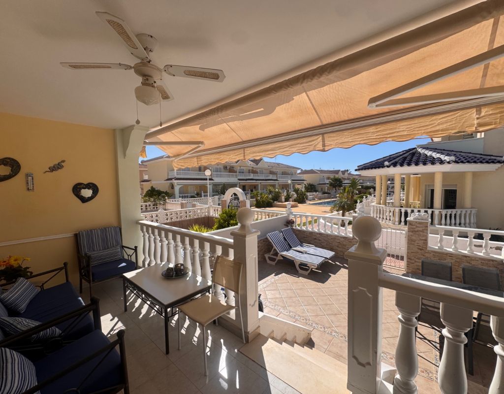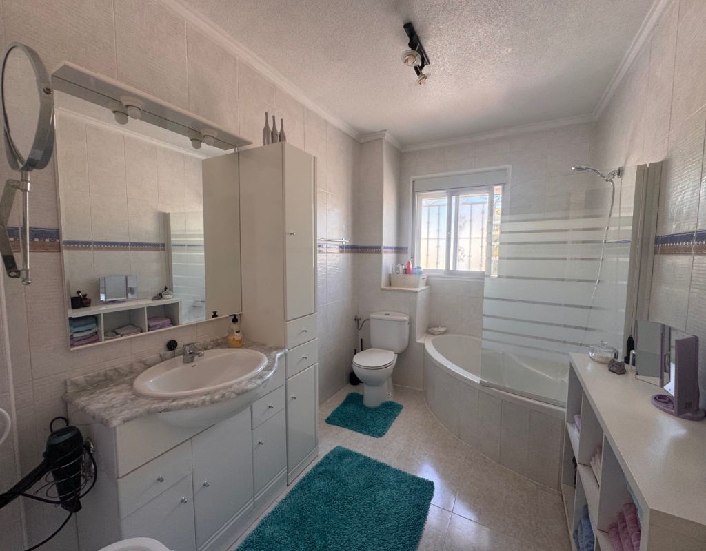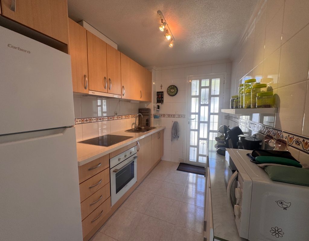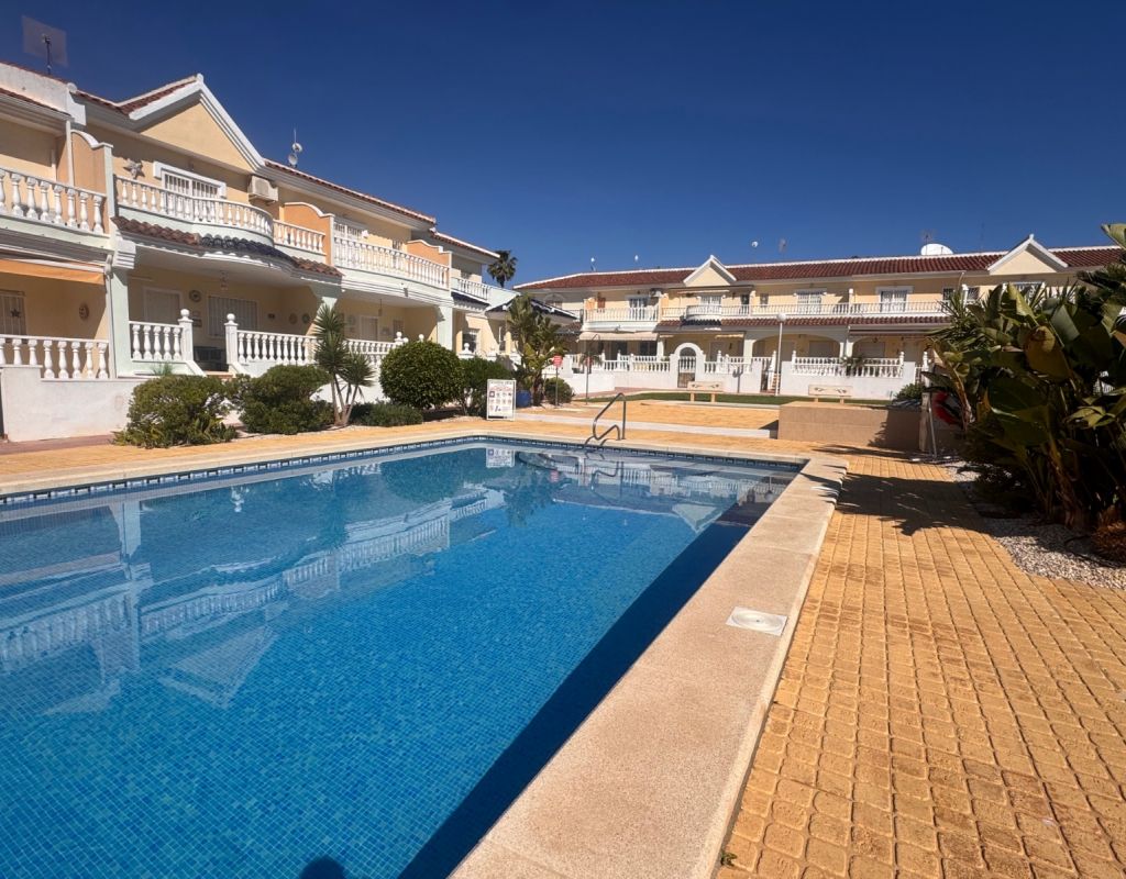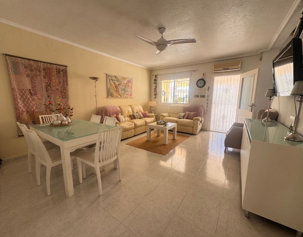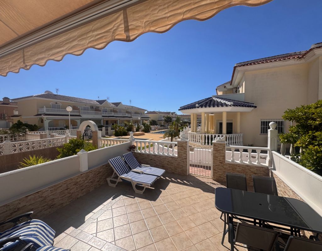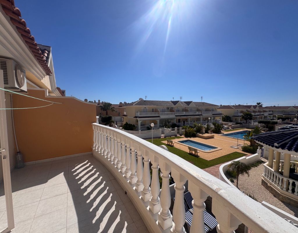Deze zuidelijk georiënteerde woning heeft het extra voordeel van directe toegang tot het gemeenschappelijke zwembad, waardoor het ideaal is voor zowel permanente bewoning als vakanties. Daarnaast beschikt het over een achtertuin aan de straatzijde, inclusief een bergruimte met de cv-ketel en wasmachine. De begane grond biedt een lichte en praktische indeling, met één slaapkamer, een volledig gerenoveerde keuken en een douche-/badkamer—perfect voor gasten of comfortabel wonen op één niveau. Op de eerste verdieping bevinden zich twee extra slaapkamers, waarbij alle slaapkamers voorzien zijn van stijlvolle accentmuren, evenals een tweede familiebadkamer, wat zorgt voor comfortabele accommodatie voor familie en bezoekers. Met de zonnige ligging, de positie aan het zwembad, goed ingedeelde leefruimtes en de extra tuin en bergruimte, is deze woning een uitstekende kans in de populaire woonwijk Ciudad Quesada.