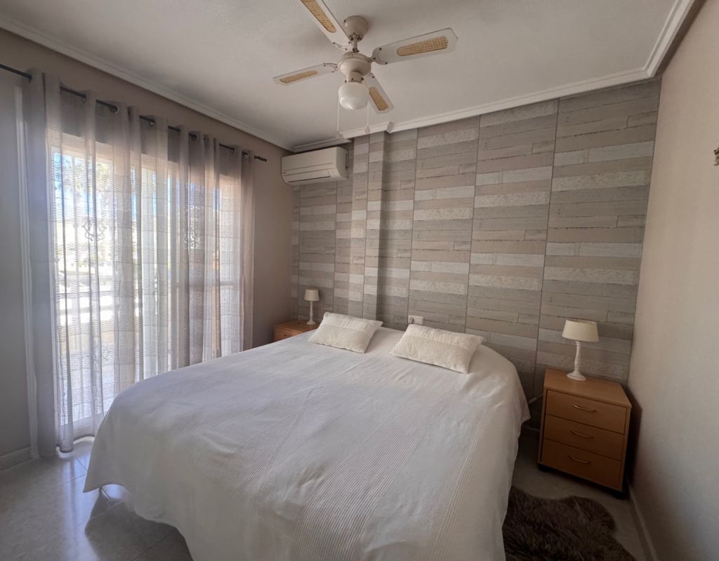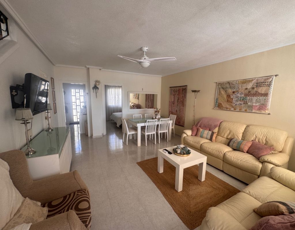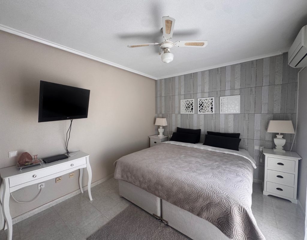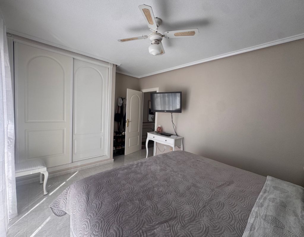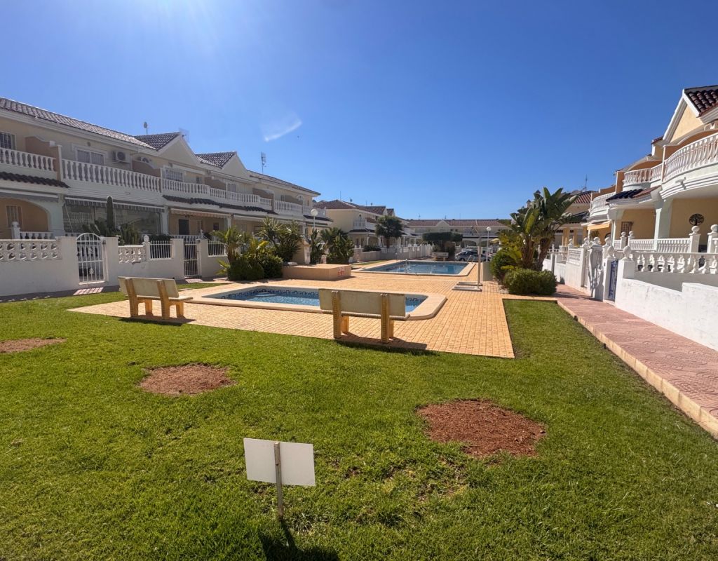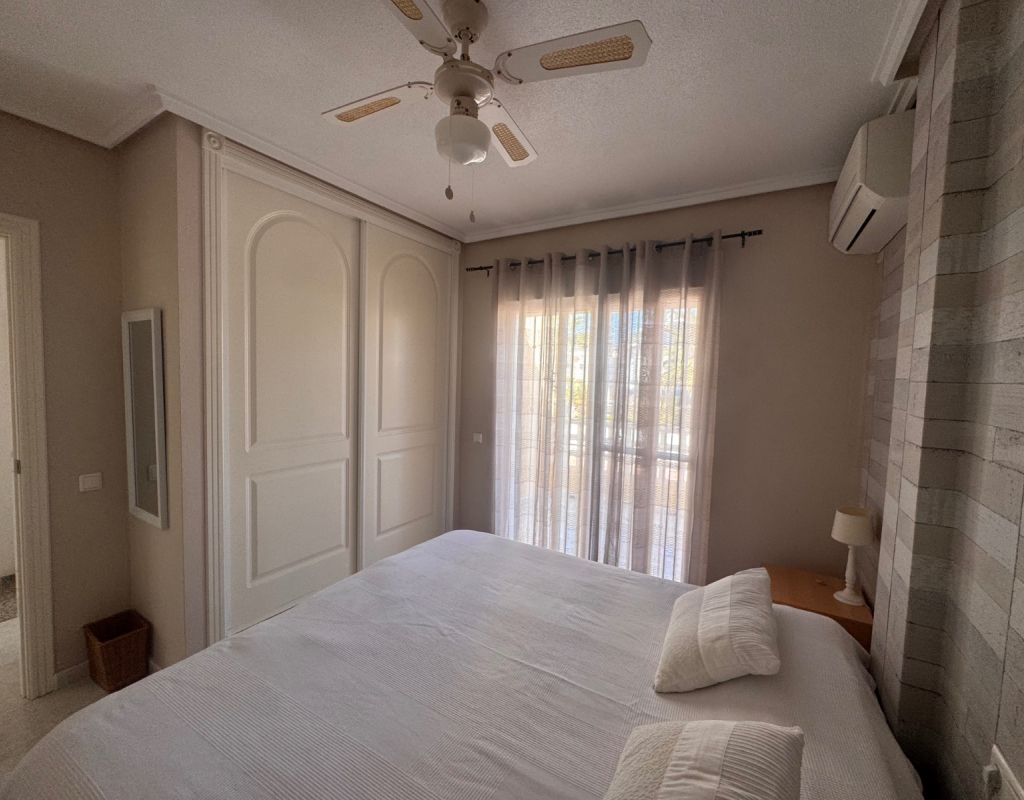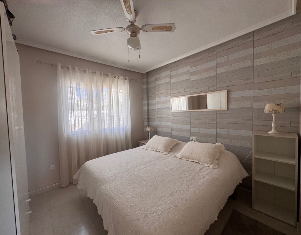 Deze zuidelijk georiënteerde woning heeft het extra voordeel van directe toegang tot het gemeenschappelijke zwembad, waardoor het ideaal is voor zowel permanente bewoning als vakanties. Daarnaast beschikt het over een achtertuin aan de straatzijde, inclusief een bergruimte met de cv-ketel en wasmachine. De begane grond biedt een lichte en praktische indeling, met één slaapkamer, een volledig gerenoveerde keuken en een douche-/badkamer—perfect voor gasten of comfortabel wonen op één niveau. Op de eerste verdieping bevinden zich twee extra slaapkamers, waarbij alle slaapkamers voorzien zijn van stijlvolle accentmuren, evenals een tweede familiebadkamer, wat zorgt voor comfortabele accommodatie voor familie en bezoekers. Met de zonnige ligging, de positie aan het zwembad, goed ingedeelde leefruimtes en de extra tuin en bergruimte, is deze woning een uitstekende kans in de populaire woonwijk Ciudad Quesada.