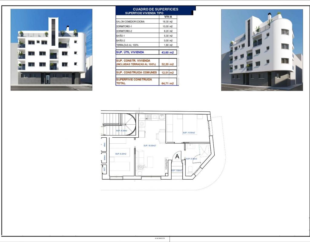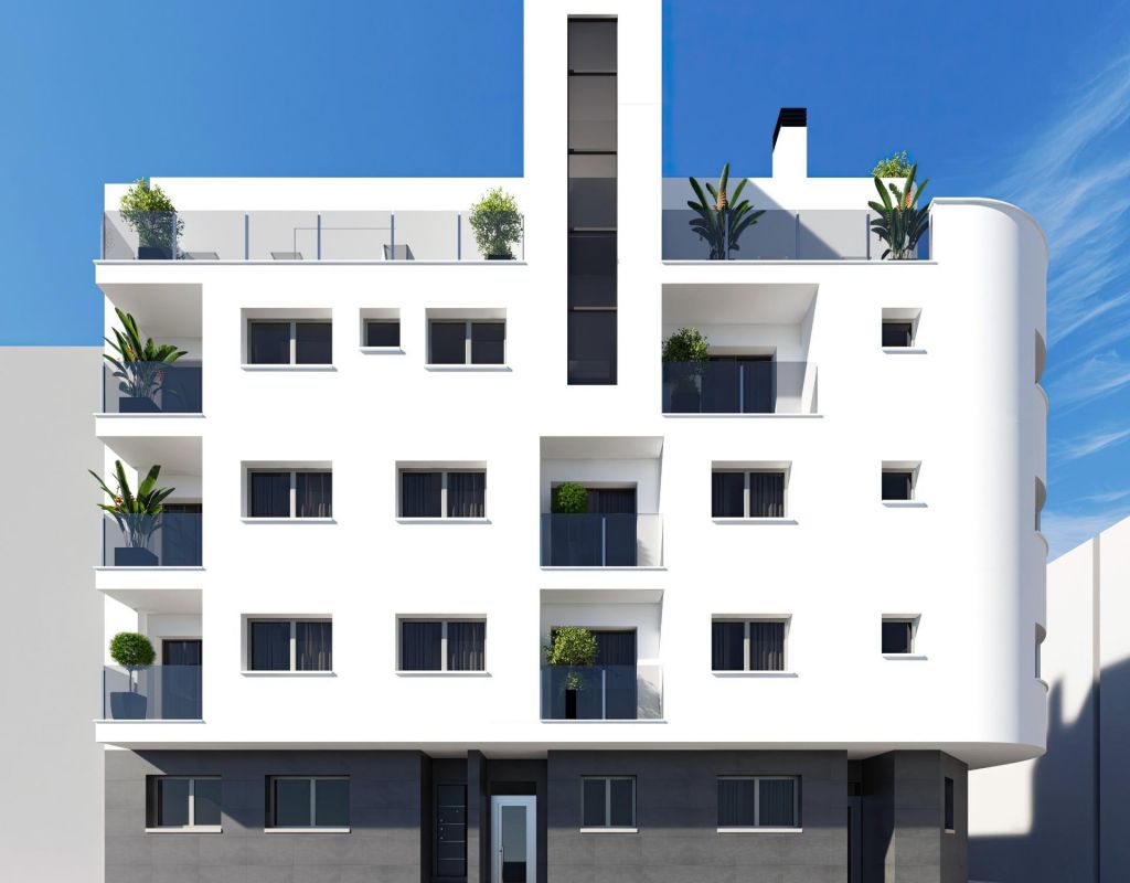 NEW BUILD APARTMENTS IN TORREVIEJA New Build apartments and penthouses in Torrevieja. New Build residential of 12 exclusive 1 and 2 bedrooms, 1 and 2 bathrooms apartments and penthouses, with open plan kitchen and living area, large, fitted wardrobes, fully equipped bathrooms with underfloor heating. All motorised aluminium blinds. Armoured entrance door with security lock. Pre-installation of air conditioning and heating. New Build residential complex with modern design and high quality finishes has a beautiful communal solarium. Torrevieja is a Spanish town in the province of Alicante, on the Costa Blanca. It is known for its typically Mediterranean climate and coastline. It has boardwalks with resorts along its sandy beaches. The small Museum of the Sea and Salt houses exhibitions on the fishing and salt history of the city. In the interior, the Lagunas de La Mata-Torrevieja Natural Park has trails and two salty lagoons, one pink and the other green. Alicante airport located 40 minutes away and Murcia airport about 1 hour away