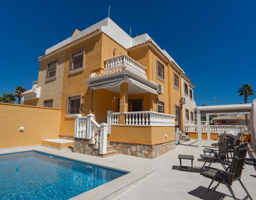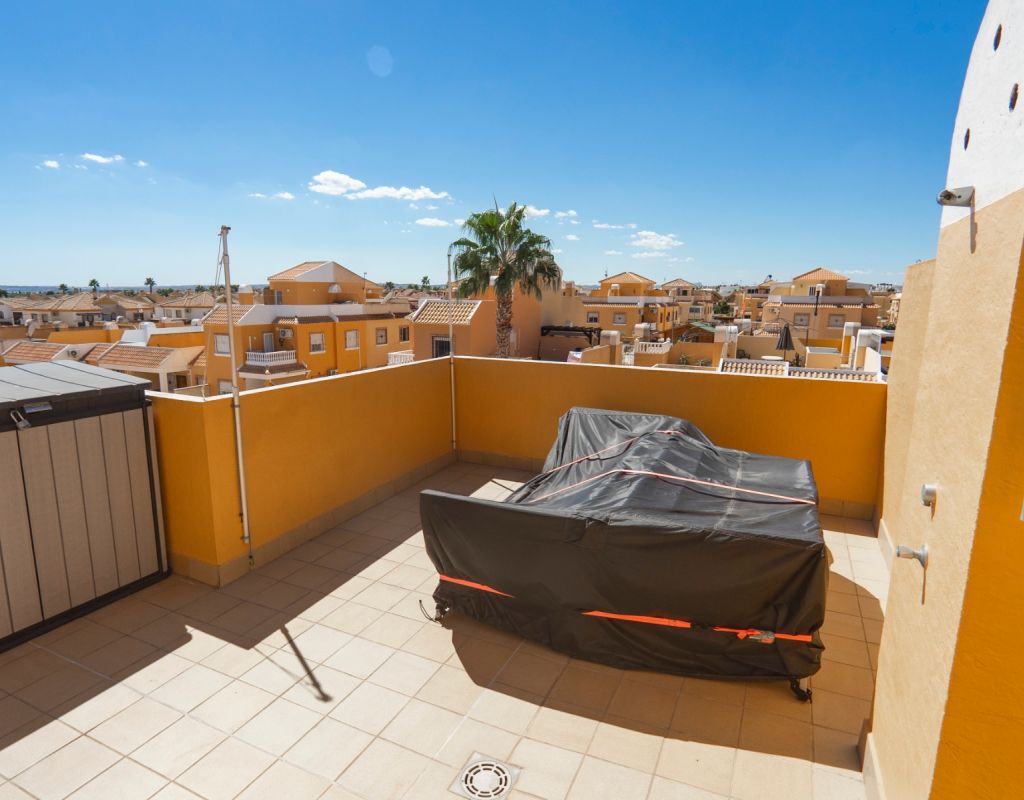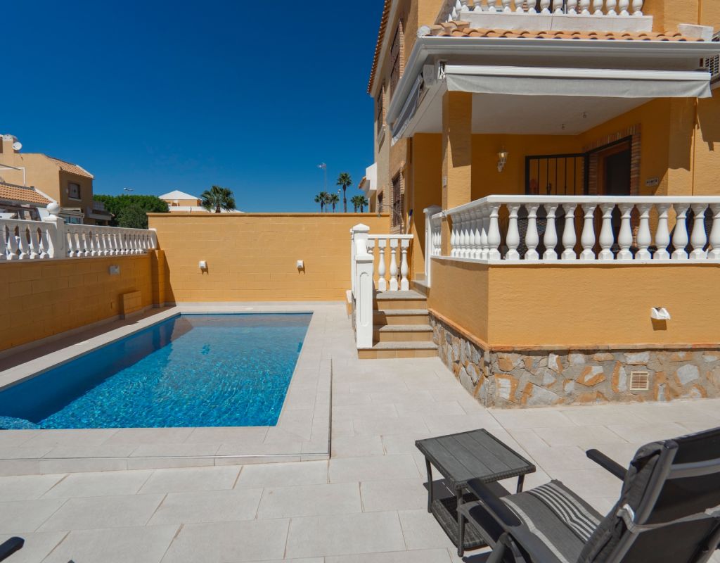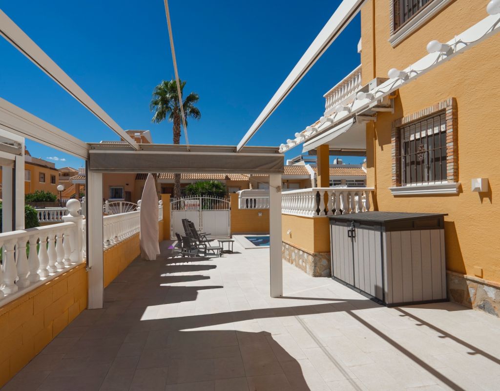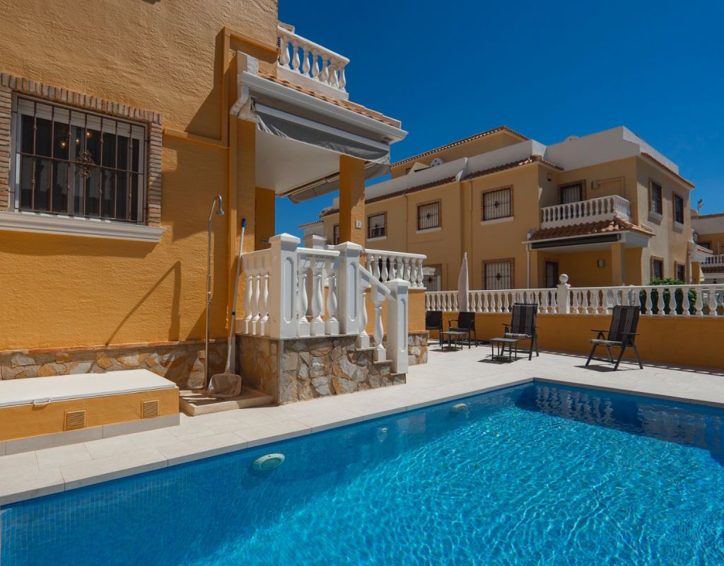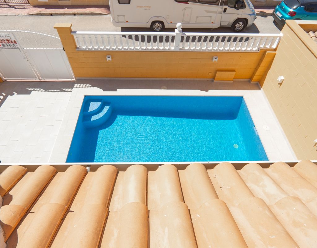 3 bedroom 2 bathroom quad style property with private pool, off road parking and solarium, located close to amenities in Lo Marabu, Ciudad Quesada