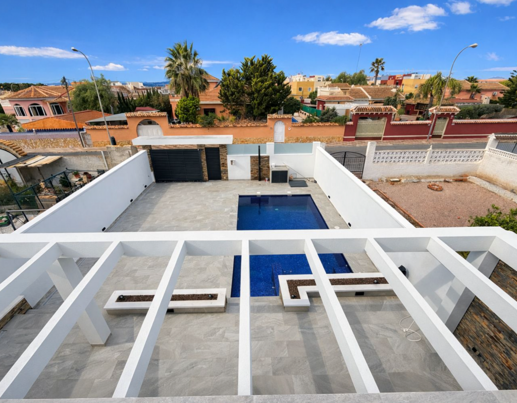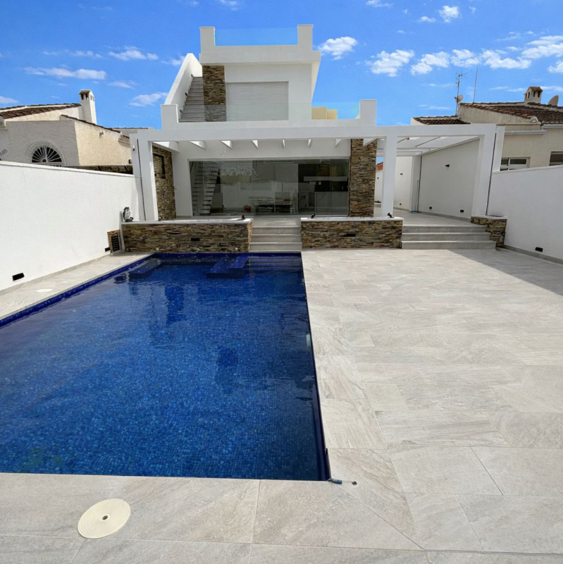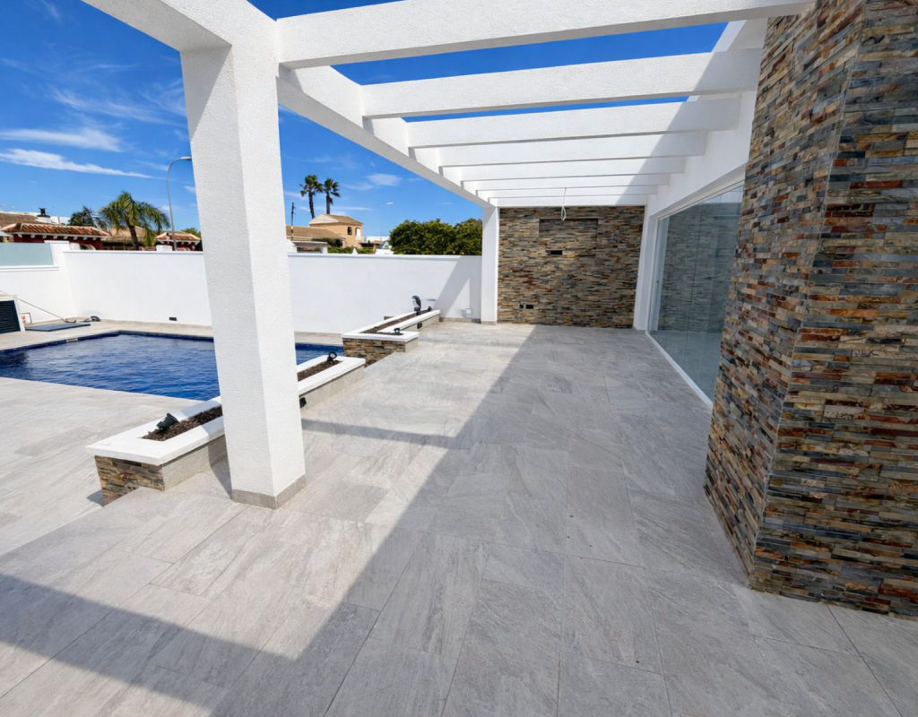 A rare opportunity to secure a brand new, key ready modern villa in the sought after area of La Siesta. Set on a generous 320m² private plot, this beautifully designed home offers 132m² of contemporary living space, finished to a high standard and ready to move straight into. No waiting, no building delays. Just turn the key and start enjoying life in the sun. The property features three spacious bedrooms, each designed with comfort and natural light in mind, plus four stylish bathrooms with sleek, modern finishes. The open plan living and dining area flows seamlessly to the outdoor terrace, creating the perfect indoor outdoor lifestyle. Outside, the private swimming pool becomes the centrepiece of the home, surrounded by space for sun loungers, outdoor dining and relaxing evenings with family and friends. ✨ Highlights: • Brand new and key ready • 3 generous bedrooms • 4 modern bathrooms • 132m² built area • 320m² private plot • Beautiful private pool • Contemporary design throughout Located in La Siesta, close to amenities, shops, restaurants and just a short drive to the beaches of the Costa Blanca, this villa is ideal as a permanent residence, holiday home or investment.
