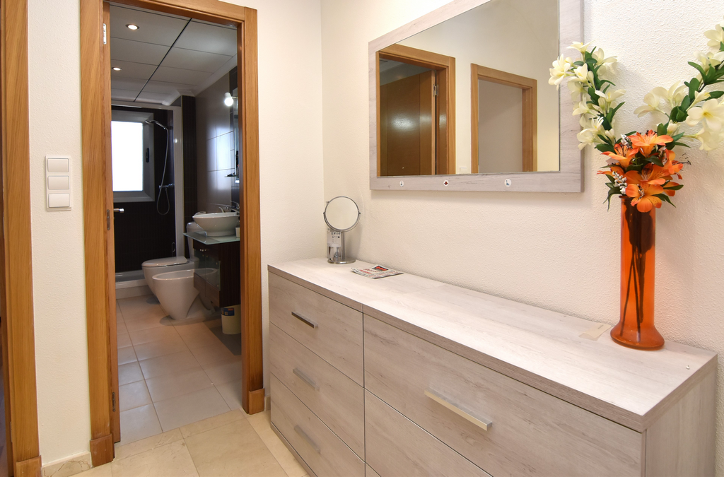 We are delighted to present this exceptional townhouse, ideally located at the very front of the prestigious Guardamar Hills development, just a short stroll from the heart of Guardamar del Segura. The golden sandy beaches are only one kilometre from the front door, offering the perfect balance between coastal living and town convenience. Maintained in excellent condition and used only one to two weeks per year as a holiday retreat, the property feels virtually untouched and impeccably cared for. Upon arrival, a generous sun-drenched front terrace welcomes you—an ideal space for relaxed breakfasts and peaceful mornings enjoying the rising sun. The ground floor offers a bright, open-plan living and dining area, complemented by a spacious, fully fitted independent kitchen to the rear. A guest toilet and washroom add further practicality to this level. From the dining area, a staircase leads down to an extraordinary private garage and basement—a truly rare feature. This vast space provides parking for multiple vehicles and ample room for watercraft, motorcycles, storage, or even a workshop or leisure area. Vehicular access is via a secure shared entrance, with private pedestrian access directly to the property. The first floor hosts two generous double bedrooms and a well-appointed family bathroom. The front bedroom enjoys beautiful open views of the Mediterranean Seaand overlooks nearby parkland, creating a sense of space and tranquillity. The top floor is dedicated to the third bedroom, which benefits from both a private rear roof terrace and a large front terrace boasting uninterrupted sea views—a perfect setting for sunset evenings and al fresco relaxation. The property is offered fully furnished and completely turn-key, including a pre-installed alarm system, ready to be activated by the new owner. Residents of this exclusive, well-kept development also enjoy access to a communal swimming pool, despite the close proximity to the sea. In summary, this is a rare opportunity to acquire a premium townhouse with open sea views, exceptional private parking and storage, excellent outdoor space, and immediate readiness for enjoyment—all within walking distance of Guardamar and its beaches.