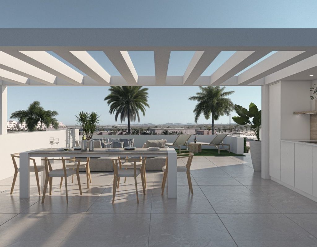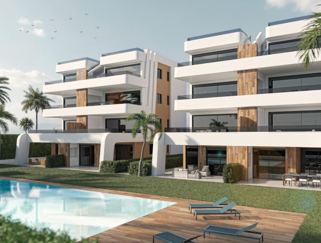 NEW BUILD APARTMENTS IN CONDADO DE ALHAMA GOLF COURSE New Build residential complex of villas and apartments in Condado de Alhama. Beautiful 8 apartments are distributed between ground, first, second and third floor, with two properties on each floor and a lift to move from one to other level. There are a several community swimming pools, outdoor parking space for each apartment, storage area and terrace with Summer kitchen. The top floor properties have a solarium. The two ground floor apartments have 3 bedrooms and 2 fully-fitted bathrooms and the rest of the properties have 2 bedrooms and 2 fitted bathrooms as well. The properties have been designed with a contemporary style and an open planned concept, consisting of a fitted kitchen and a living-dining room. The development is located in Condado de Alhama, Murcia, within a luxury resort, with sports areas and surrounded by nature, all services, and several Golf Courses. The property will meet the highest standards and will be equipped with: Community swimming pools with ample green areas. Kitchen completely furnished and equipped with oven and microwave elevated and in column, integrated fridge and dishwasher, induction hob and extractor fan. Lighting: inside the property (dining room, kitchen, corridors and bathrooms), as well as in outdoor areas. Lined wardrobes with drawers and shelves. Fully fitted bathrooms with vanity unit, suspended toilet, mirror, wall-mounted shower and shower screens. Pre-installation for ducted air conditioning. Summer kitchen on the terraces. Solarium on the top floors. Outdoor parking space with storage area. Lift (from ground floor to 3rd floor). Condado de Alhama Golf Resort is a fantastic Golf Resort with many facilities and services . A shopping centre, a sports centre, a variety of bars and restaurants, supermarkets and over 25 communal swimming pools and gardens. Condado de Alhama Golf Resort has its own Jack Nicklaus designed golf course and is only 15 minutes from the beautiful beaches of Bolnuevo and Mazarron. Mazarron has over 35 km of coastline, much of which is unspoilt coastline. Numerous beaches in the Bay of Mazarron have been awarded the Blue Flag for their quality. Condado de Alhama Golf Resort is only 20 minutes from the new Corvera International Airport.