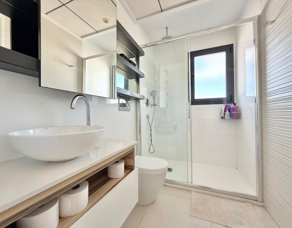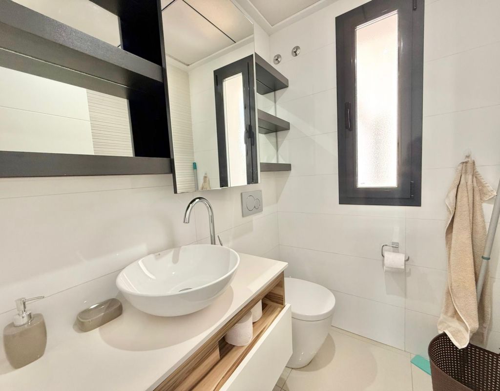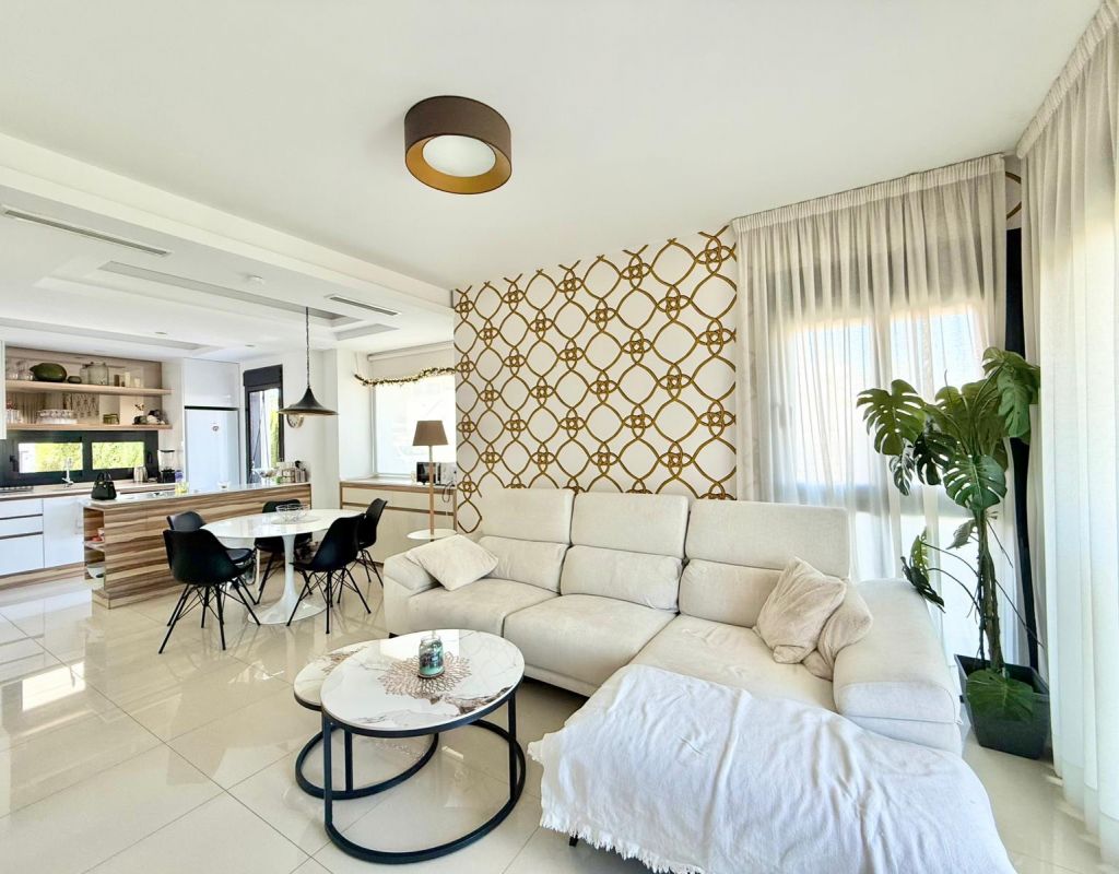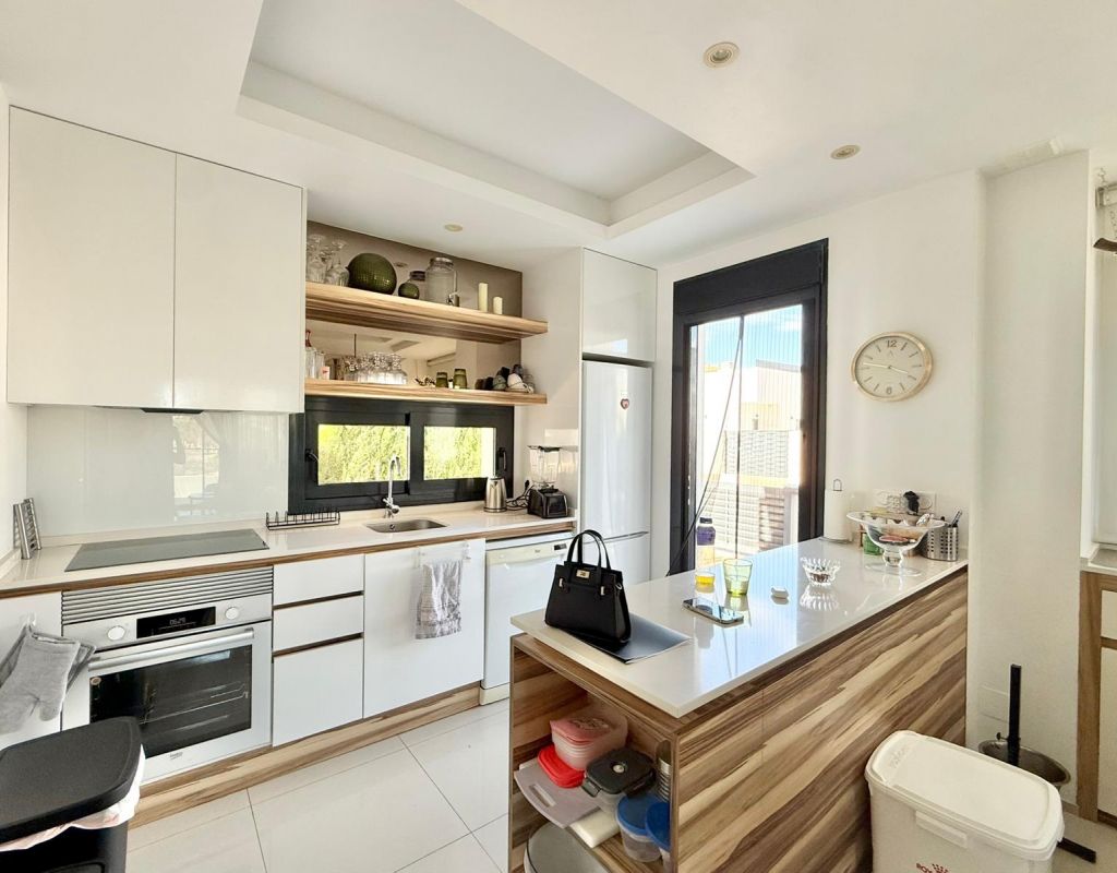 Built in 2016, this beautiful 3-bedroom, 2-bathroom villa offers 137 m² of constructed area on a 192 m² plot. The home is in good condition and features a modern American-style kitchen, central heating, and central air conditioning for year-round comfort. The property includes fitted wardrobes in all three bedrooms, a bright living area, and multiple outdoor spaces to enjoy the Mediterranean climate — including a porch, terrace, solarium, private garden, and pergola. Additional features include a laundry room, storage room, basement, and private parking with one garage space. Located just 8 km from the beach, 35 minutes from the airport, 5 minutes from a golf course, and 500 meters from leisure areas, this home offers the perfect combination of convenience and tranquility. Partially furnished and equipped with modern appliances, outdoor lighting, and window shutters, this villa is ready to move in and enjoy. With lovely open views and proximity to all services, it’s an ideal choice for both permanent living and holiday escapes.