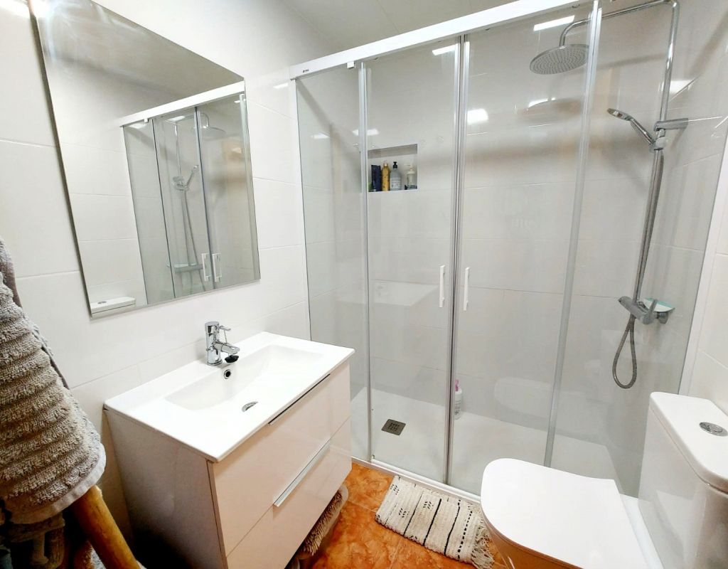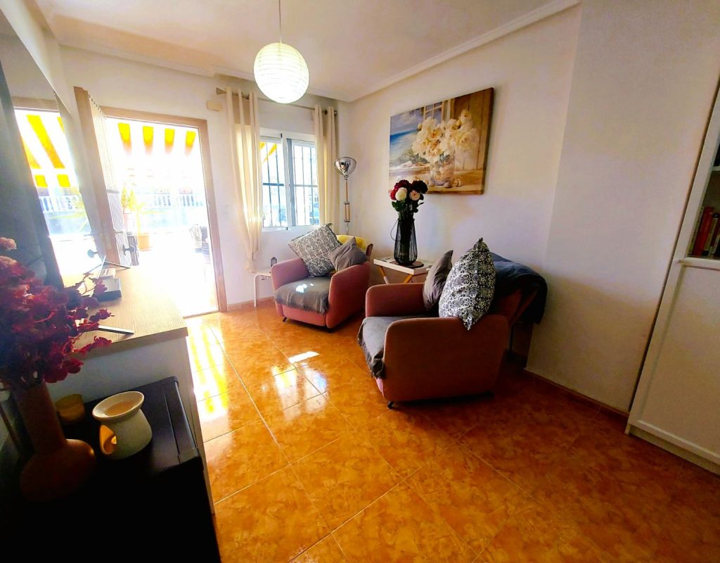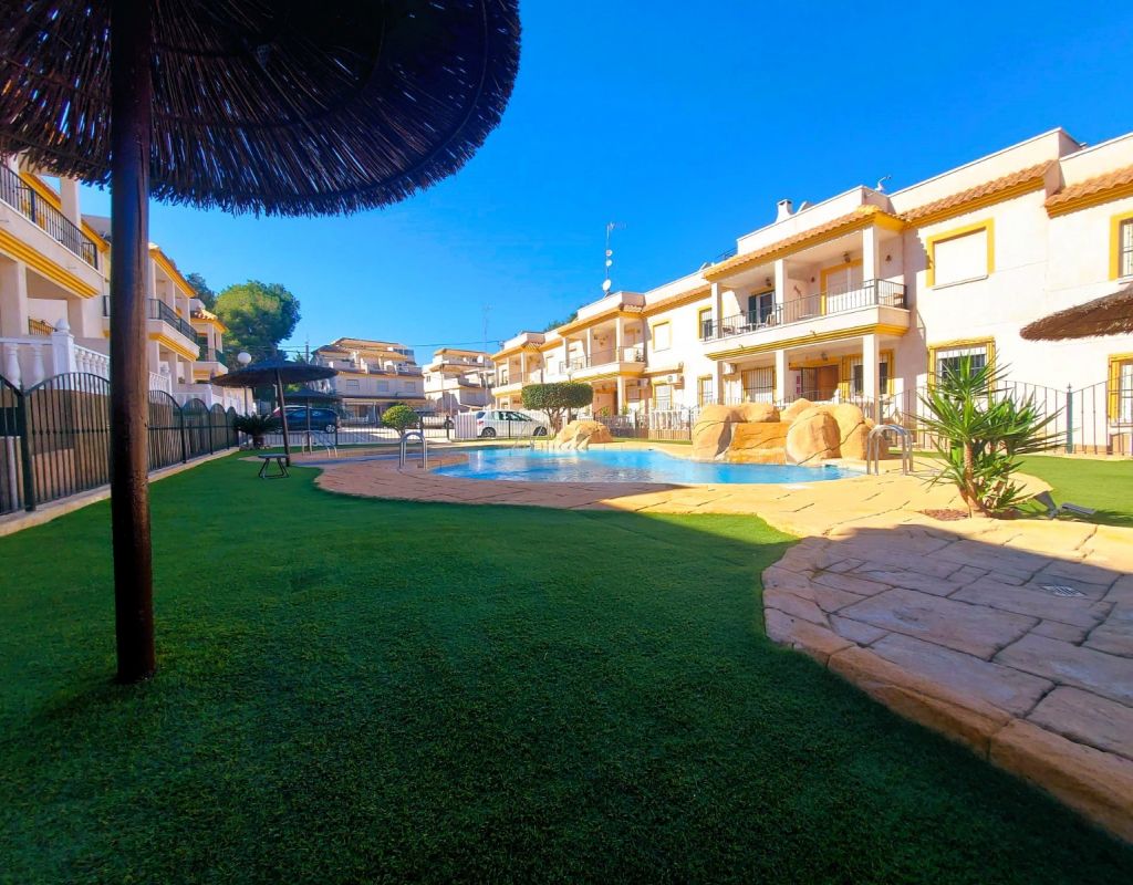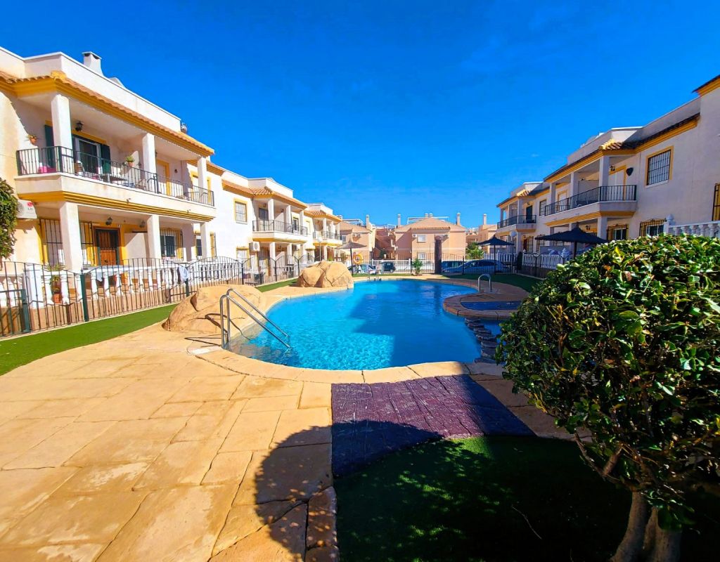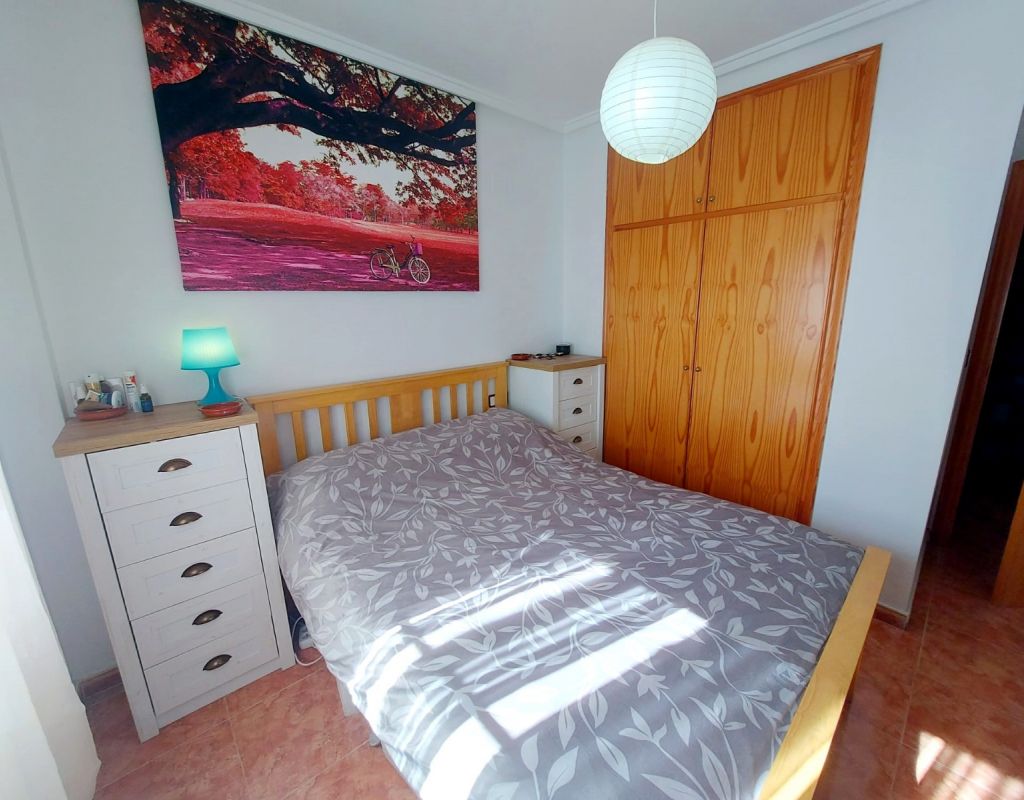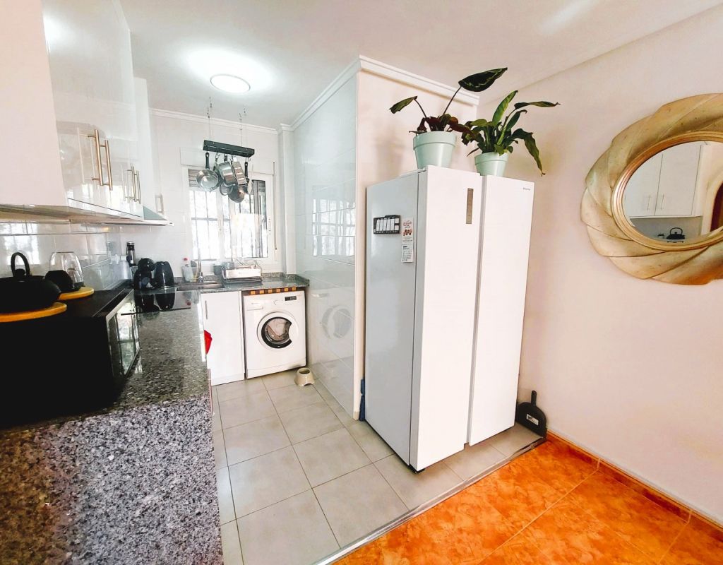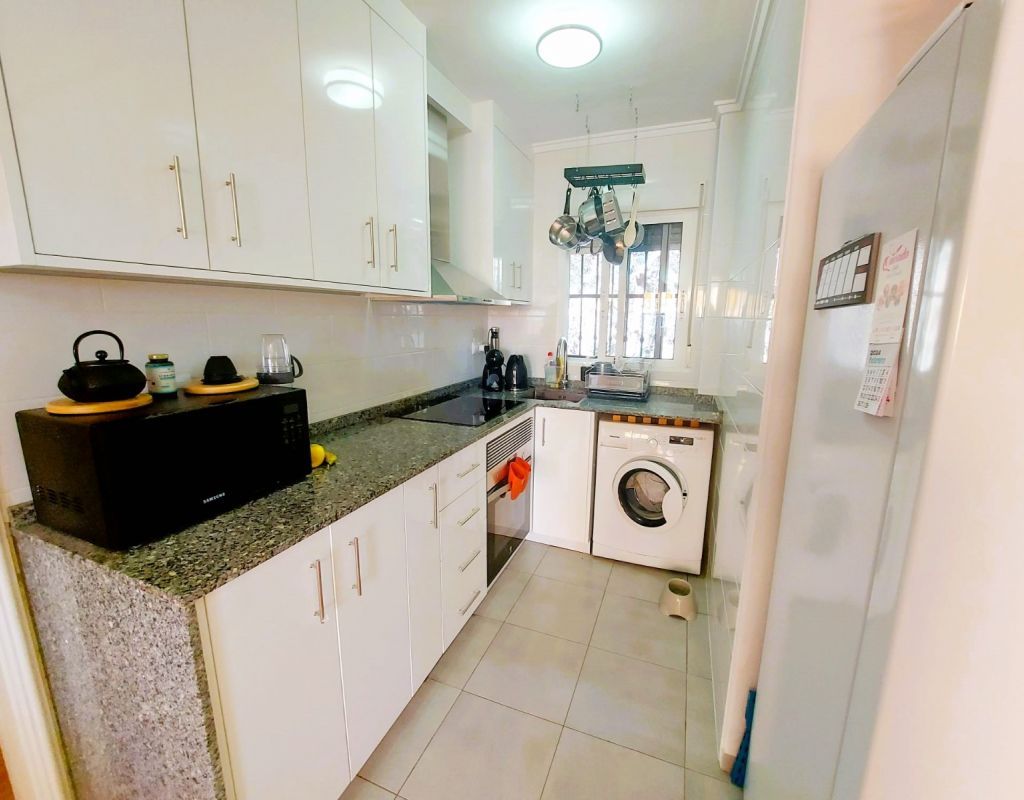 This modernised ground floor apartment would be ideal for permanent living or make a perfect holiday home. Located on the popular urbanisation of San Andres on Montemar, Algorfa. The apartment is south facing and enjoys day long sunshine, with the fabulous communal pool a few steps away. Upon viewing the property, you will be greeted into the lounge area. This in turn is open plan to the well equipped kitchen, which offers modern, high gloss, white fronted base and wall units. A small inner hall provides access to the bedrooms and bathroom. Both bedrooms are well proportioned, the master offering built in wardrobes, and the second is installed with Air-conditioning. The impressive shower room has be reformed and now has a modern finish with tiled walls and a walk in shower. Stepping out onto the sundrenched terrace is where you can enjoy alfresco dining throughout the year. This lovely area has an open view of the community and across to the communal pool. This compact community is home to just 36 properties, with gated parking for residents. Internal viewing is most highly recommended. This property will not disappoint.