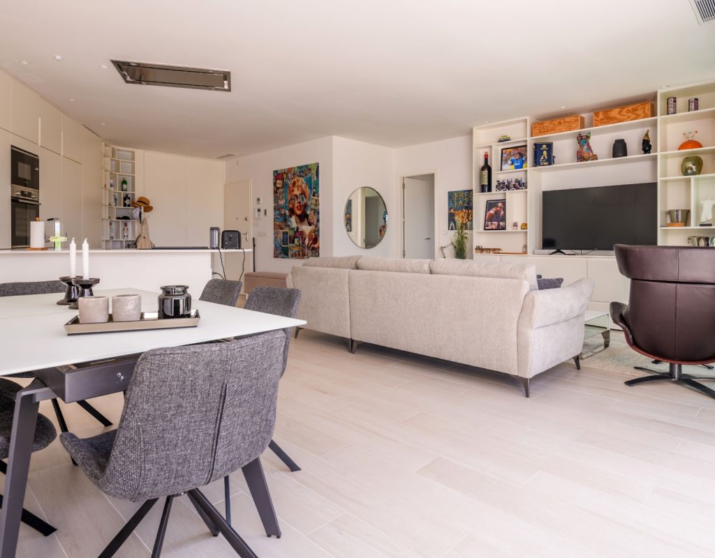 The property features a living room-kitchen area with access to a spacious terrace offering wonderful outdoor views. This apartment has 3 bedrooms and two bathrooms, one of which is en-suite. The common areas of the Hinojo Community include a swimming pool and landscaped gardens. Finally, a parking space and a storage room in the communal garage are included.