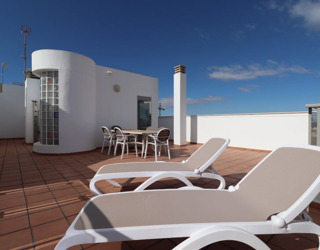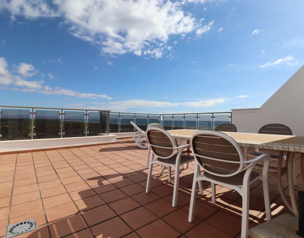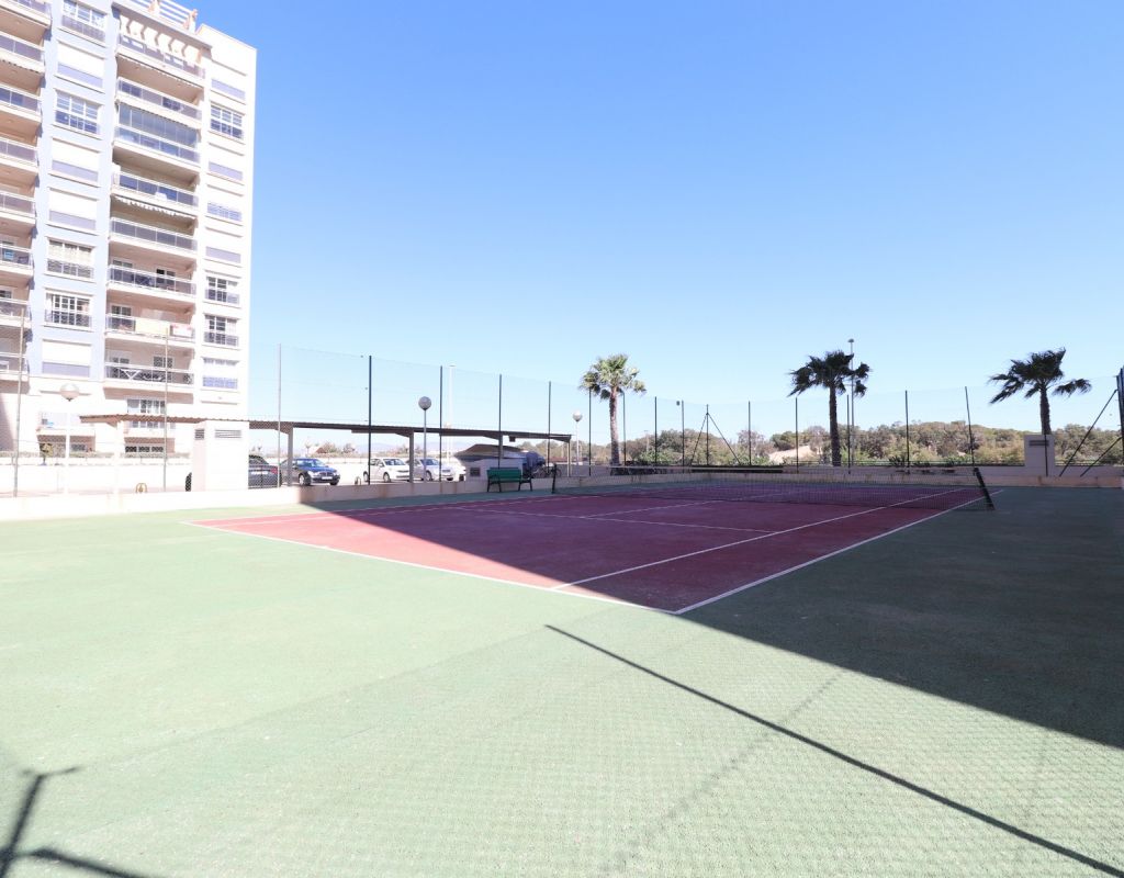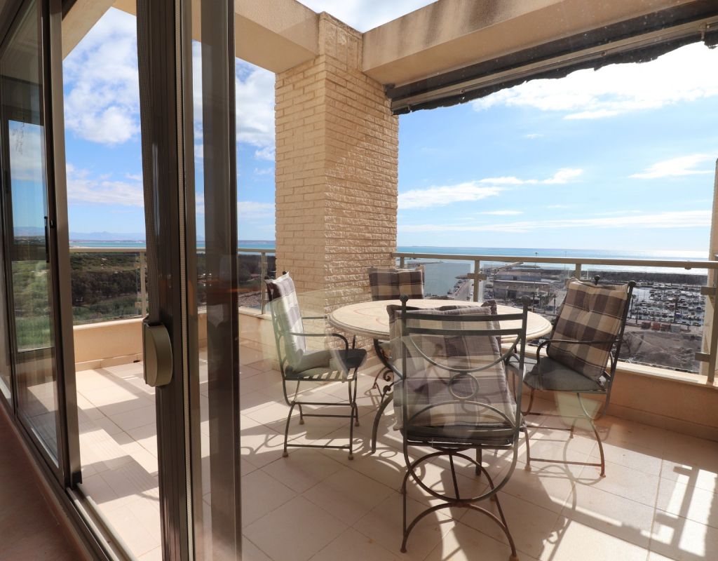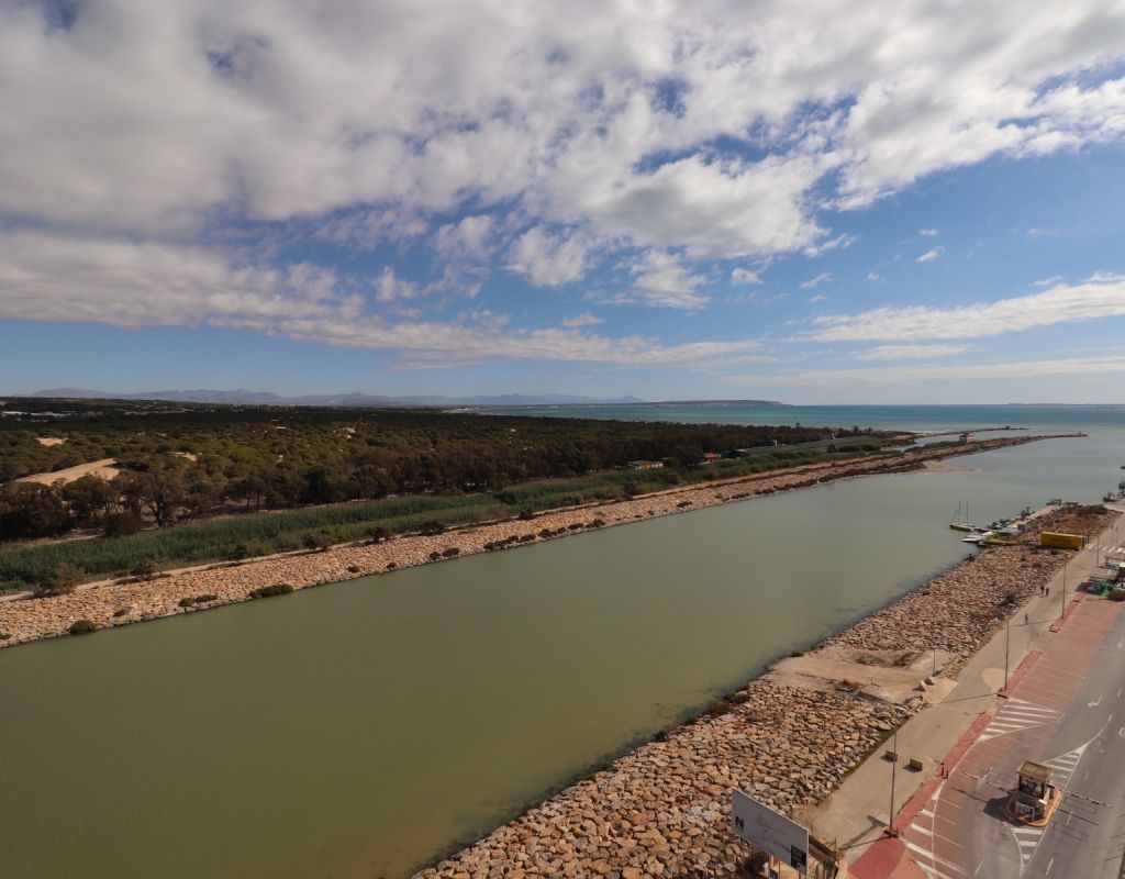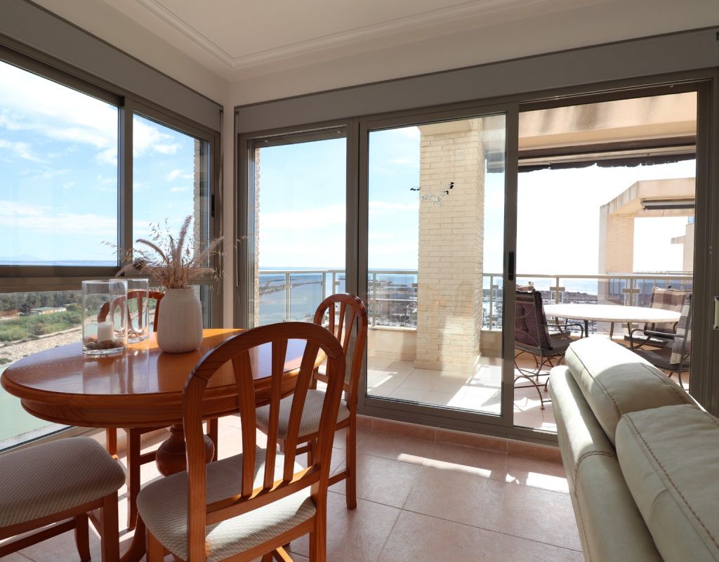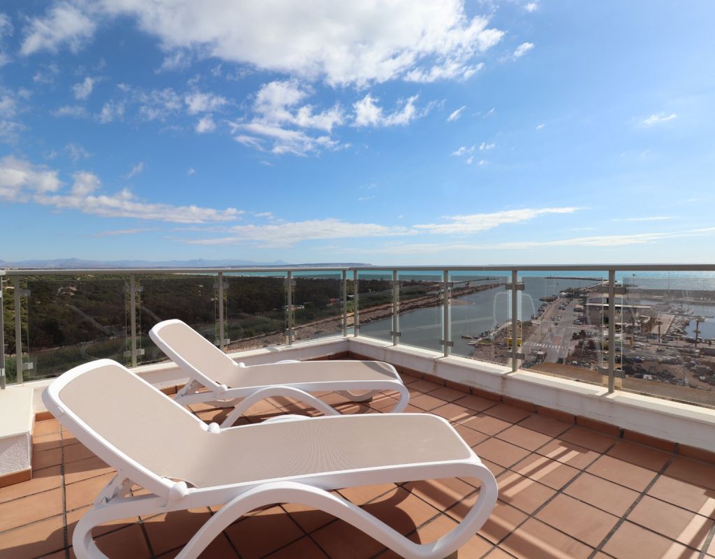 This Stunning, Corner, East Facing, Three Bedroom Penthouse, Duplex Apartment in Guardamar del Segura is located at the port, on the 10th Floor, within a Secure Gated Community boasting luxury amenities. With a spacious 10m2 uncovered terrace and an expansive 74m2 private rooftop solarium, this residence offers unparalleled panoramic views across the river, the sea, pine forest, and mountains beyond. Inside, the property features fitted wardrobes in each of the three bedrooms, ensuring ample storage space, while air conditioning throughout ensures year-round comfort. Residents can enjoy leisure time in the communal swimming pool, tennis court, playground, and mini-golf area, all within the gated community. Parking is convenient with two private underground enclosed garages measuring 42m2 and 37m2 respectively, along with a private underground car parking space. The separate kitchen with an adjoining utility room adds practicality to the living space, while security is enhanced with a sturdy security door. Outdoor living is enhanced with a sun awning on the terrace, providing shade on sunny days. The property's prime location places it less than 500 meters from the beach and seafront, offering easy access to the coast's stunning amenities. Situated in Costa Blanca South, this residence is within easy reach of local amenities and facilities, making it an ideal choice for those seeking luxury living in a vibrant coastal community. Absolutely Remarkable Views! One not to be missed!!!