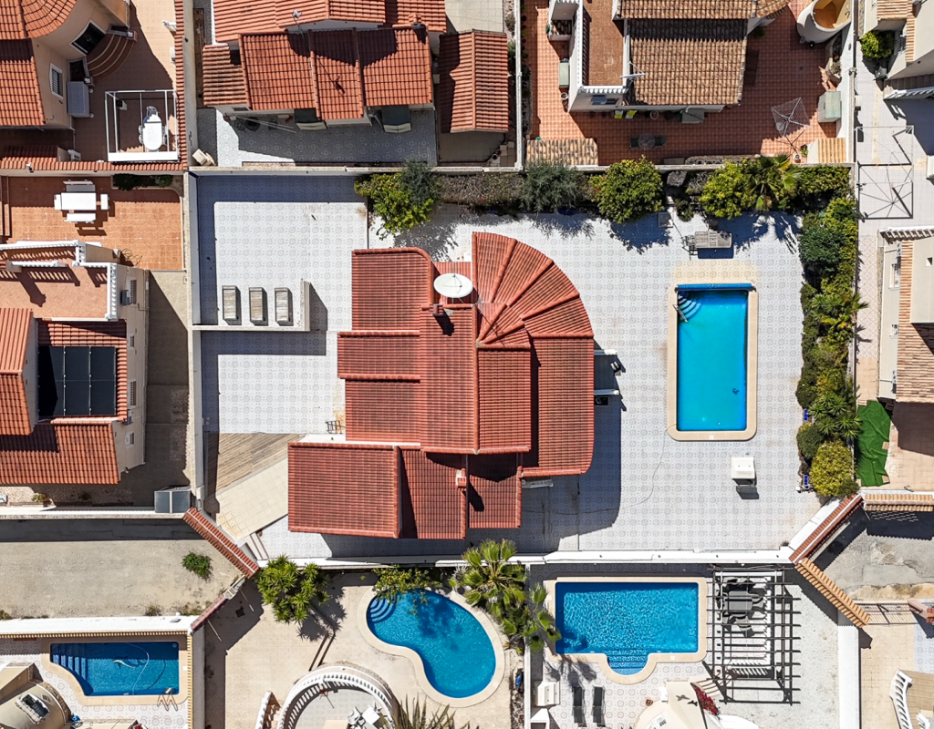 Superb 3-bedroom, 2-bathroom villa with garage, situated on an ample and private 700 m2 plot. Located at the end of a quiet cul-de-sac, this villa features a stunning garden and an 8x4m heated swimming pool. Ciudad Quesada is a picturesque urbanization located in the province of Alicante, Spain. Situated on the beautiful Costa Blanca, it offers a perfect blend of modern amenities and natural beauty. Characterized by its well-planned layout and lush greenery, Ciudad Quesada boasts a range of facilities including supermarkets, shops, restaurants, and bars, catering to residents and visitors alike. The area is renowned for its stunning golf courses, with several championship-standard courses nearby, making it a haven for golf enthusiasts. Additionally, Ciudad Quesada is just a short drive away from the sandy beaches of the Mediterranean coast, where residents can enjoy sun-soaked days and refreshing swims in the crystal-clear waters. With its pleasant climate, excellent amenities, and idyllic surroundings, Ciudad Quesada is a highly sought-after destination for both holidaymakers and those seeking a permanent residence in Spain.