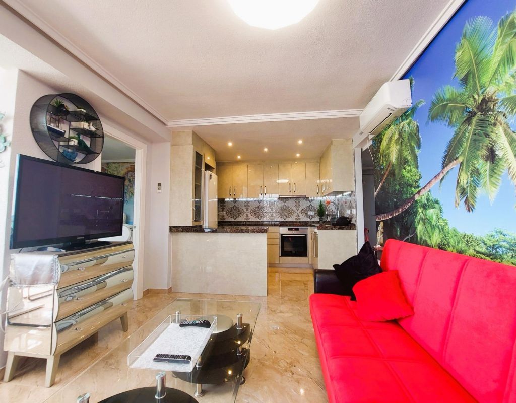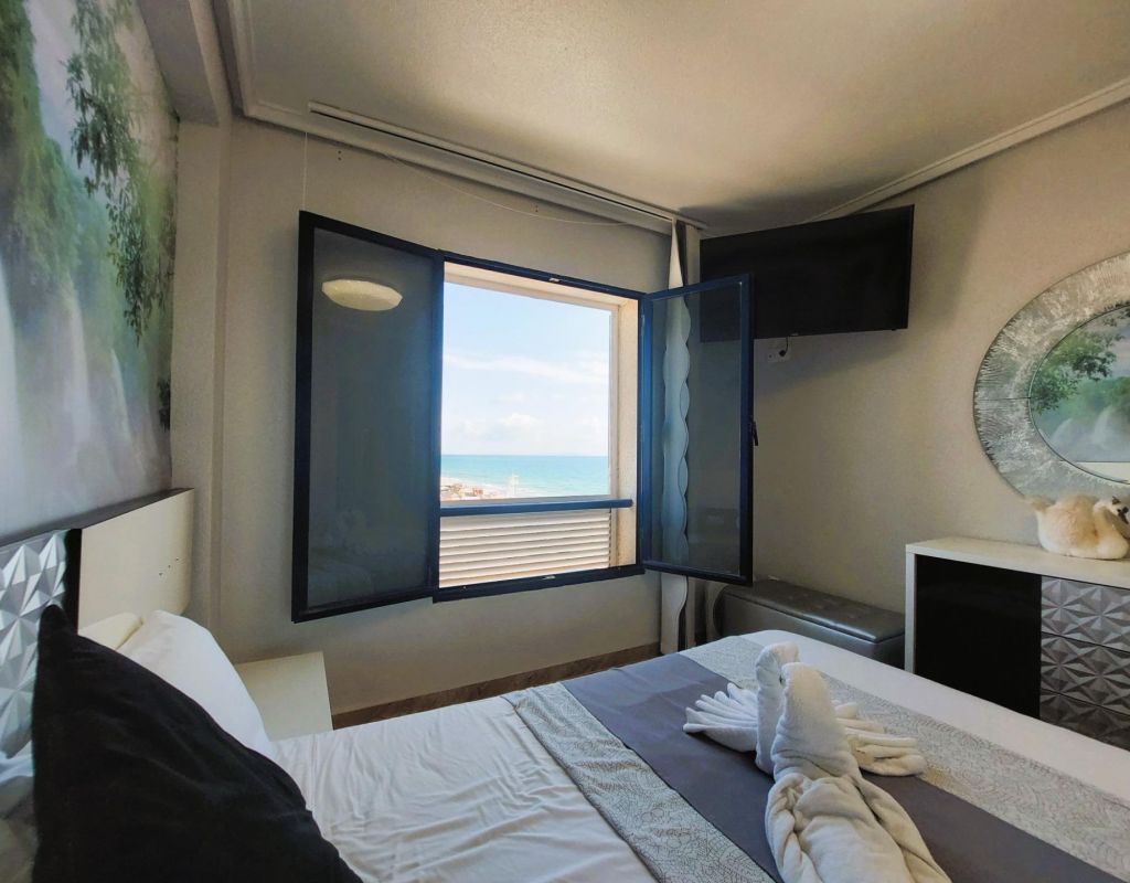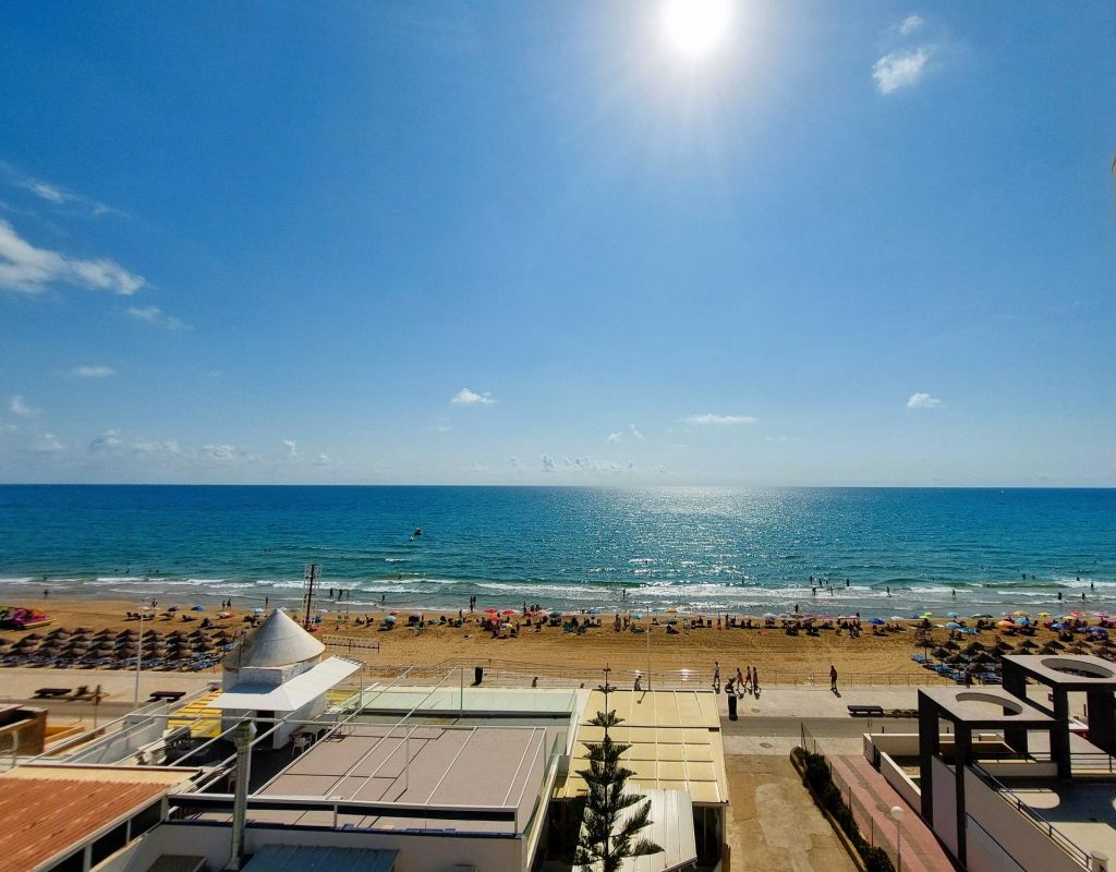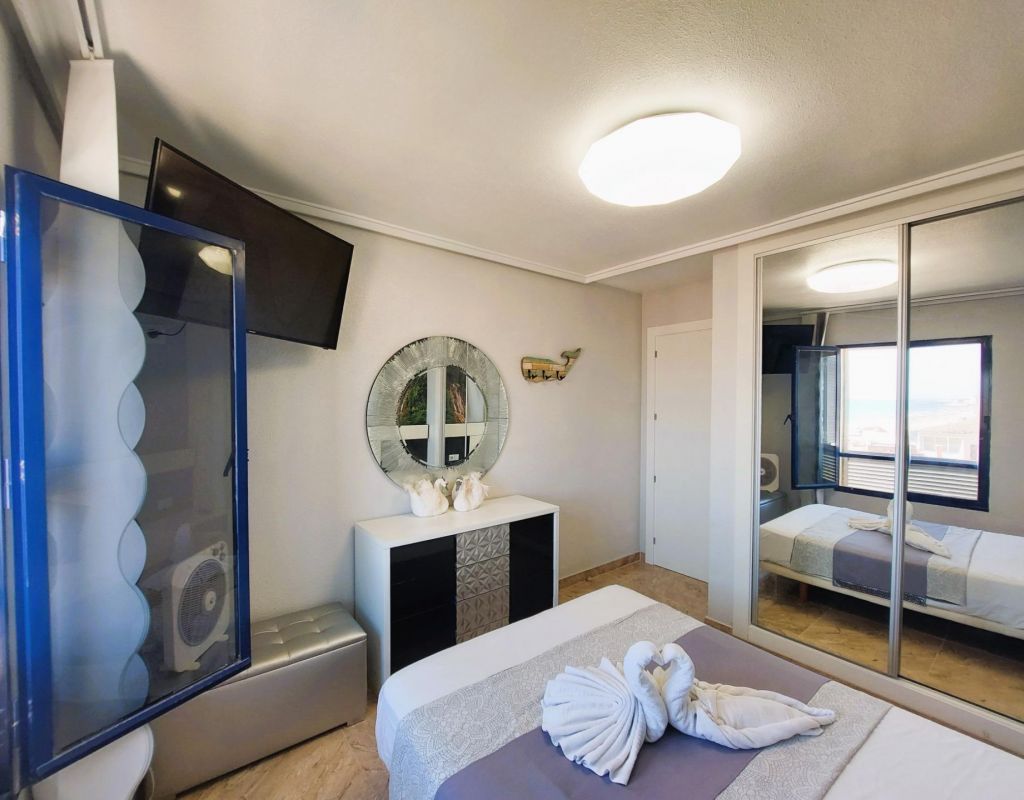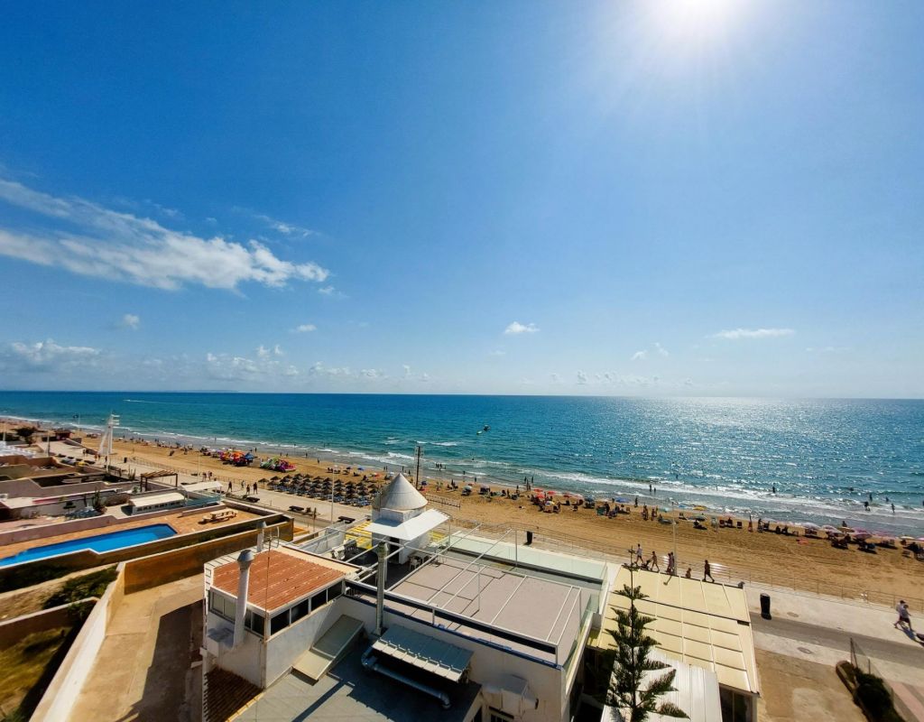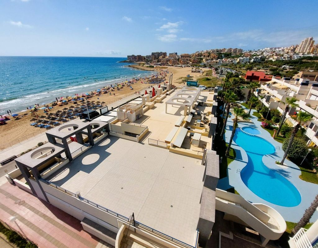 Beautiful flat on the front line of the beach of La Mata with great frontal sea views. . . Totally refurbished, with 2 double bedrooms, 1 bathroom and large living-dining room with open plan kitchen. . . Underground parking space and storage room included in the price. . . Located in a fantastic urbanization with large communal areas: beautiful swimming pool, gardens, solarium area facing the sea, games room/dance room, etc....