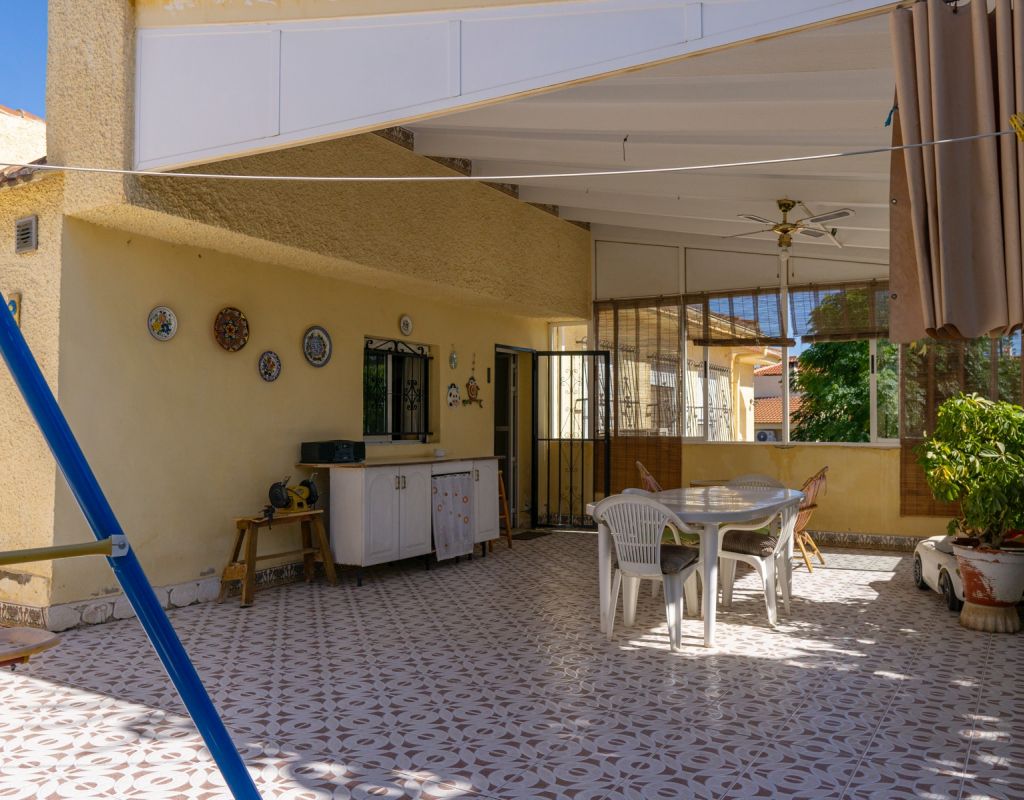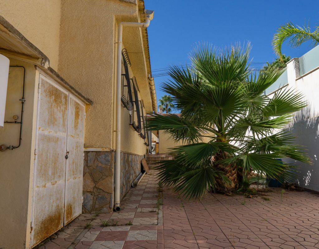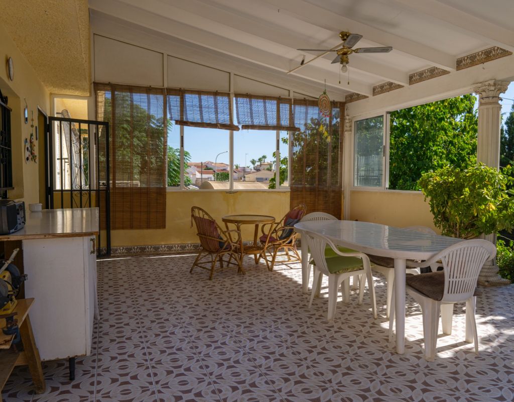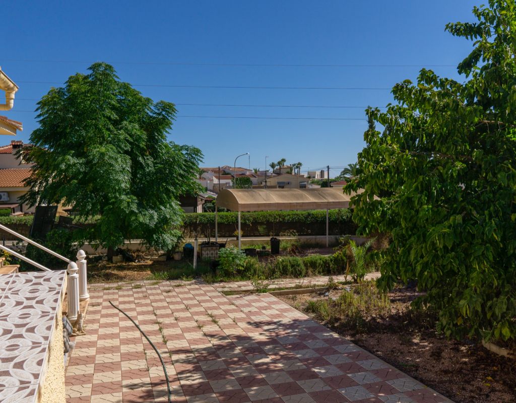 This South Facing, Four Bedroom, Corner Detached Villa in Ciudad Quesada is located within the Heart of this bustling area, between Quesada High Street and Altos de Quesada, just round the Corner from The Club, and Lakeside Restaurant (Old Country Club). Within less than a 15 minute walk from Quesada High Street or a couple of minutes drive, not forgetting La Marquesa golf course less than 5 minutes drive away. Guardamar del Segura beaches are also aprox a 10 minute drive away! This property on an outstanding 965m2 Plot, sits currently a property of 138m2 Build, comprising of a separate fully fitted kitchen, with access out to a spacious covered veranda, ideal for dining al fresco with wonderful breeze and views over the garden; family sized lounge/dining room with an open fireplace, leading to the glazed in and covered terrace, a perfect winter room, overlooking the gardens; four double bedrooms, the master with en suite shower room; and a family bathroom.