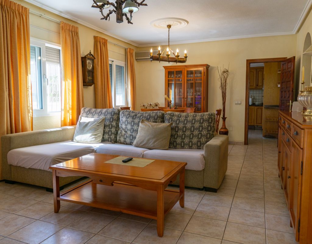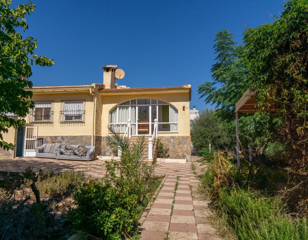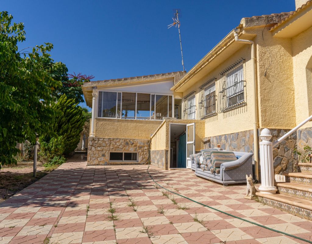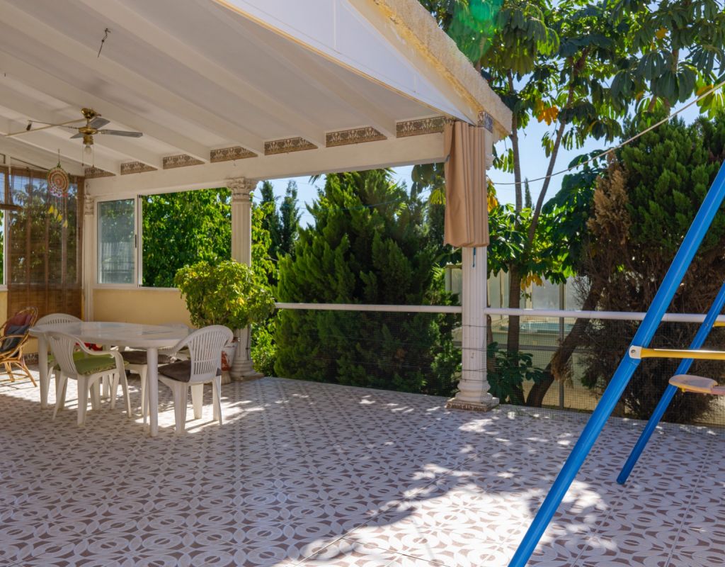 This South Facing, Four Bedroom, Corner Detached Villa in Ciudad Quesada is located within the Heart of this bustling area, between Quesada High Street and Altos de Quesada, just round the Corner from The Club, and Lakeside Restaurant (Old Country Club). Within less than a 15 minute walk from Quesada High Street or a couple of minutes drive, not forgetting La Marquesa golf course less than 5 minutes drive away. Guardamar del Segura beaches are also aprox a 10 minute drive away! This property on an outstanding 965m2 Plot, sits currently a property of 138m2 Build, comprising of a separate fully fitted kitchen, with access out to a spacious covered veranda, ideal for dining al fresco with wonderful breeze and views over the garden; family sized lounge/dining room with an open fireplace, leading to the glazed in and covered terrace, a perfect winter room, overlooking the gardens; four double bedrooms, the master with en suite shower room; and a family bathroom.