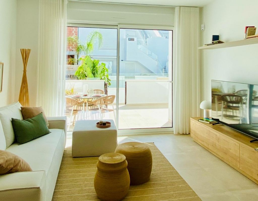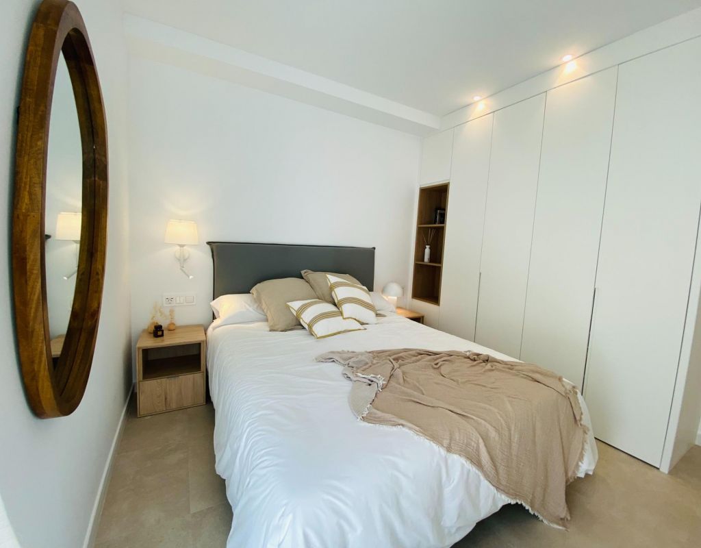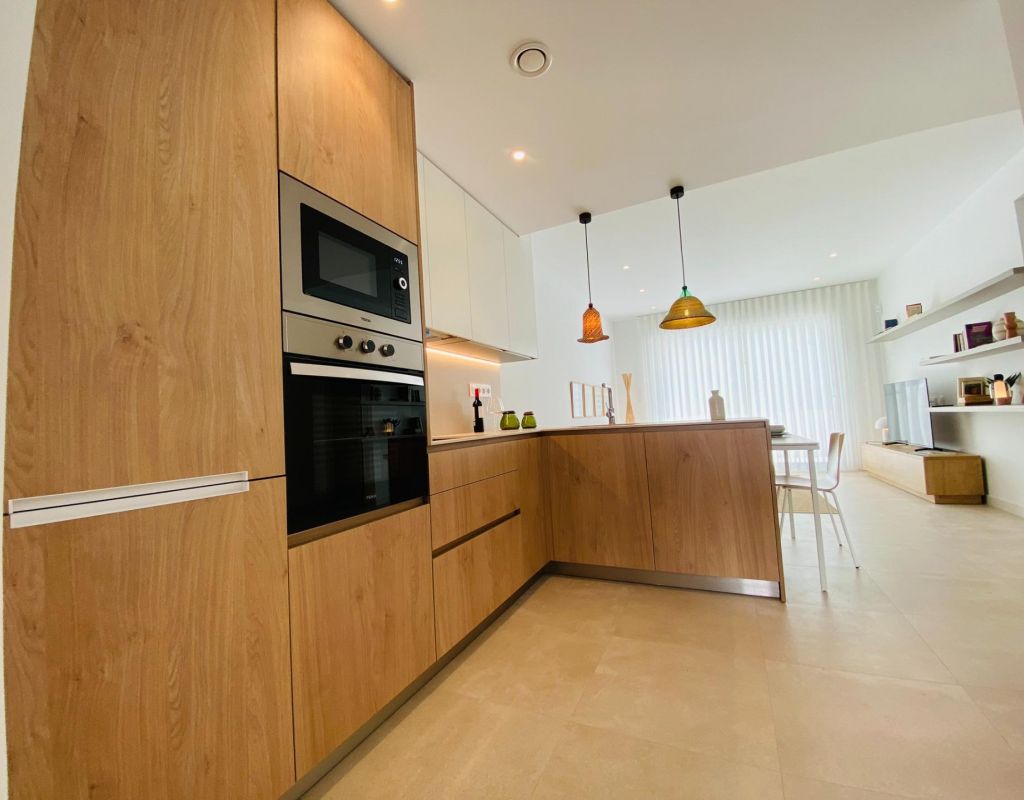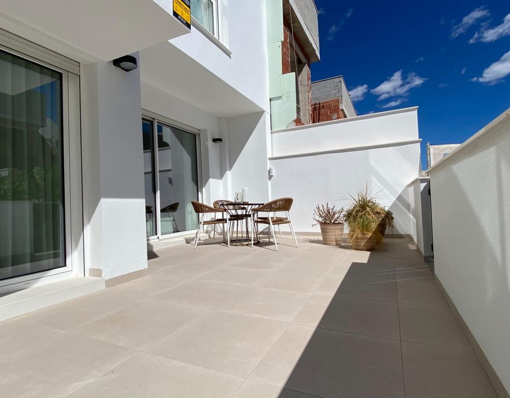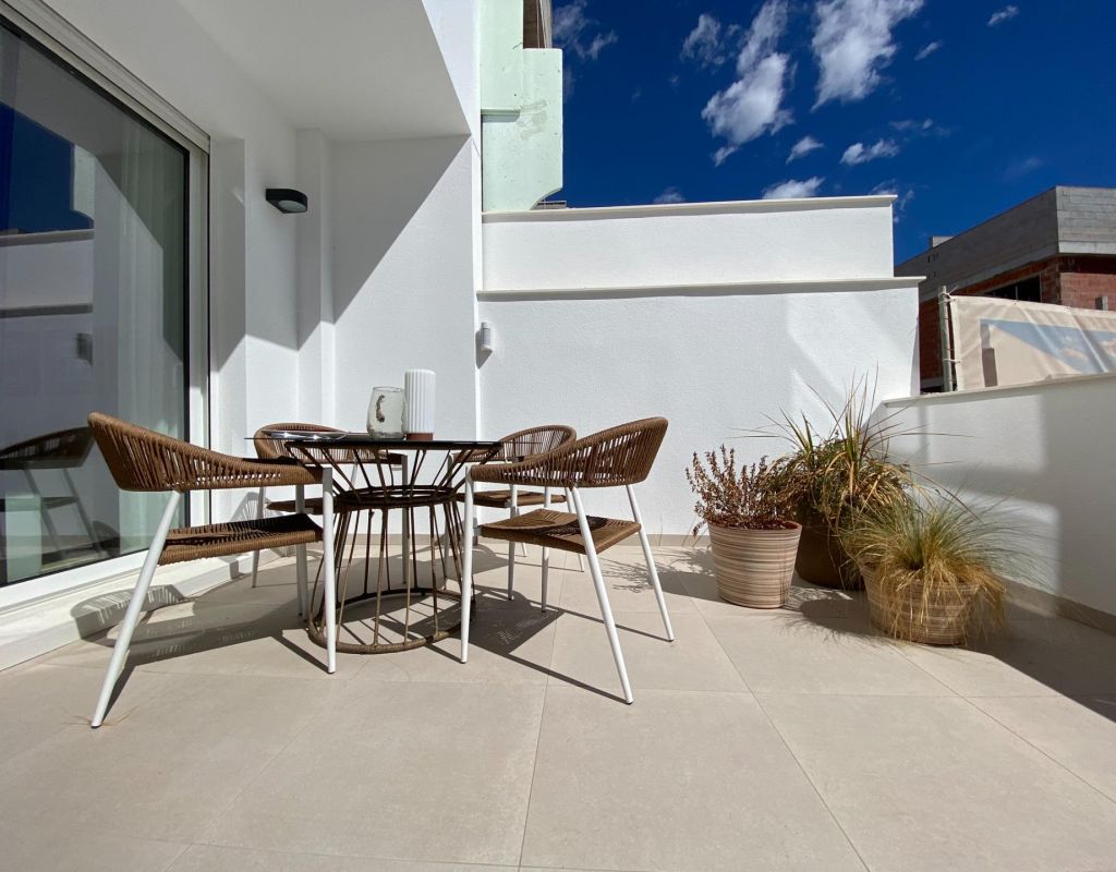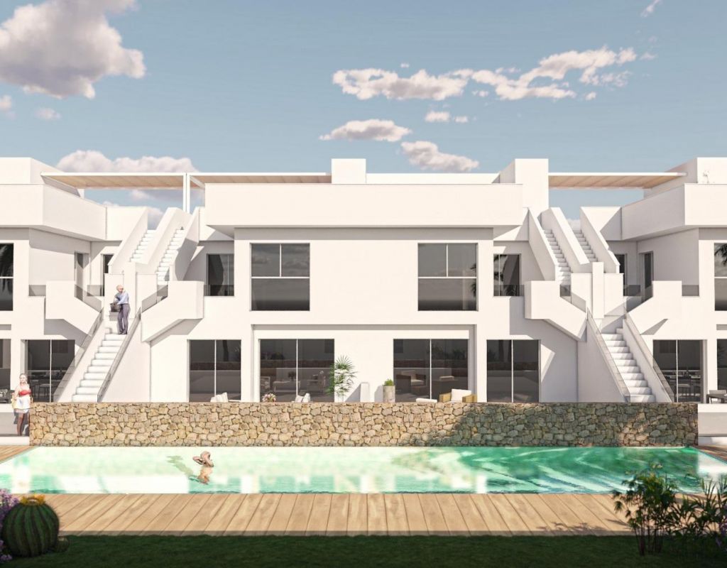 New Build Bungalow Residential Complex in Pilar de la Horadada Exclusive Modern Bungalows in Pilar de la Horadada This new development offers 16 stylish bungalows in the desirable town of Pilar de la Horadada, located in the southernmost part of Costa Blanca. Choose between 2 or 3-bedroom options, each featuring 2 bathrooms. Ground-floor units come with spacious front and rear terraces, providing direct access to the communal pool and garden, while top-floor units boast a large private rooftop solarium. Spacious Living with Modern Features Each bungalow includes a bright and open living/dining area and a fully equipped kitchen with large sliding doors that connect the indoor and outdoor spaces seamlessly. Bedrooms feature built-in wardrobes. Ducted air conditioning is installed, and the complex includes an elevator for easy access to upper floors. Private parking spaces are also included for all units. Prime Location in Pilar de la Horadada Pilar de la Horadada is a traditional Spanish town with a lively main street offering supermarkets, shops, restaurants, and bars. The beautiful beaches of Torre de la Horadada and Mil Palmeras are just 5 minutes away. The development is conveniently located 40 km from Corvera Airport (Murcia) and 55 km from Alicante Airport, making it an ideal location for both permanent living and holiday getaways.