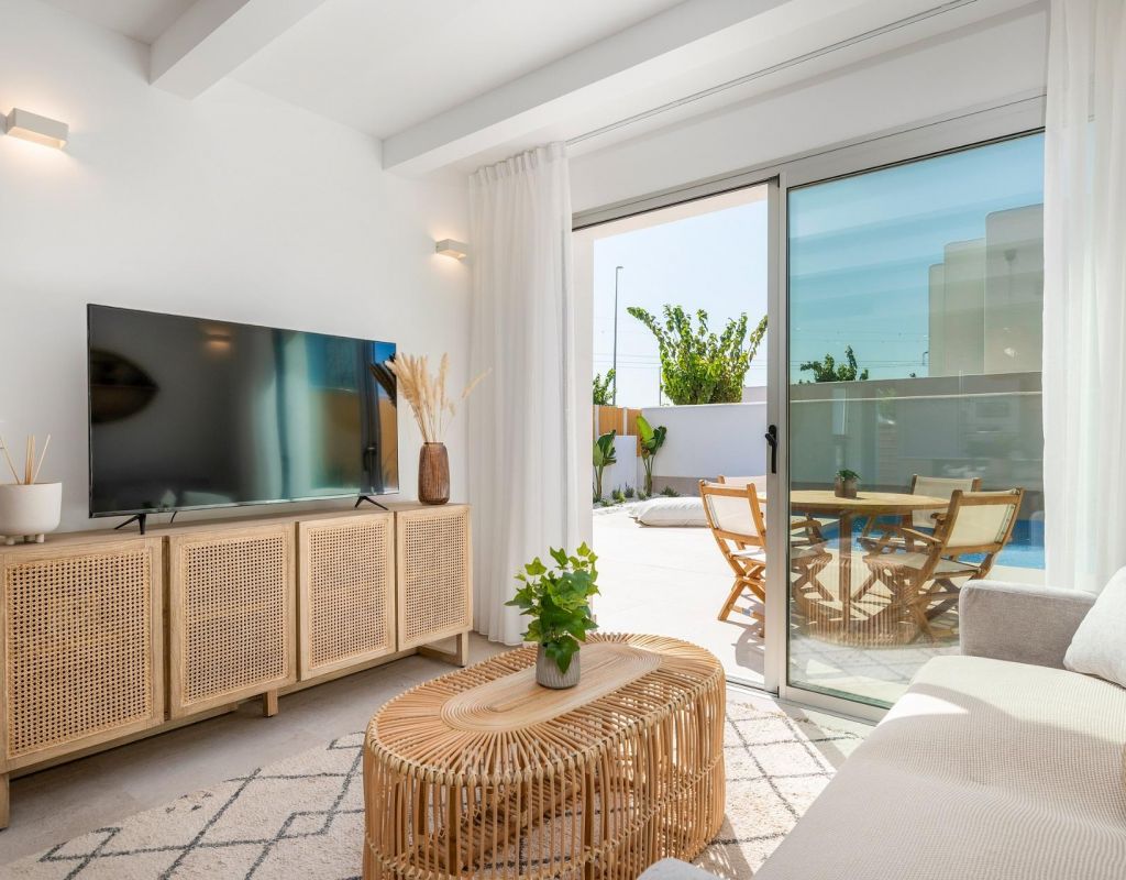 New construction bungalows in Dolores Residential with ground floor properties with garden or top floor with private solarium, with 3 bedrooms and 2 bathrooms, are located in Dolores (Alicante), a privileged area of the Costa Blanca, located next to the Natural Park El Hondo, surrounded by nature and equipped with all the services. It is 25 minutes from Alicante airport, close to the beautiful beaches of Guardamar del Segura and just a few minutes from the main golf courses in the area. Its excellent location makes the development a perfect option for those looking for peace and quiet. Each property has its own parking space and a storage room in most of the units. And with a beautiful communal swimming pool with toilet to relax after a day of work or sightseeing. High quality finishes and modern amenities These homes are built with high quality materials and finishes. The exterior carpentry is made of aluminium with thermal bridge break, the bathrooms have bathroom furniture with mirror. The lighting installed throughout the property guarantees energy efficiency and a modern atmosphere. Built-in wardrobes lined on the inside. These features combine to create a comfortable and stylish living environment for you and your family. Prime location close to daily amenities Situated on the outskirts of the charming town of Dolores, these homes are just a short walk from essential day-to-day amenities including shops, restaurants and local services. Dolores is part of the Vega Baja del Segura region in the south of Alicante province, known for its agricultural landscapes and relaxed pace of life. Nearby Points of Interest La Marina beach: 10 km Guardamar Beach: 10 km Alicante Airport: 30 km Murcia-Corvera Airport: 60 km Golf Courses: 10 km Shopping Centres: 12 km Perfect for enjoying the Costa Blanca lifestyle With the Mediterranean climate, beautiful beaches just a short drive away and several golf courses nearby, this urbanisation offers the ideal balance of relaxation and leisure. Whether you are looking for a holiday home or a permanent residence, these newly built homes in Dolores offer modern living in a serene and well-connected location.
