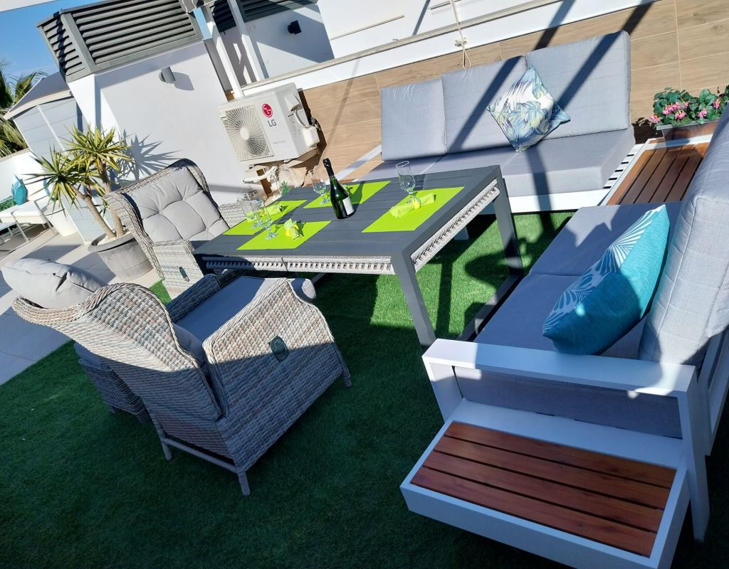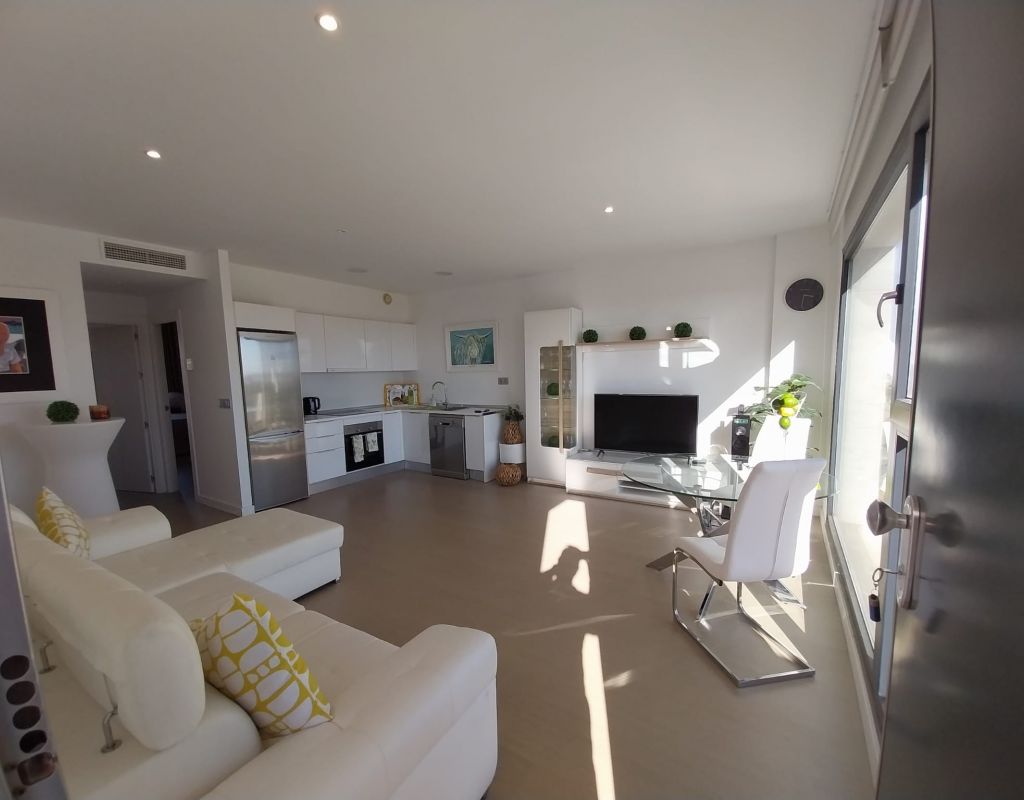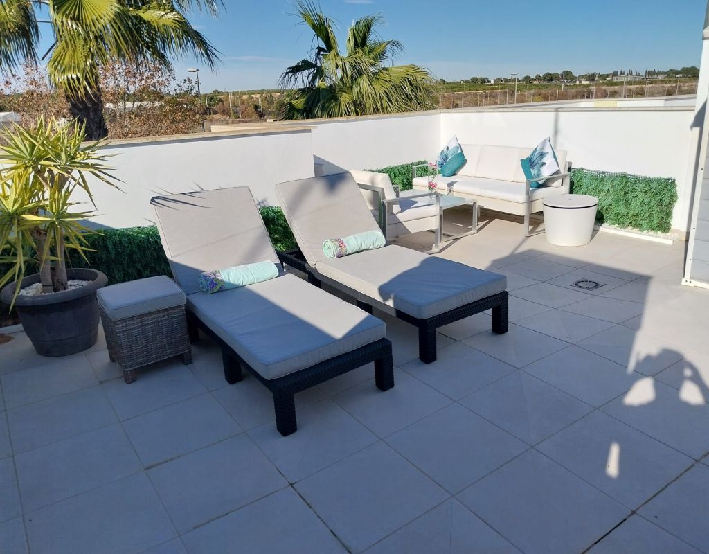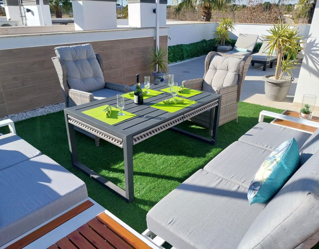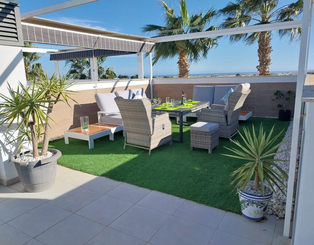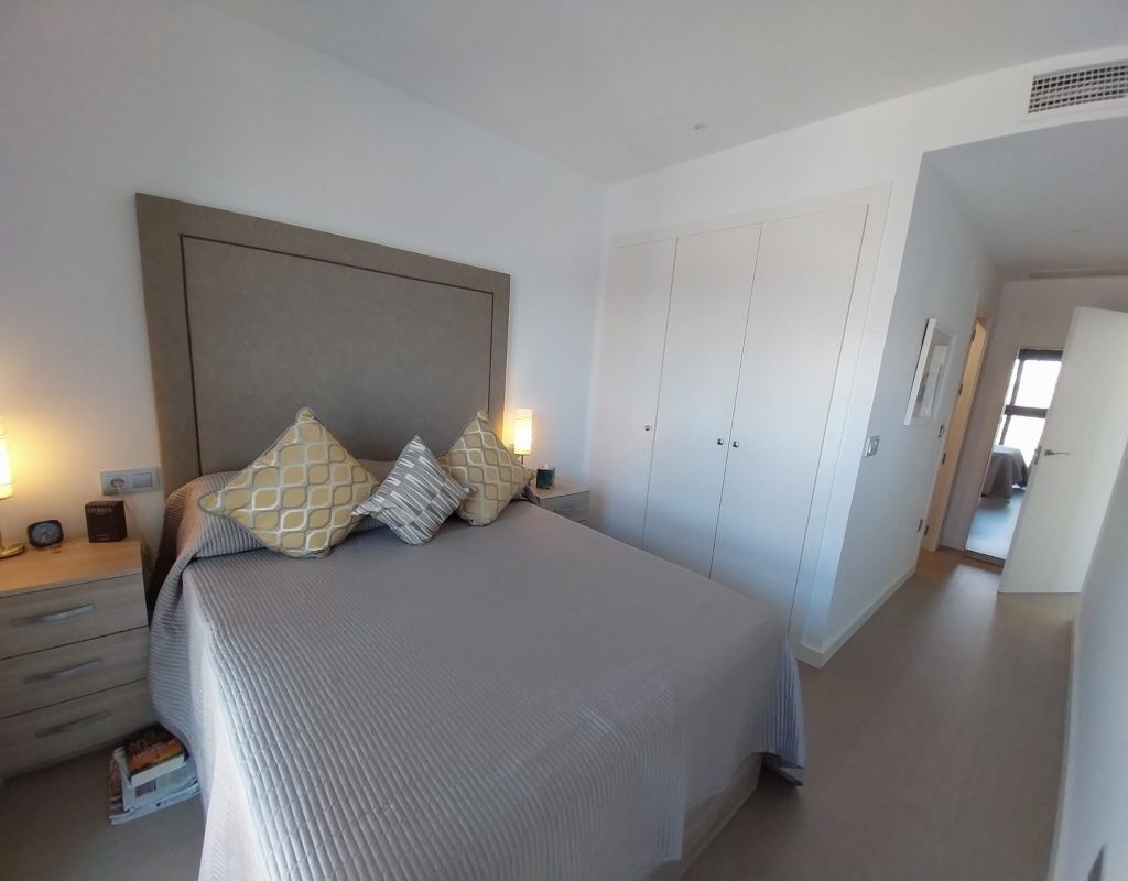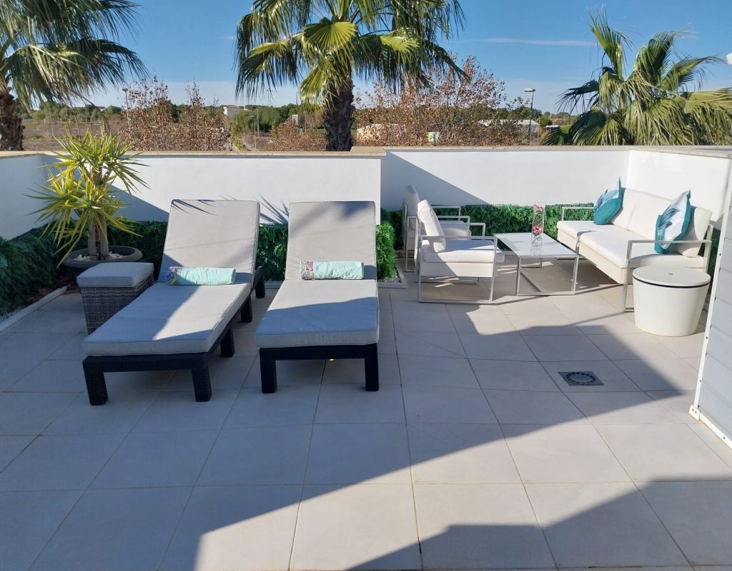 SOUTH FACING PENTHOUSE APARTMENT 2 BEDROOMS / 2 BATHROOMS FURNISHED DUCTED A/C STUNNING VIEWS OF MAR MENOR LARGE SOLARIUM WITH SEA VIEWS PARKING GORGEOUS COMMUNAL POOL AND GARDENS Discover refined living in this stunning resale apartment that matches contemporary comfort with the allure of natural beauty. Here’s what awaits you: – Prime Location – Set against the backdrop of Lo Romero Golf, immerse yourself in the serenity of lush landscapes and breathtaking sea vistas. An idyllic retreat from the daily grind. – Spacious Interior – Spread across an expansive 85m², this residence invites you to unwind and entertain in style, basking in the glow of abundant natural light that fills every corner. – Bedrooms and Bathrooms – Two comfortable bedrooms and two tastefully appointed bathrooms, one of which is ensuite. Here, you’ll enjoy privacy and convenience, with enough space for guests. Year-Round Pleasure – Stay comfortable in all seasons with built-in air conditioning, while the electric sunshade ensures the terrace is your haven at any time of day. – Communal Oasis – Dive into the communal pool, a refreshing haven for cooling off and unwinding. Forge new connections and savor the Mediterranean climate in this communal retreat. – Timeless Elegance – The building’s exterior is finished with exquisite beige natural stone, imparting a sense of class and durability. – Lifestyle – Whether it’s conquering the challenging Lo Romero Golf Course, exploring nearby beaches, or navigating local markets, this residence serves as your ideal base for embracing the vibrant Costa Blanca lifestyle. Seize the moment – Your ticket to luxury living in one of the most sought-after locations awaits. Contact us now to schedule a viewing and transform your dreams into reality!