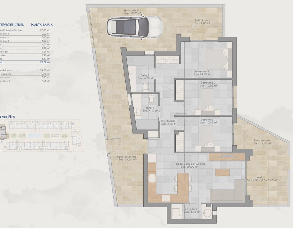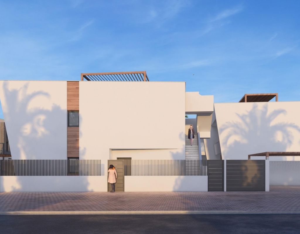 New Construction Homes in Torre-Pacheco, Costa Cálida Modern Bungalows with Exceptional Features Discover a new residential complex in Torre-Pacheco, offering 24 stylish bungalows with 2 or 3 bedrooms. Choose between ground-floor homes with spacious terraces or first-floor units boasting private terraces and solariums. Each solarium includes a pergola, a barbecue area, and reinforced roofing, perfect for installing a jacuzzi. All homes come with a designated parking space and fully installed air conditioning, ensuring comfort year-round. Prime Location in Torre-Pacheco Nestled in the heart of Torre-Pacheco, this development enjoys proximity to essential amenities, including supermarkets, shops, bars, and restaurants. The vibrant town center, with its charming Spanish ambiance, is within walking distance. For beach lovers, the stunning Mar Menor is just a 10-minute drive away, offering golden sands and crystal-clear waters. Enjoy Outstanding Community Amenities The complex features a beautifully landscaped community area with lush gardens and a sparkling pool, providing a serene retreat to relax and unwind. The area€s sunny climate, averaging 320 days of sunshine annually, complements these outdoor spaces perfectly. Surrounded by Award-Winning Golf Courses Torre-Pacheco is a golfer€s paradise, surrounded by some of the most renowned golf courses in Spain. These courses are just a short drive away, making it an ideal location for golf enthusiasts. Strategic Connections to Key Destinations Murcia International Airport: 20 km (approximately 20 minutes by car). Train Station: Only 700 meters away, offering convenient travel options. Shopping Centers: Several large shopping complexes within a 15 km radius. Beaches: The beautiful Costa Cálida beaches are a mere 10 km away. Ports and Marinas: The closest marina is around 12 km away, perfect for boating and water sports. A Healthier Lifestyle Awaits The Costa Cálida region is renowned for its exceptional quality of life. With low humidity, clean air, and a subtropical climate, this area is one of the healthiest in Spain. The perfect combination of natural beauty, sea breezes, and abundant sunlight makes Torre-Pacheco a highly sought-after destination. Act Now to Secure Your Dream Home Don€t miss this opportunity to own a modern home in a prime location. Contact us today to learn more about this incredible development or to schedule a viewing!