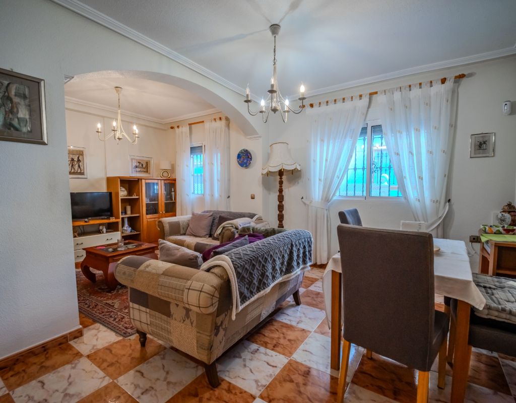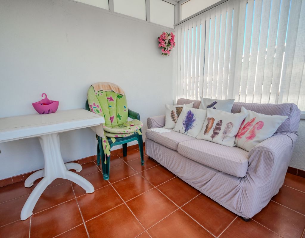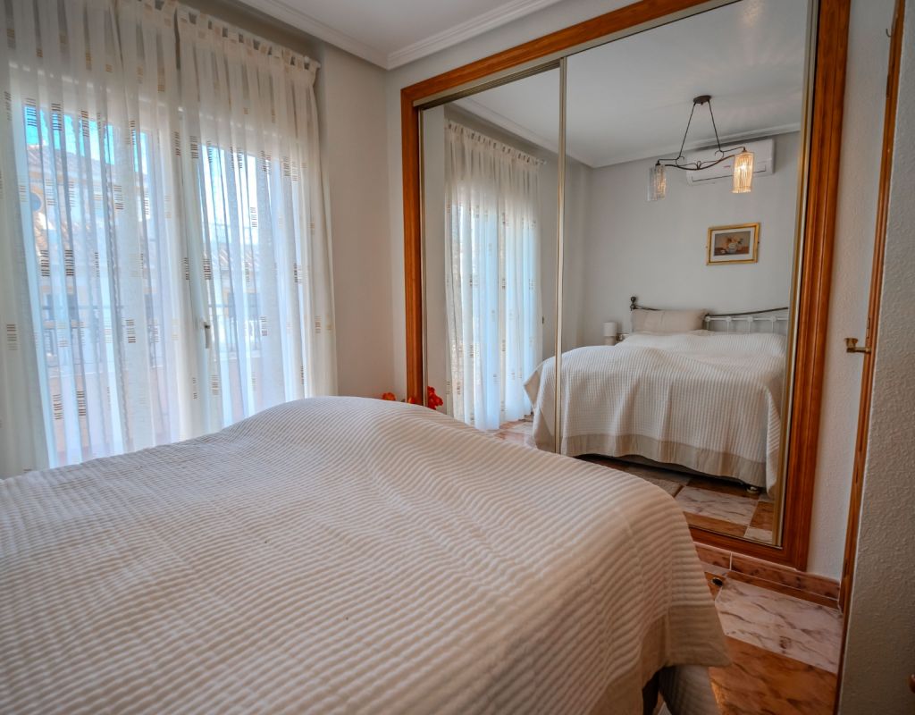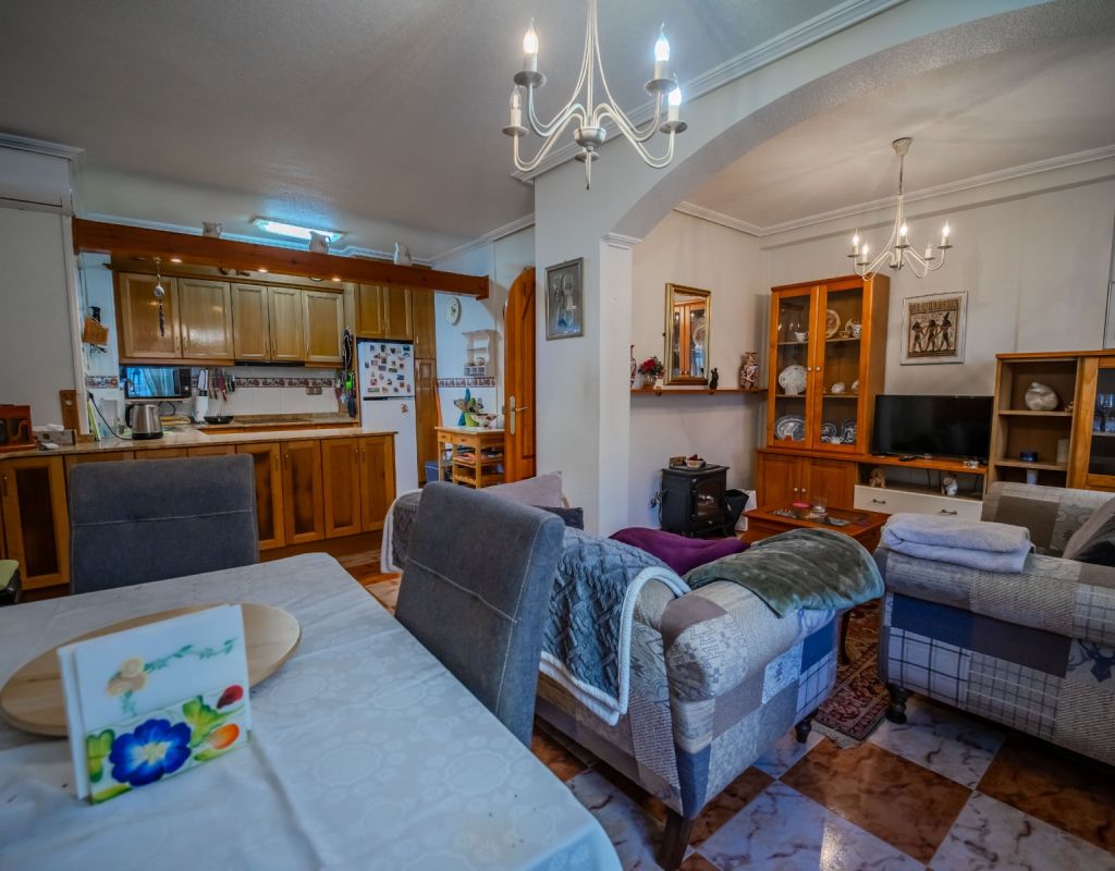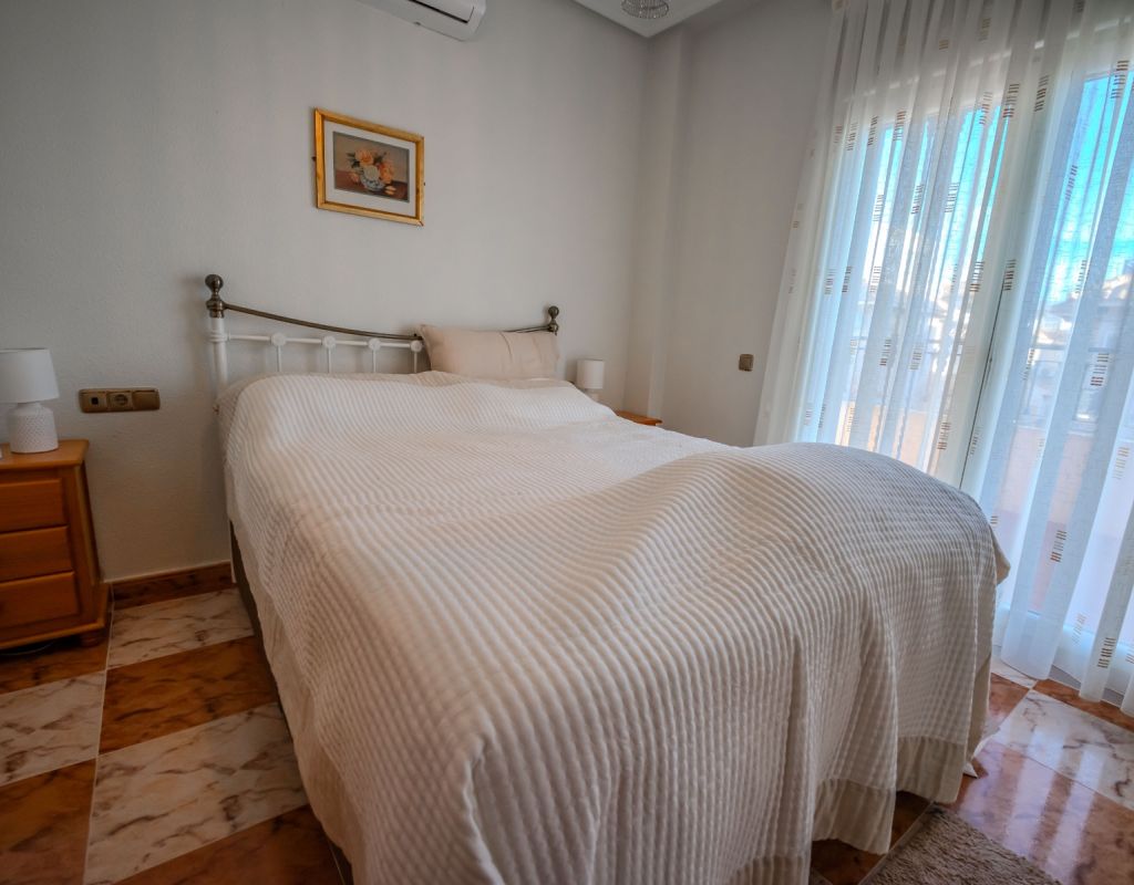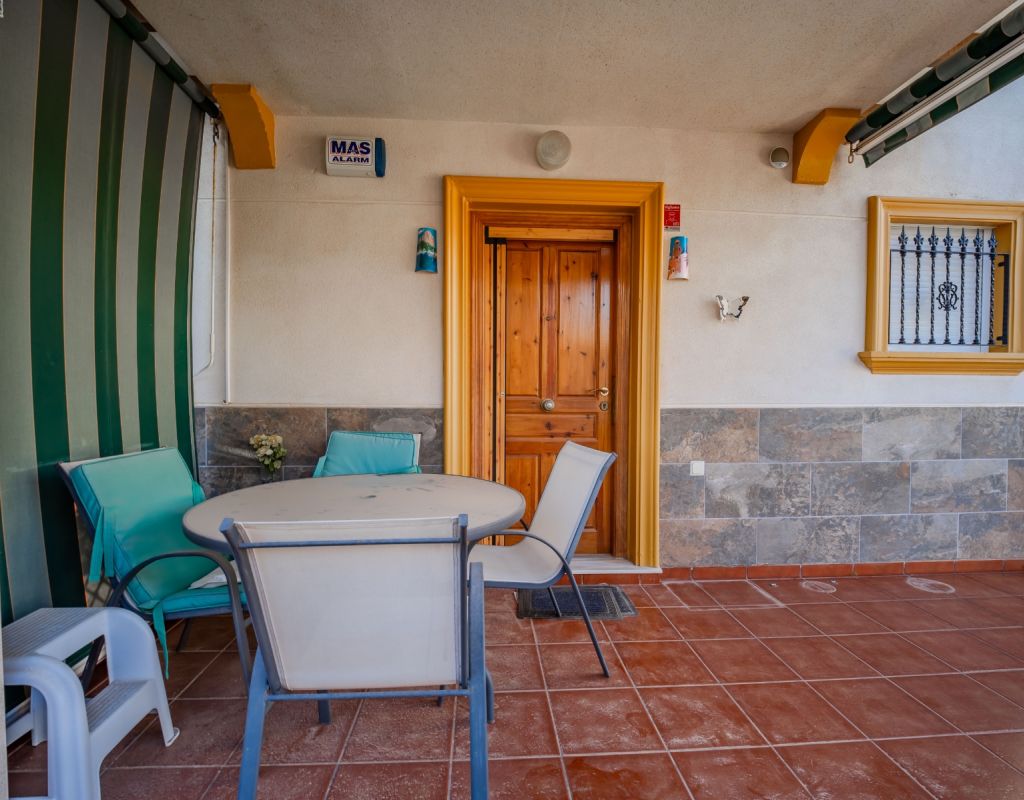 An exceptional opportunity to secure your own traditional-style 2-bedroom, 1.5-bathroom quad house in the highly desirable La Zenia area This beautifully presented and impeccably maintained home perfectly blends comfort, space, and classic Mediterranean charm. The sun-drenched front terrace welcomes you in and provides the perfect setting to enjoy all-day sunshine. A private driveway adds convenience, while the spacious terraces offer ideal outdoor living all year round. The impressive private solarium boasts partial sea views, creating a wonderful space for relaxing, entertaining, or simply soaking up the Costa Blanca lifestyle. The ground floor features a bright and inviting living area, a fully fitted kitchen, a comfortable bedroom, and a convenient guest WC. Upstairs, you will find two generous double bedrooms with built-in wardrobes and a stylish family bathroom. The master bedroom benefits from its own private balcony, and an internal staircase leads to the expansive rooftop solarium complete with storage space and those charming sea views. Set within a well-maintained community with access to a beautiful communal pool, the property is sold fully furnished, including white goods and air conditioning — ready for immediate enjoyment, whether as a permanent residence, holiday home, or investment opportunity. Ideally positioned within walking distance to Zenia Boulevard, a wide selection of restaurants, shops, and the lively Cabo Roig strip, and just a 20-minute stroll to the golden sands of La Zenia Beach. A superb opportunity to own a character-filled home in one of Costa Blanca’s most sought-after coastal locations — early viewing is highly recommended.