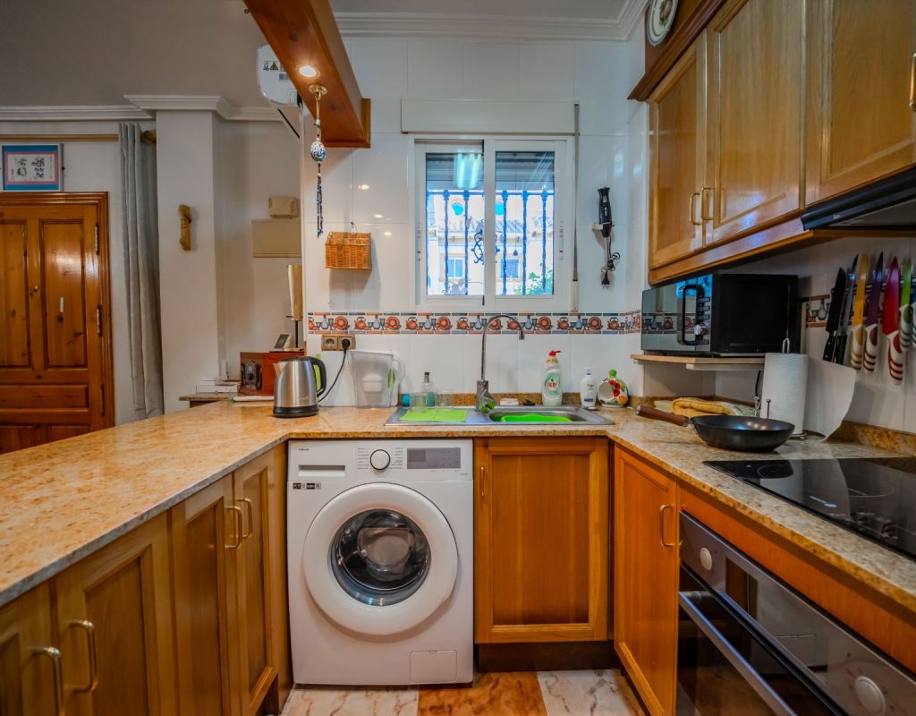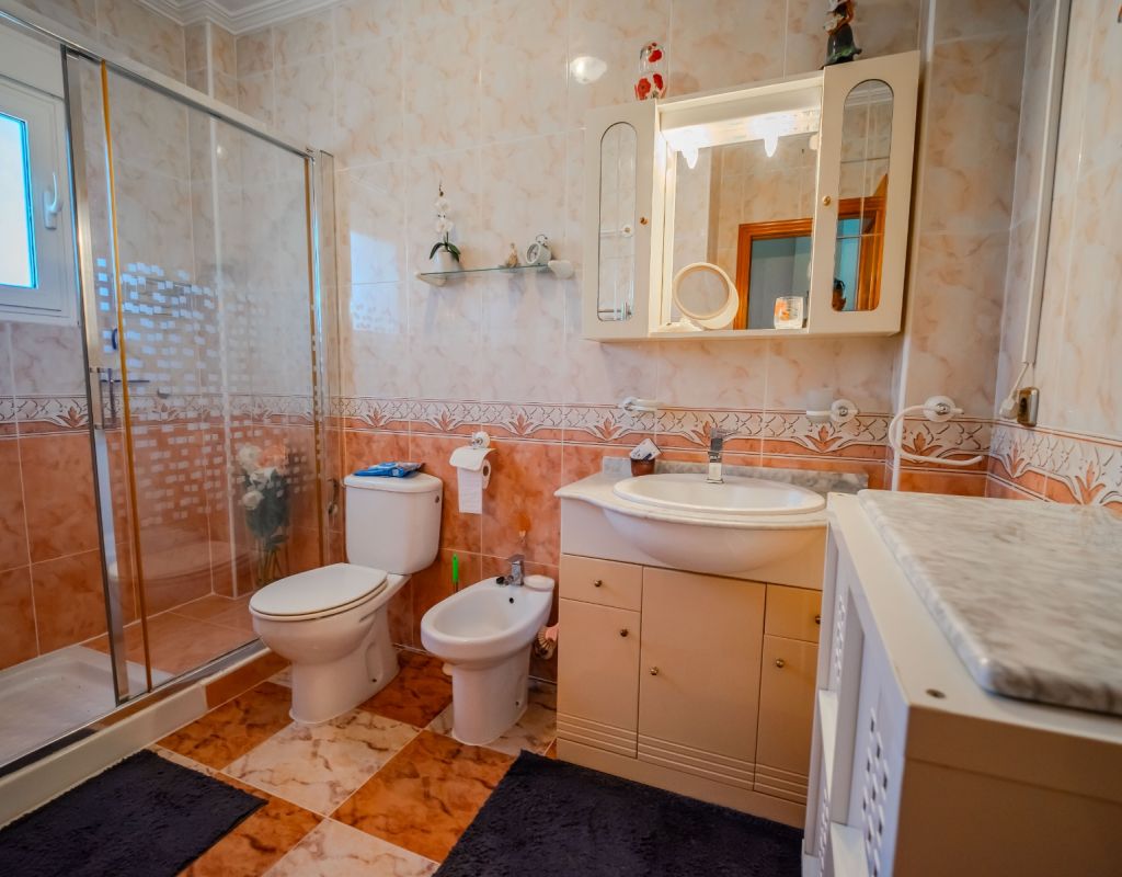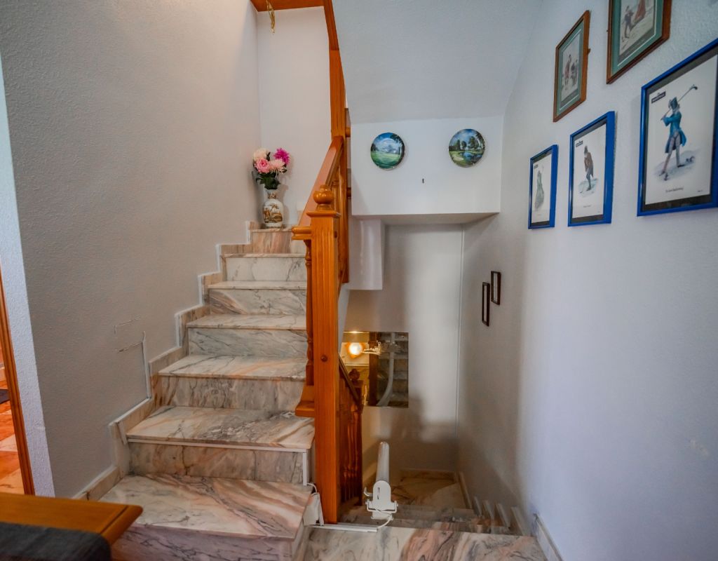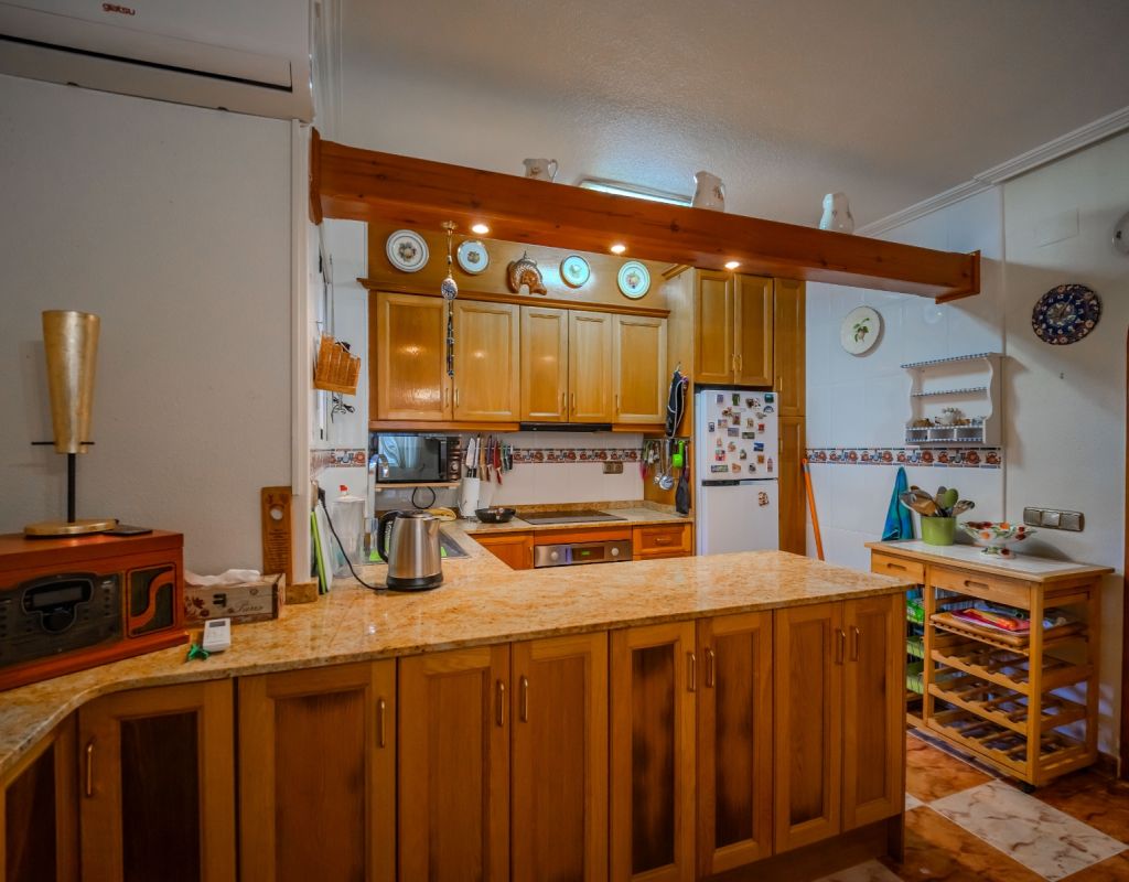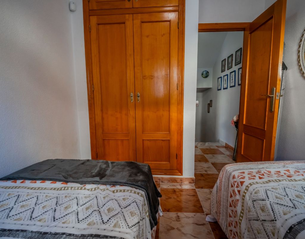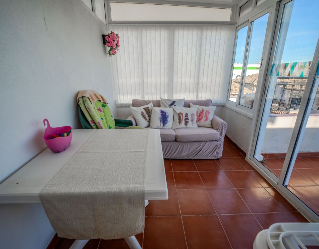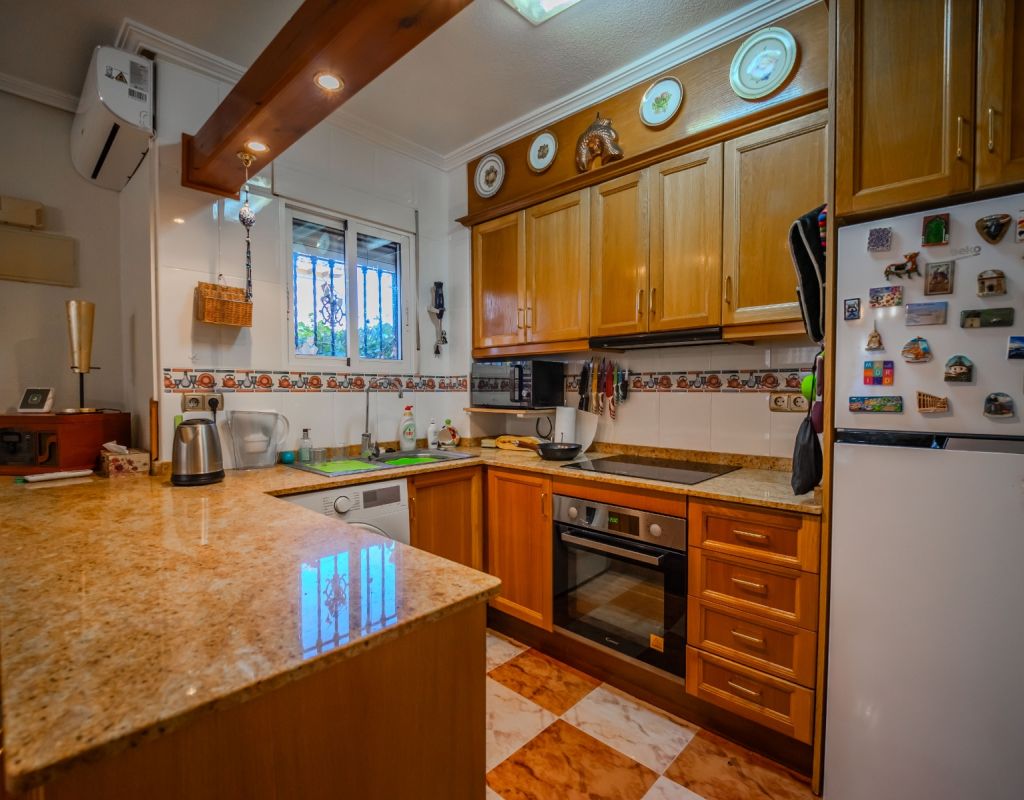 An exceptional opportunity to secure your own traditional-style 2-bedroom, 1.5-bathroom quad house in the highly desirable La Zenia area This beautifully presented and impeccably maintained home perfectly blends comfort, space, and classic Mediterranean charm. The sun-drenched front terrace welcomes you in and provides the perfect setting to enjoy all-day sunshine. A private driveway adds convenience, while the spacious terraces offer ideal outdoor living all year round. The impressive private solarium boasts partial sea views, creating a wonderful space for relaxing, entertaining, or simply soaking up the Costa Blanca lifestyle. The ground floor features a bright and inviting living area, a fully fitted kitchen, a comfortable bedroom, and a convenient guest WC. Upstairs, you will find two generous double bedrooms with built-in wardrobes and a stylish family bathroom. The master bedroom benefits from its own private balcony, and an internal staircase leads to the expansive rooftop solarium complete with storage space and those charming sea views. Set within a well-maintained community with access to a beautiful communal pool, the property is sold fully furnished, including white goods and air conditioning — ready for immediate enjoyment, whether as a permanent residence, holiday home, or investment opportunity. Ideally positioned within walking distance to Zenia Boulevard, a wide selection of restaurants, shops, and the lively Cabo Roig strip, and just a 20-minute stroll to the golden sands of La Zenia Beach. A superb opportunity to own a character-filled home in one of Costa Blanca’s most sought-after coastal locations — early viewing is highly recommended.