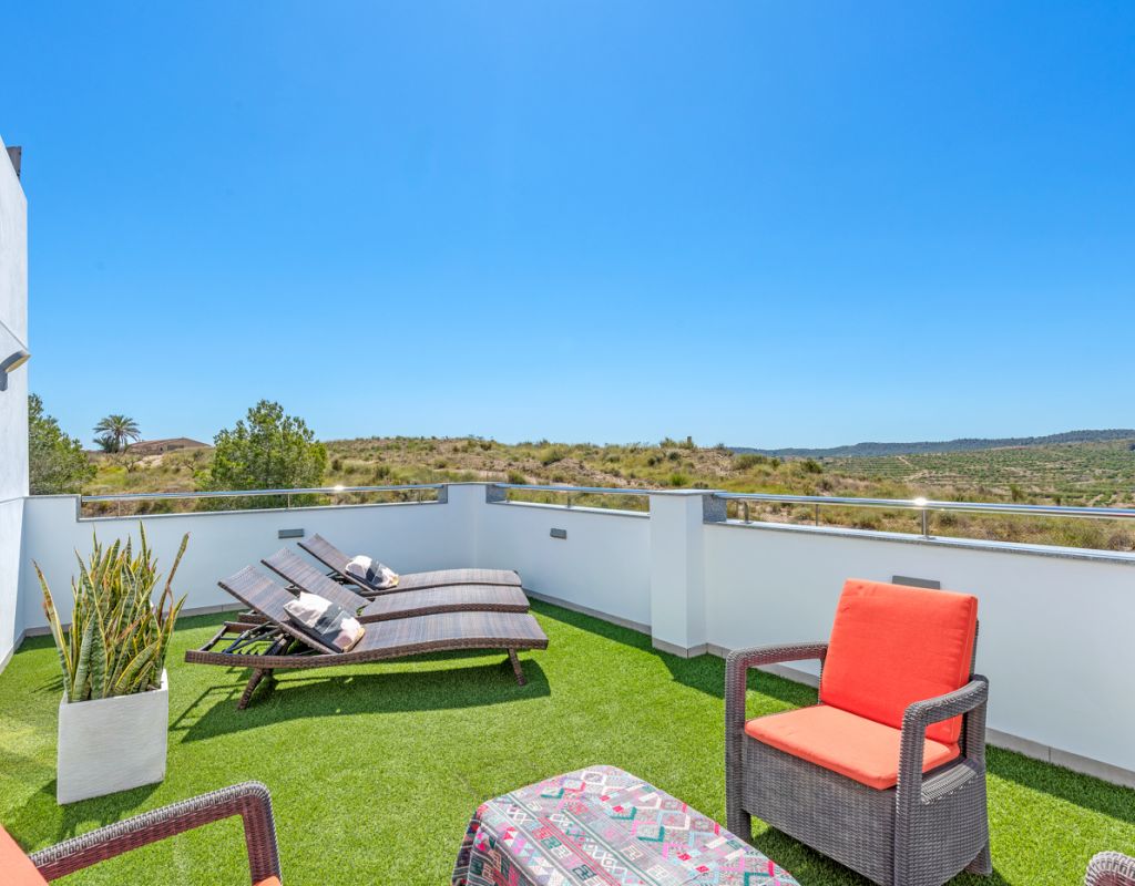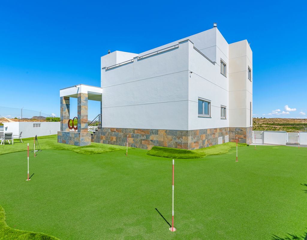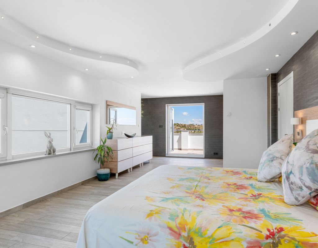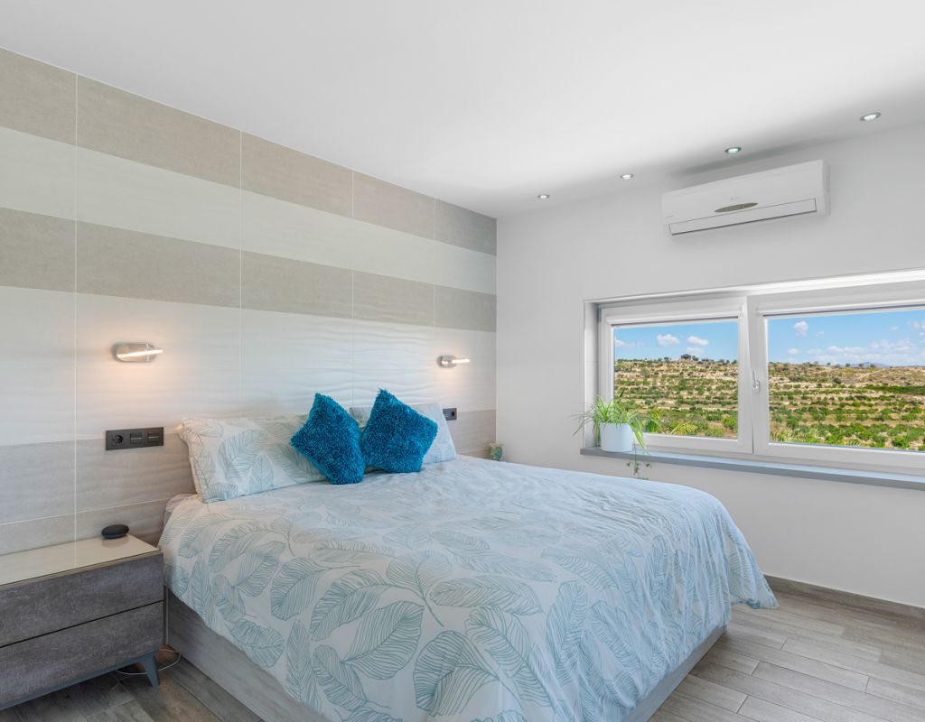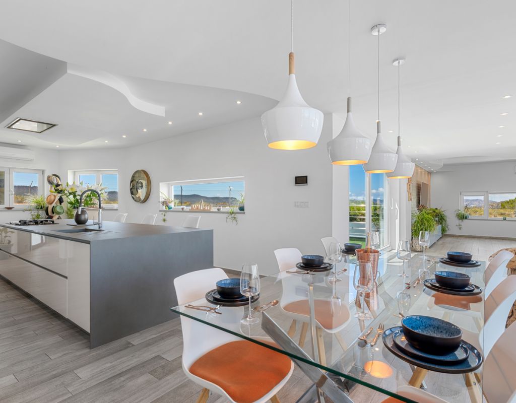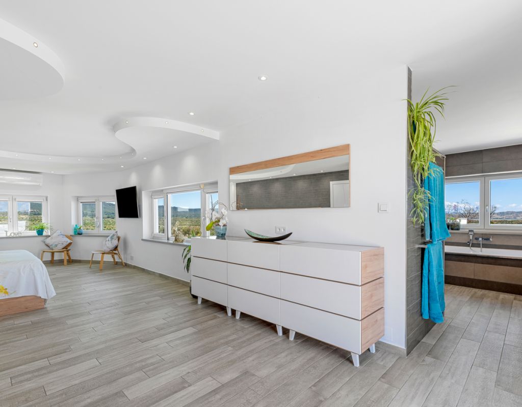 Welcome to this stunning modern eco-finca, expertly crafted to the highest standards and nestled in a picturesque setting on the outskirts of the charming village of Torremendo, Orihuela, Alicante. Key Features: 5 spacious bedrooms and 5 bathrooms, all facing south for optimal sunlight 329m2 of luxurious living space on a vast 16,000m2 plot, perfect for those seeking tranquillity and space Fantastic private swimming pool (12 x 3 meters) with multiple chill-out areas, ideal for relaxation and entertainment Mature trees, mini golfing area, and Jacuzzi, creating a serene oasis Underfloor heating throughout, ensuring a comfortable living environment Pool has a 4x4 shallow area ideal for young children. Property Layout: The ground floor boasts an impressive kitchen with integrated Bosch appliances, seamlessly connecting to the expansive living room and dining area. The unique windows offer breath taking views of the landscape while flooding the interior with natural light. Two bedrooms, a gym (could be converted to a 6th bedroom with an en-suite), and a bathroom complete this level. The first floor is home to the master bedroom, featuring an en-suite bathroom with a deep bathtub and private terrace offering panoramic views. Two additional double bedrooms with a family bathroom and direct access to a large terrace round out this level. With outdoor terraces on this level with shady dining and winter terrace which catches the winter sun. 1 bedroom on this level has a terrace with breath taking views over the Sierra Escalona. Outdoor Oasis: Pool bar table area and fully functional outdoor kitchen with bathroom and BBQ area Jacuzzi with stunning panoramic views Farmable land with various fruit trees and smart irrigation system Eco-Friendly Features: 68 solar panels with 15 kW inverter and 24 x 48-volt batteries for energy efficiency 20 kW backup generator and automatic systems controllable via mobile app Insulated pool cover and automatic chlorine and PH machines for low maintenance Underfloor heating and hot and cold air-conditioning throughout Additional Details: Automatic front gates. Pool Bar has undercover dining area. Panoramic views of the protected natural park, home to eagles, eagle owls, and other wildlife LED lights with interchangeable color schemes throughout the house and garden This modern eco-finca offers the perfect blend of luxury, sustainability, and tranquillity, making it an ideal retreat for those seeking a peaceful and self-sufficient lifestyle. For more information or to arrange a viewing Contact us today!