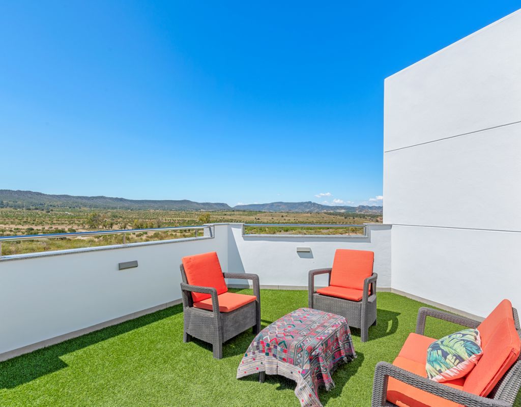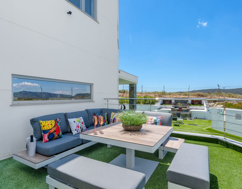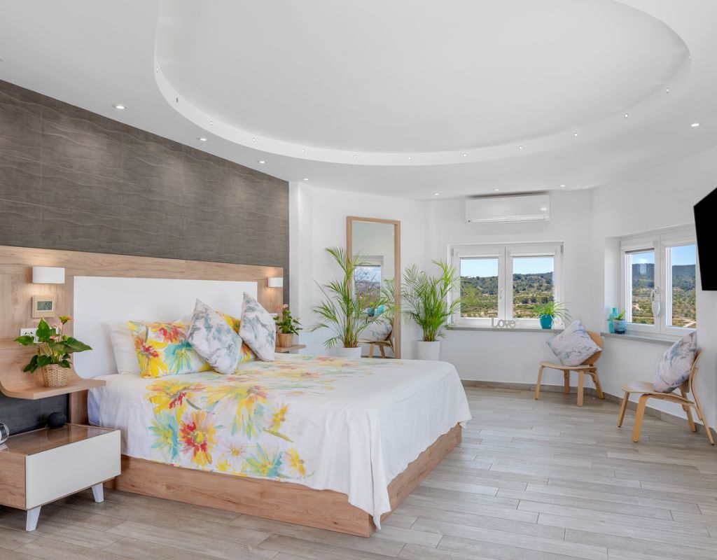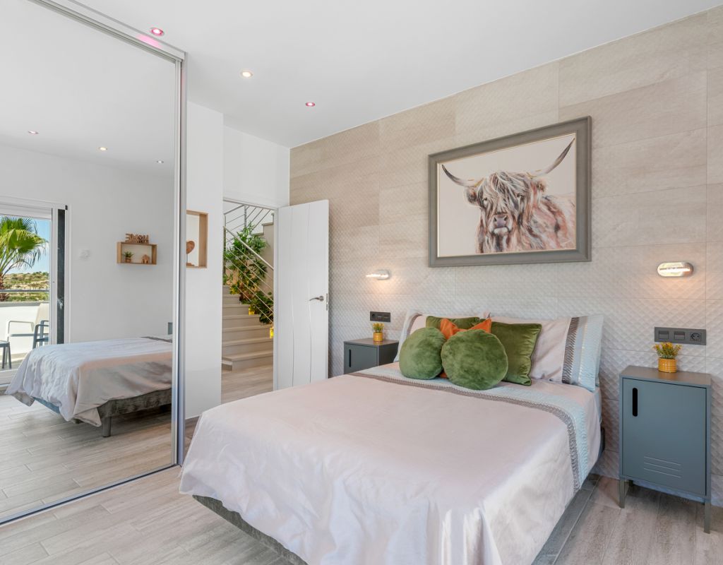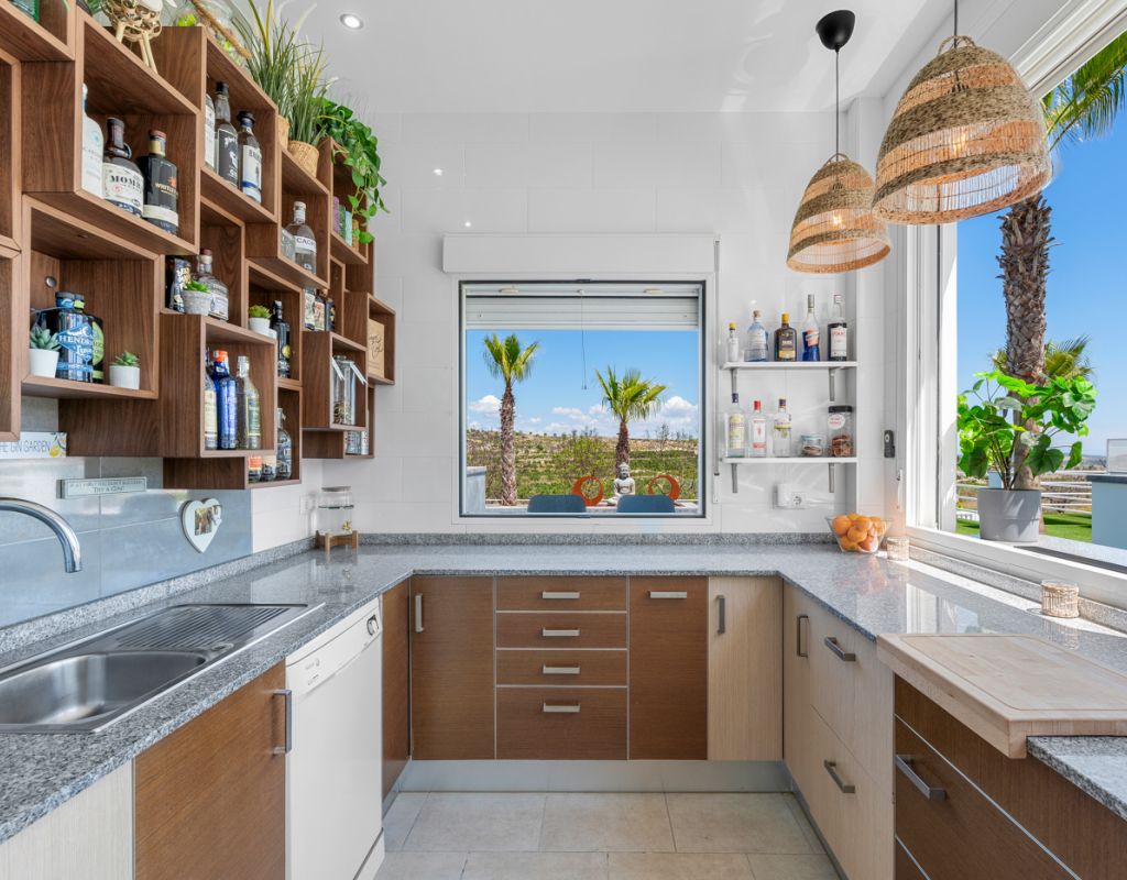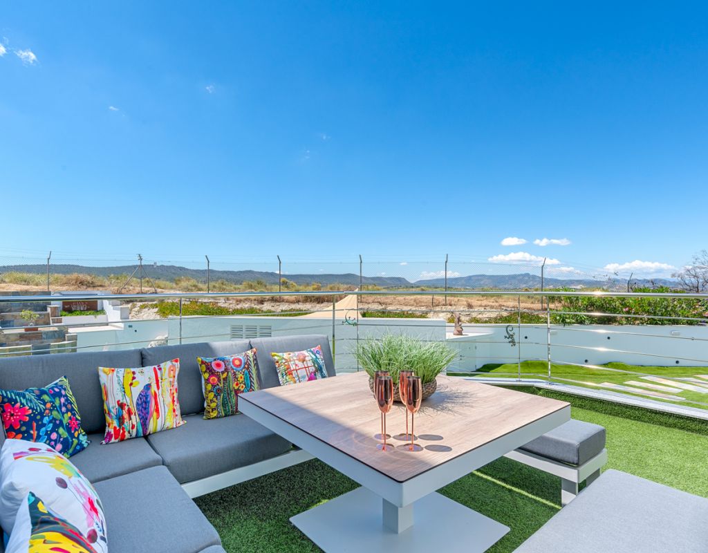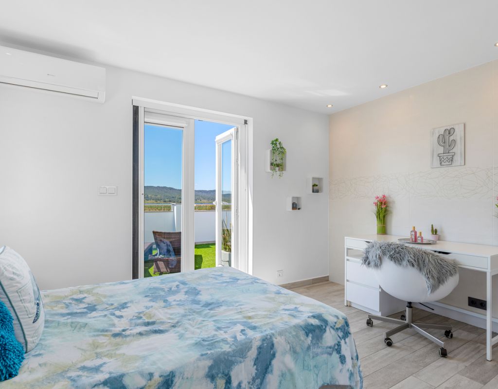 Welcome to this stunning modern eco-finca, expertly crafted to the highest standards and nestled in a picturesque setting on the outskirts of the charming village of Torremendo, Orihuela, Alicante. Key Features: 5 spacious bedrooms and 5 bathrooms, all facing south for optimal sunlight 329m2 of luxurious living space on a vast 16,000m2 plot, perfect for those seeking tranquillity and space Fantastic private swimming pool (12 x 3 meters) with multiple chill-out areas, ideal for relaxation and entertainment Mature trees, mini golfing area, and Jacuzzi, creating a serene oasis Underfloor heating throughout, ensuring a comfortable living environment Pool has a 4x4 shallow area ideal for young children. Property Layout: The ground floor boasts an impressive kitchen with integrated Bosch appliances, seamlessly connecting to the expansive living room and dining area. The unique windows offer breath taking views of the landscape while flooding the interior with natural light. Two bedrooms, a gym (could be converted to a 6th bedroom with an en-suite), and a bathroom complete this level. The first floor is home to the master bedroom, featuring an en-suite bathroom with a deep bathtub and private terrace offering panoramic views. Two additional double bedrooms with a family bathroom and direct access to a large terrace round out this level. With outdoor terraces on this level with shady dining and winter terrace which catches the winter sun. 1 bedroom on this level has a terrace with breath taking views over the Sierra Escalona. Outdoor Oasis: Pool bar table area and fully functional outdoor kitchen with bathroom and BBQ area Jacuzzi with stunning panoramic views Farmable land with various fruit trees and smart irrigation system Eco-Friendly Features: 68 solar panels with 15 kW inverter and 24 x 48-volt batteries for energy efficiency 20 kW backup generator and automatic systems controllable via mobile app Insulated pool cover and automatic chlorine and PH machines for low maintenance Underfloor heating and hot and cold air-conditioning throughout Additional Details: Automatic front gates. Pool Bar has undercover dining area. Panoramic views of the protected natural park, home to eagles, eagle owls, and other wildlife LED lights with interchangeable color schemes throughout the house and garden This modern eco-finca offers the perfect blend of luxury, sustainability, and tranquillity, making it an ideal retreat for those seeking a peaceful and self-sufficient lifestyle. For more information or to arrange a viewing Contact us today!