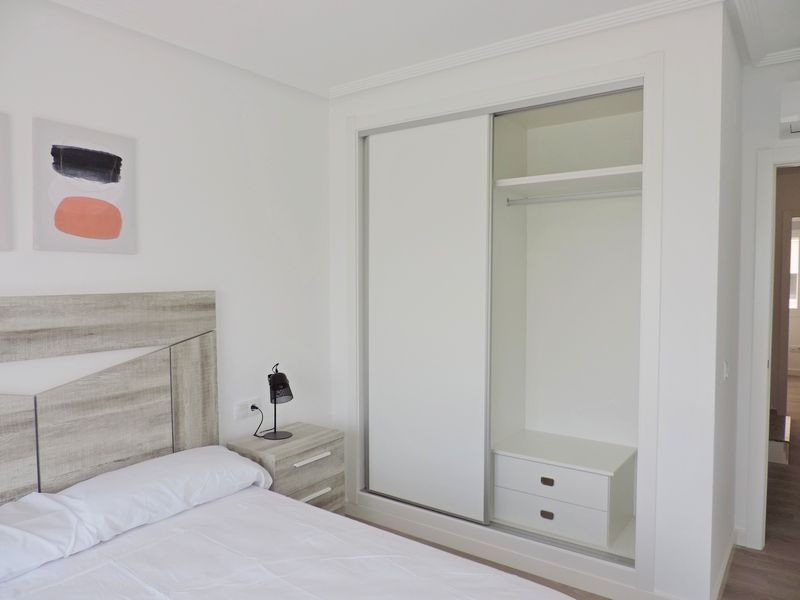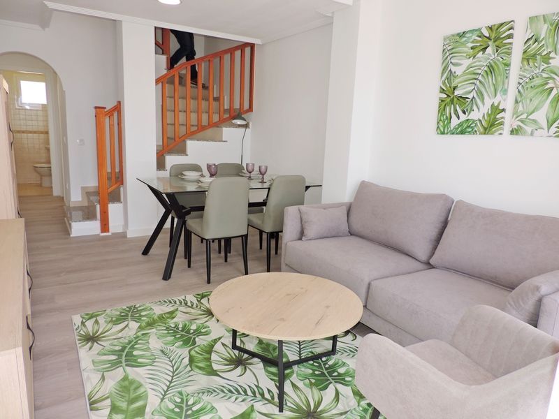 Santa Rosalía is a small village located next to the best golf courses and beaches of Los Alcázares. It lies within a triangle formed by Roda Golf, Mar Menor Golf and Los Alcázares.Within Santa Rosalía we can find all the necessary services such as a supermarket, bars and a great restaurant called La Almazara.The urbanization consists of 3 blocks of houses with a communal pool and sports area. The house has a dining/living area, kitchen, two bedrooms and a solarium where you can enjoy the wonderful sun. The house is fully completed with furniture, air conditioning, kitchen with all appliances, lighting, furniture in the bathrooms, screen, wooden floor and laundry room in solarium with thermos and washing machine.Come and see this property soon