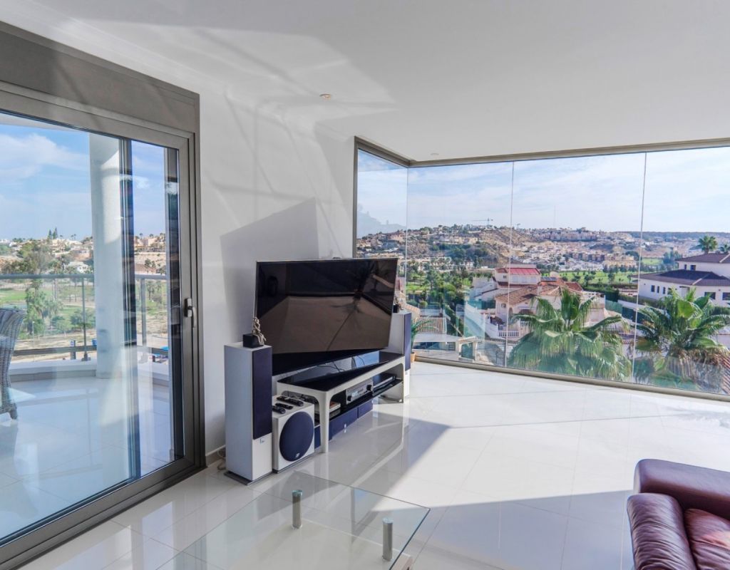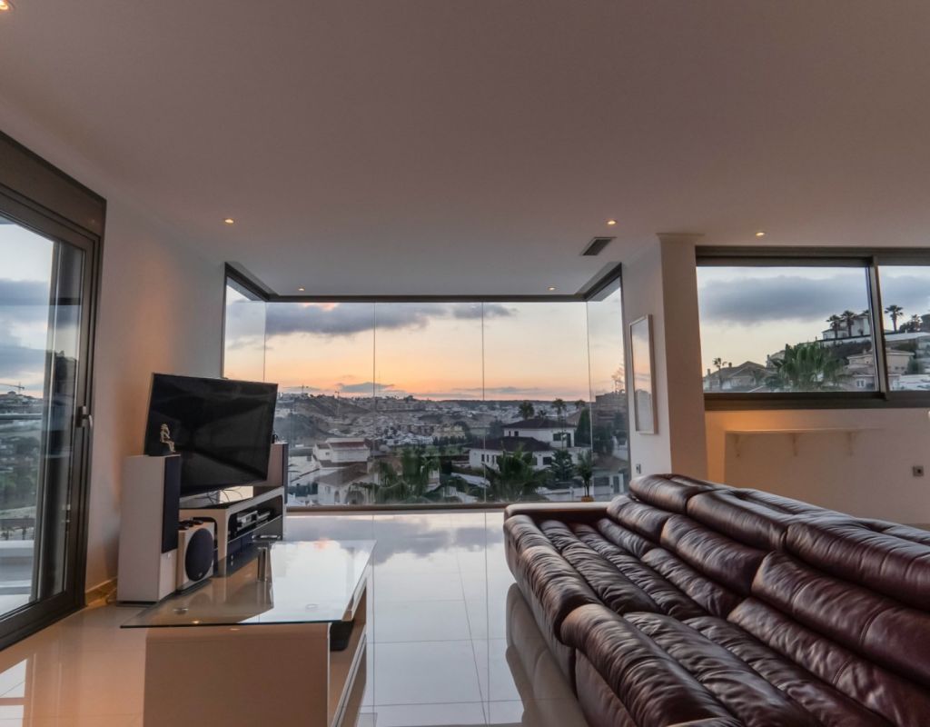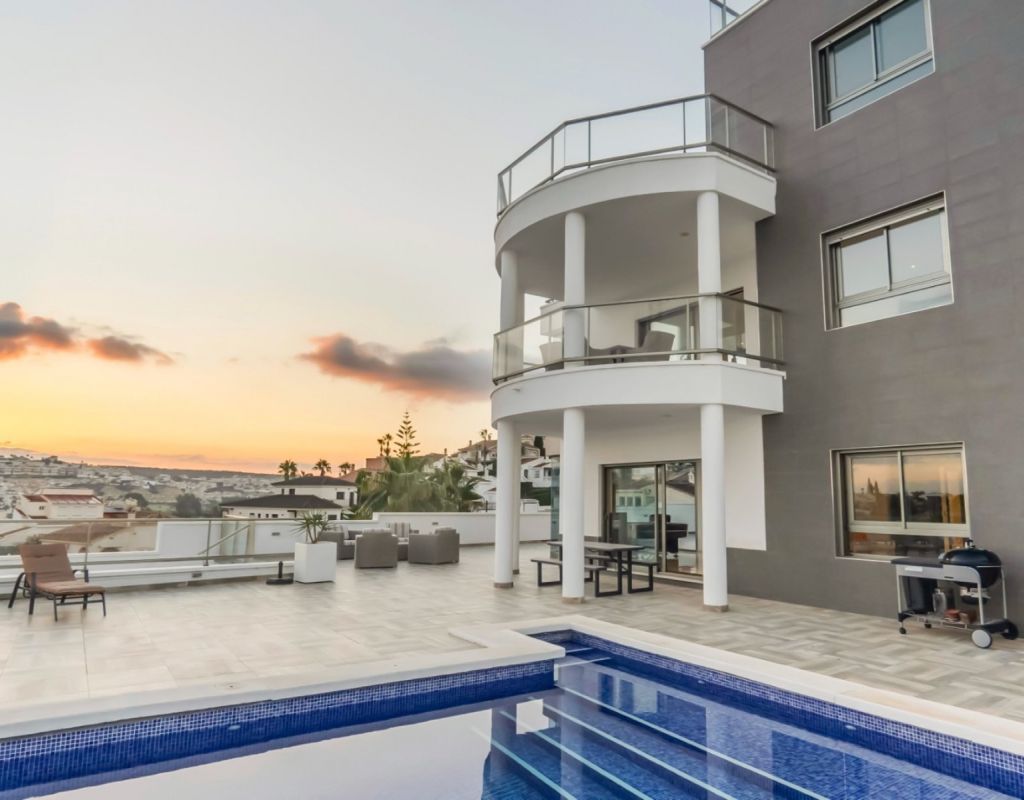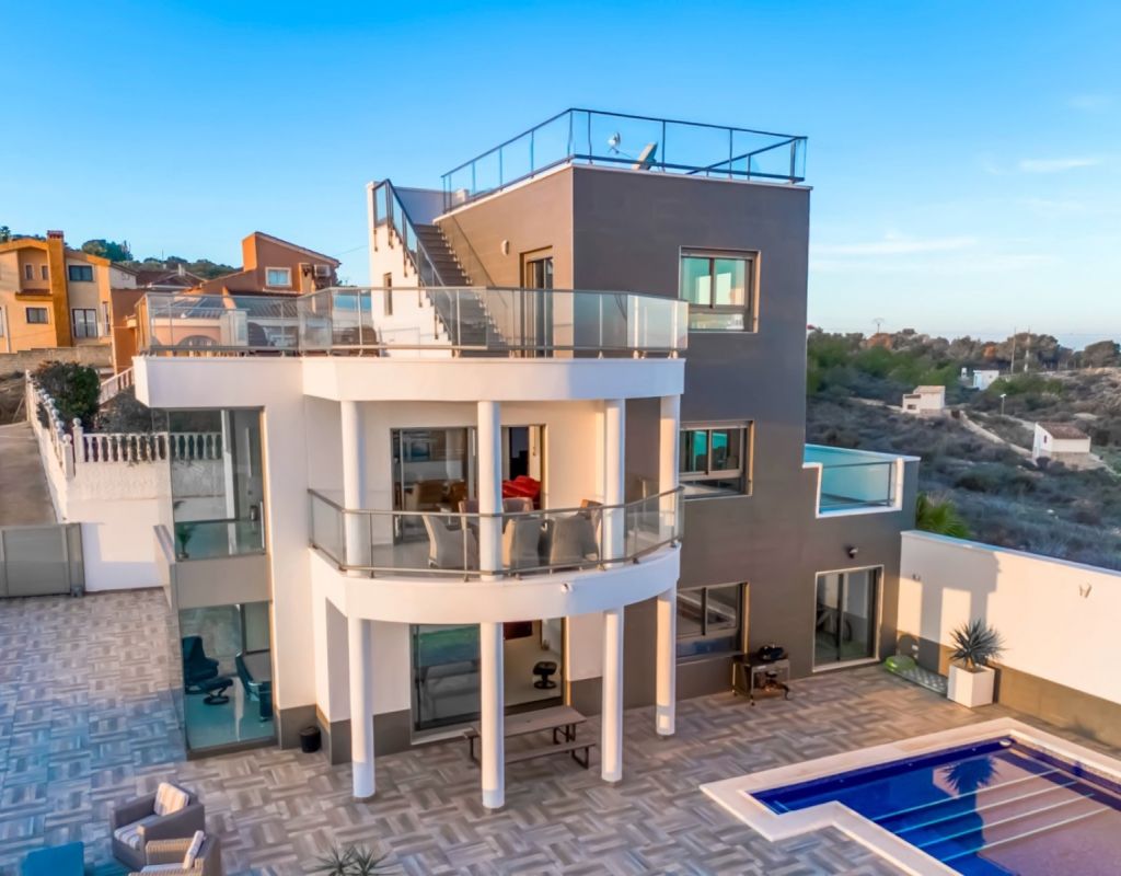 This exceptional bespoke villa, built in 2009, stands as a truly unique property, offering some of the best panoramic views in Ciudad Quesada. Ideally located near La Marquesa Golf Course, within walking distance to local amenities and Rojales, this villa combines luxury, space, and convenience in one breathtaking package. Property Overview Situated on a large plot, the villa boasts an impressive 321m² build size, featuring four spacious double bedrooms and three bathrooms. The secure entrance with an electric gate opens to a stunning architectural masterpiece designed to embrace the surrounding landscape. Key Features Private Pool & Entertainment Spaces – The villa includes a private swimming pool that seamlessly connects to a games room and laundry area, ensuring both relaxation and convenience.Ground Floor Bedrooms & Bathroom – Two well-proportioned bedrooms, one exceptionally large, are located on the ground floor, along with a modern bathroom.Elegant Black Marble Staircase – A sophisticated, well-designed black marble staircase leads to the second floor, adding a luxurious touch to the property.Open Plan Living & Kitchen Area – The second floor features a spacious, open-plan living and kitchen area, designed with floor-to-ceiling glass windows that maximize natural light and provide uninterrupted views. A balcony seating area extends the living space outdoors.Private Balcony Bedroom – Also on this level is a double bedroom with its own private balcony, accompanied by a contemporary bathroom.Top-Floor Master Suite – The top floor houses a large double bedroom with an en-suite bathroom, boasting glass patio doors that open onto yet another private terrace seating area.Solarium with Spectacular Views – The terrace leads to a solarium, offering the ultimate spot to enjoy breathtaking views of the golf course, mountains, and the surrounding area. Designed to Embrace the Views This villa has been expertly designed to take full advantage of its stunning surroundings, featuring large glass windows and multiple terrace seating areas to fully appreciate the Spanish climate and spectacular scenery. Premium Build Quality Constructed to high standards with modern architectural elements.Fully integrated air-conditioning throughout for year-round comfort.A seamless blend of luxury, practicality, and aesthetic appeal. Prime Location This villa's coveted location offers easy access to: La Marquesa Golf Course – A golfer's paradise just moments away.Local Amenities & Rojales – Shops, restaurants, and entertainment within walking distance.Beaches & Alicante Airport – A short drive to beautiful Costa Blanca beaches and Alicante International Airport. A Unique Opportunity This one-of-a-kind villa offers an unparalleled lifestyle with luxury, privacy, and stunning views. Whether as a primary residence, holiday home, or an investment, this property presents an exclusive opportunity in one of Ciudad Quesada's most sought-after areas. For more details or to arrange a private viewing, get in touch today.