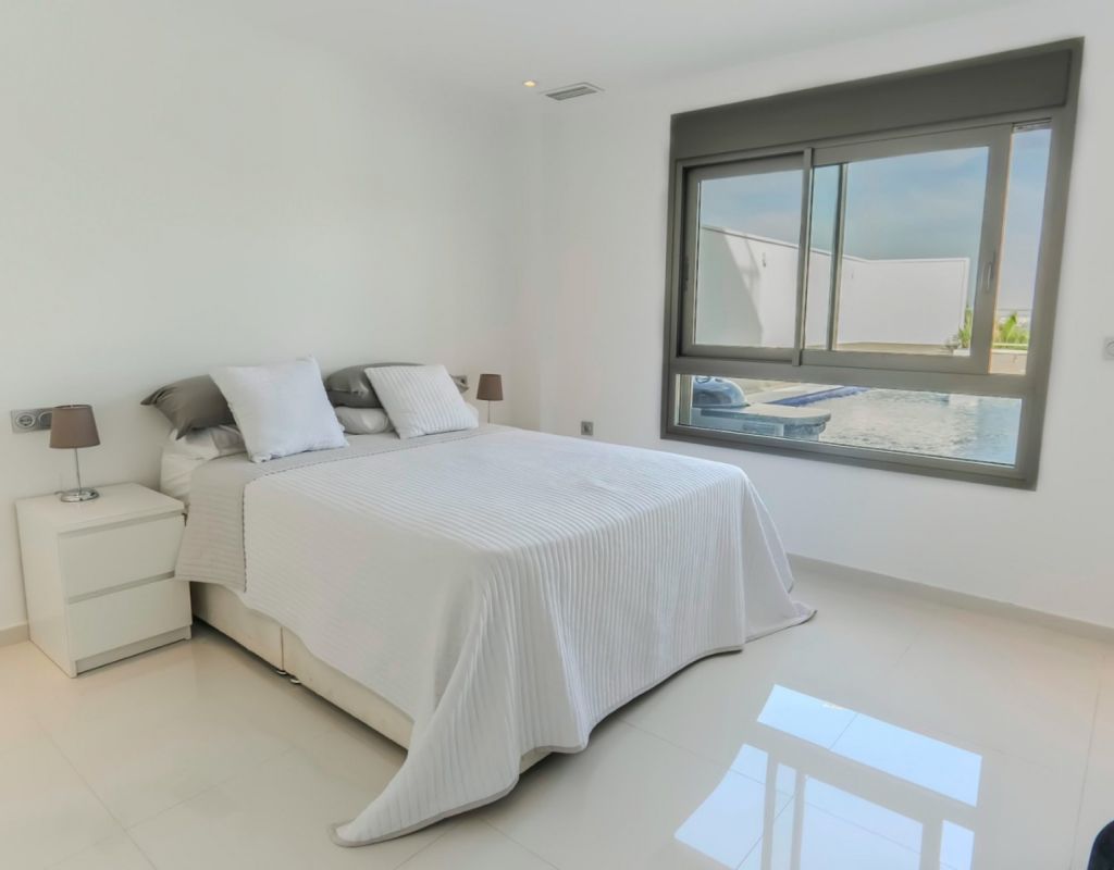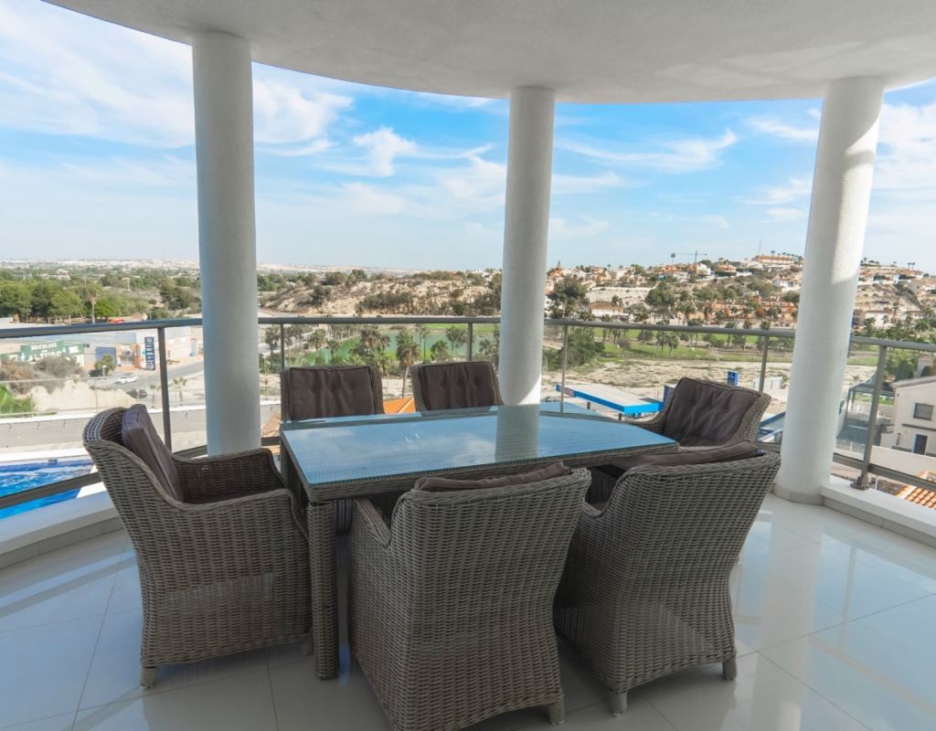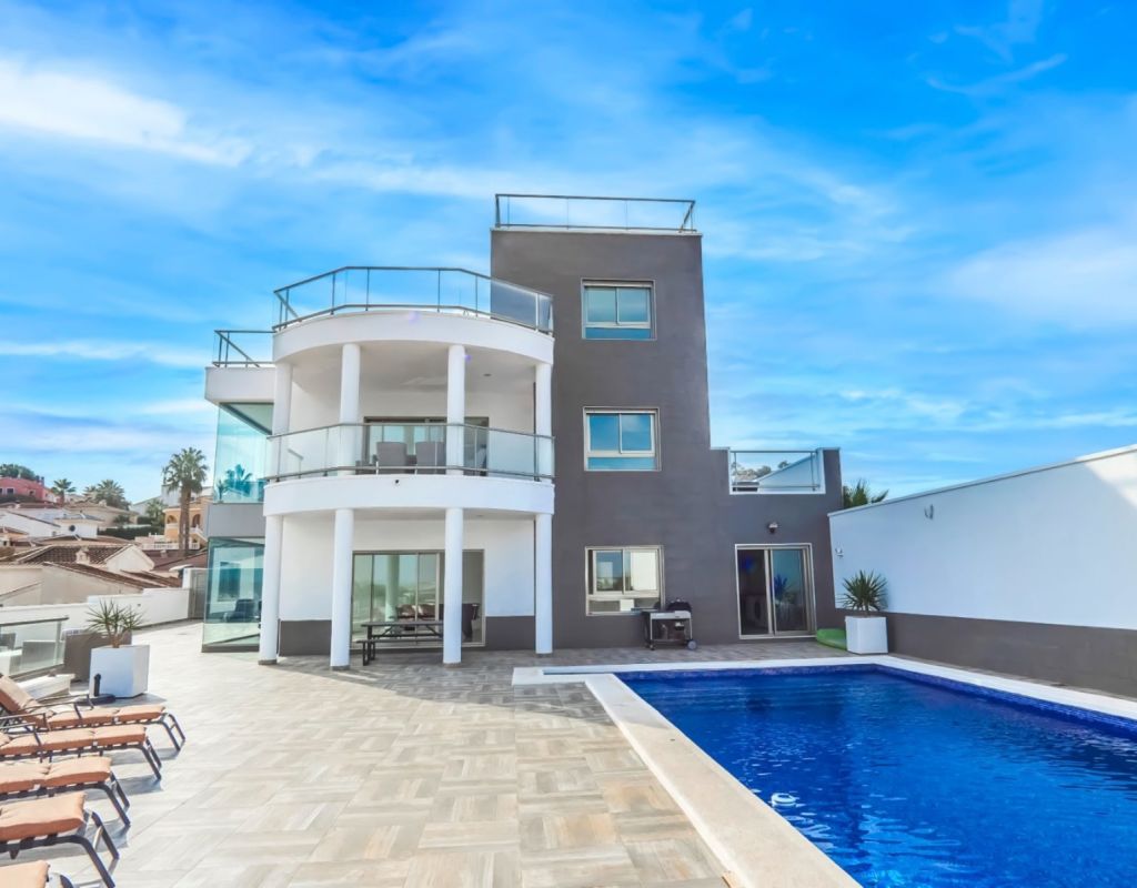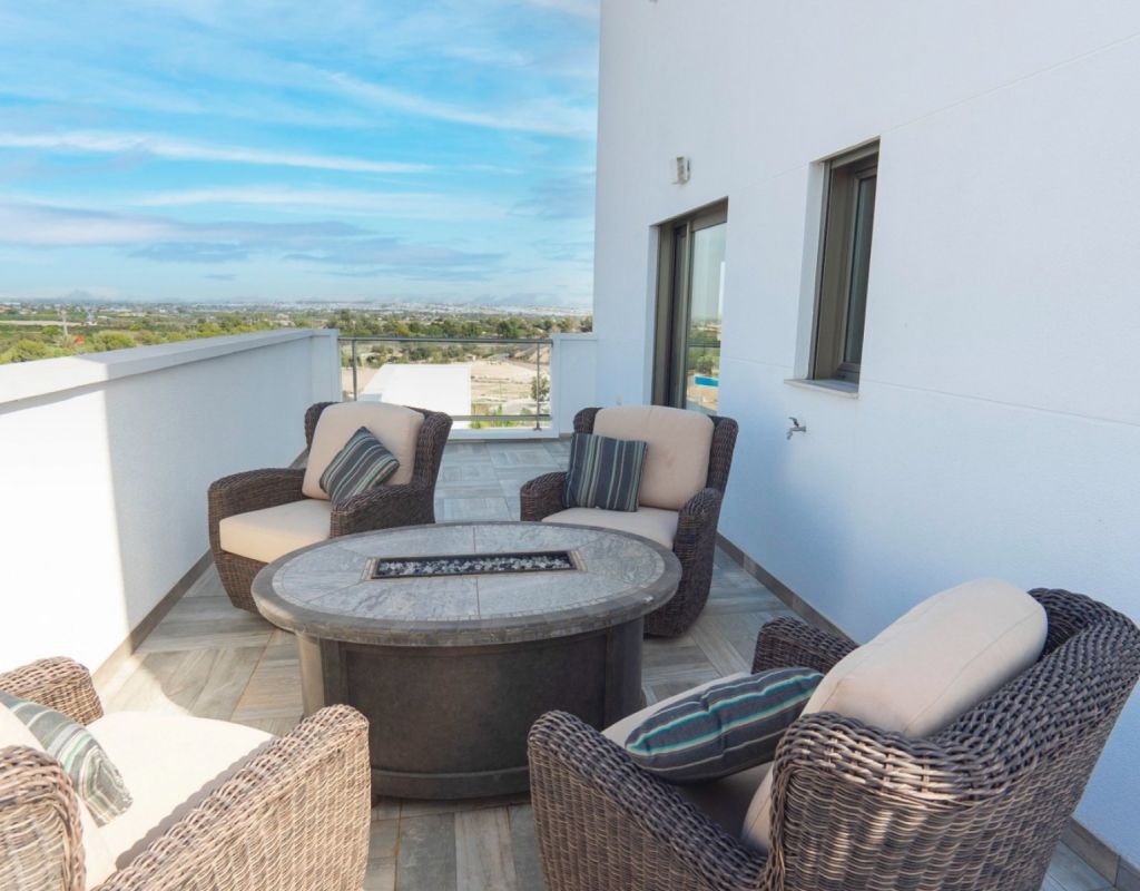 This exceptional bespoke villa, built in 2009, stands as a truly unique property, offering some of the best panoramic views in Ciudad Quesada. Ideally located near La Marquesa Golf Course, within walking distance to local amenities and Rojales, this villa combines luxury, space, and convenience in one breathtaking package. Property Overview Situated on a large plot, the villa boasts an impressive 321m² build size, featuring four spacious double bedrooms and three bathrooms. The secure entrance with an electric gate opens to a stunning architectural masterpiece designed to embrace the surrounding landscape. Key Features Private Pool & Entertainment Spaces – The villa includes a private swimming pool that seamlessly connects to a games room and laundry area, ensuring both relaxation and convenience.Ground Floor Bedrooms & Bathroom – Two well-proportioned bedrooms, one exceptionally large, are located on the ground floor, along with a modern bathroom.Elegant Black Marble Staircase – A sophisticated, well-designed black marble staircase leads to the second floor, adding a luxurious touch to the property.Open Plan Living & Kitchen Area – The second floor features a spacious, open-plan living and kitchen area, designed with floor-to-ceiling glass windows that maximize natural light and provide uninterrupted views. A balcony seating area extends the living space outdoors.Private Balcony Bedroom – Also on this level is a double bedroom with its own private balcony, accompanied by a contemporary bathroom.Top-Floor Master Suite – The top floor houses a large double bedroom with an en-suite bathroom, boasting glass patio doors that open onto yet another private terrace seating area.Solarium with Spectacular Views – The terrace leads to a solarium, offering the ultimate spot to enjoy breathtaking views of the golf course, mountains, and the surrounding area. Designed to Embrace the Views This villa has been expertly designed to take full advantage of its stunning surroundings, featuring large glass windows and multiple terrace seating areas to fully appreciate the Spanish climate and spectacular scenery. Premium Build Quality Constructed to high standards with modern architectural elements.Fully integrated air-conditioning throughout for year-round comfort.A seamless blend of luxury, practicality, and aesthetic appeal. Prime Location This villa's coveted location offers easy access to: La Marquesa Golf Course – A golfer's paradise just moments away.Local Amenities & Rojales – Shops, restaurants, and entertainment within walking distance.Beaches & Alicante Airport – A short drive to beautiful Costa Blanca beaches and Alicante International Airport. A Unique Opportunity This one-of-a-kind villa offers an unparalleled lifestyle with luxury, privacy, and stunning views. Whether as a primary residence, holiday home, or an investment, this property presents an exclusive opportunity in one of Ciudad Quesada's most sought-after areas. For more details or to arrange a private viewing, get in touch today.