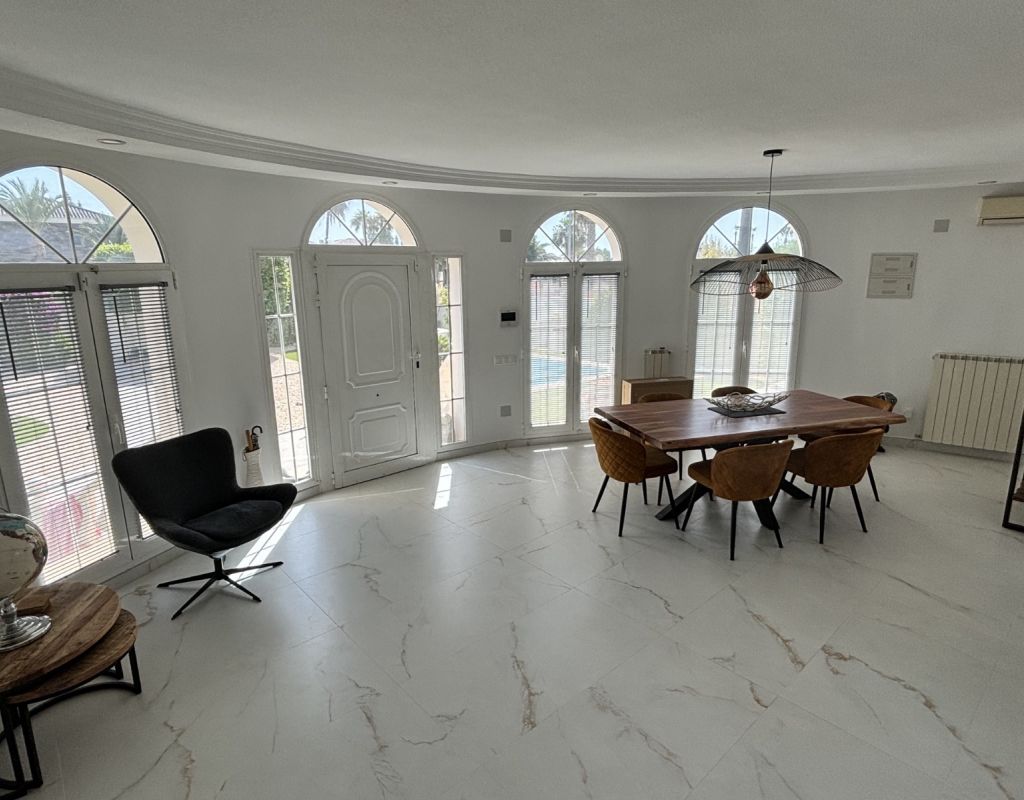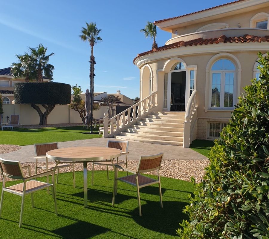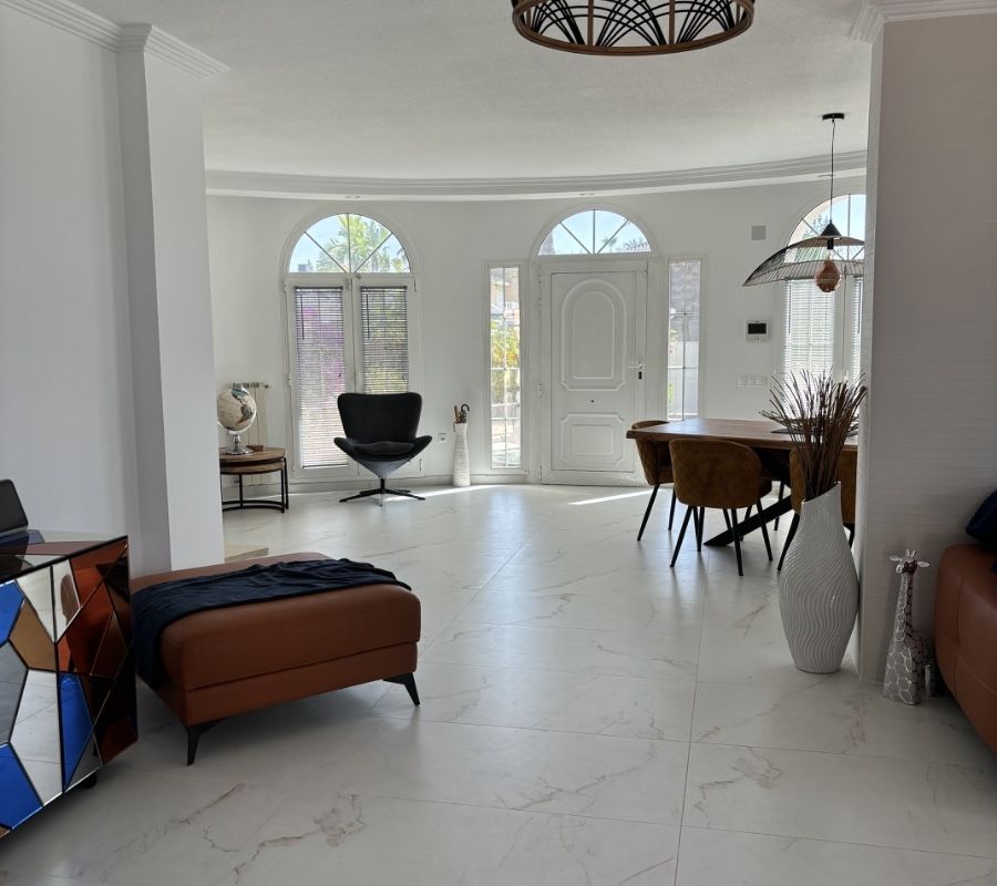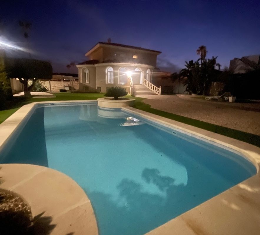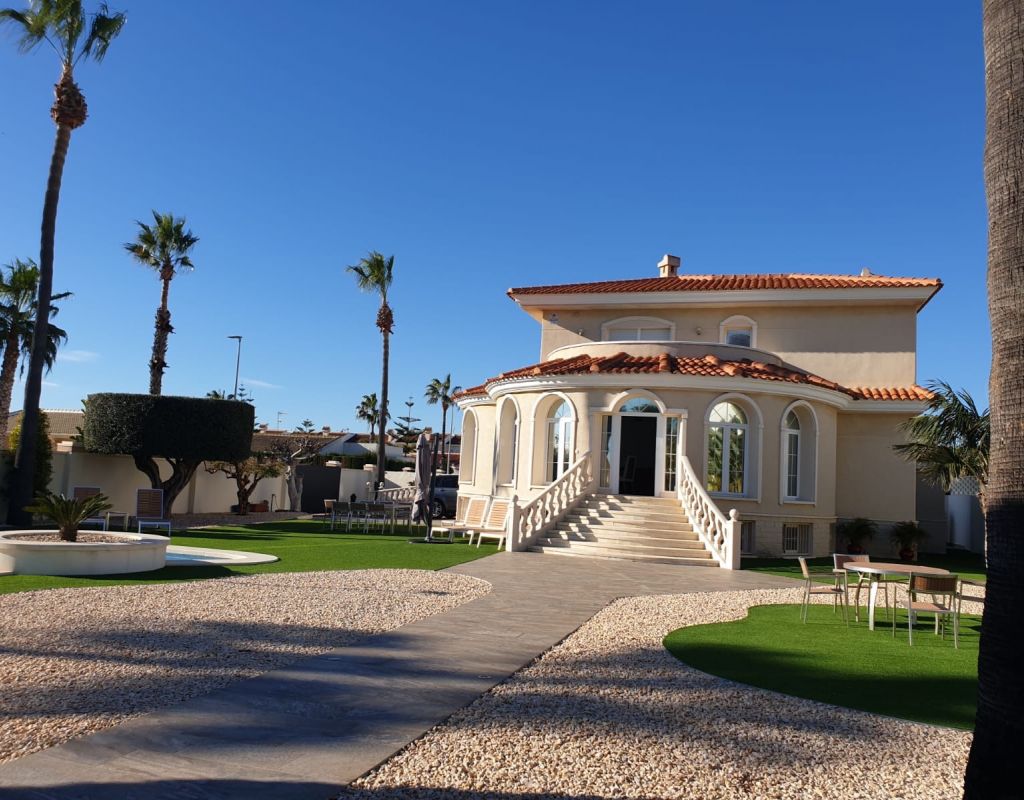 Amazing detached 6 bedroom, 5 bathroom villa with 12 x 5 private swimming pool in the highly sought-after area of Dona Pepa!! This breathtaking property is just moments from the prestigious 5-star La Laguna Spa Hotel, offering unparalleled luxury in a serene and private setting. As you step through the front gates, you'll be welcomed by manicured lawns, vibrant flower beds adorned with stunning Buddha sculptures, and a large, sparkling private pool. The spacious 1,200m² plot boasts various seating areas, perfect for relaxing or entertaining, while the surrounding high walls ensure complete privacy. Inside, the villa exudes elegance. A grand lounge and dining area, with full-length arched windows, bathes the room in natural light, offering a bright and airy atmosphere. The modern open-plan kitchen, with rear terrace access, is perfect for both everyday living and entertaining, while the independent utility room provides extra convenience. Two large double bedrooms with fitted wardrobes, a family bathroom, and a guest cloakroom complete the main floor. The 1st floor is home to an impressive master bedroom with en-suite bathroom and patio doors leading to a sweeping terrace with picturesque views of the garden and beyond, plus two more double bedrooms and a family bathroom. Descend the marble staircase to find a stunning, self-contained separate living area featuring a fully integrated modern kitchen with LED lighting, a large storage room, a large double bedroom, and a private en-suite bathroom. This villa is designed for luxurious living, with ample storage, air conditioning throughout, and a separate utility area. It's located within walking distance of popular restaurants and just minutes from supermarkets, amenities, and beautiful beaches. Sold partially furnished, this exceptional home is the perfect blend of privacy, luxury, and convenience in one of the region's most desirable locations. Contact us today to schedule your private tour of this exquisite property!
