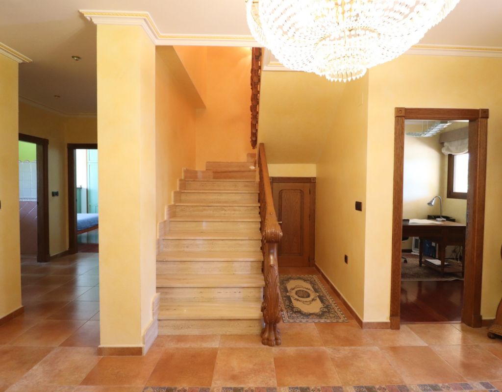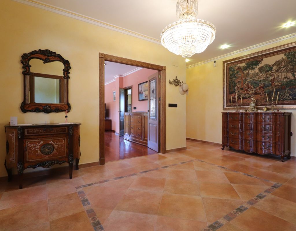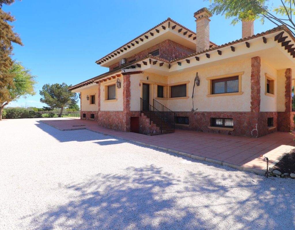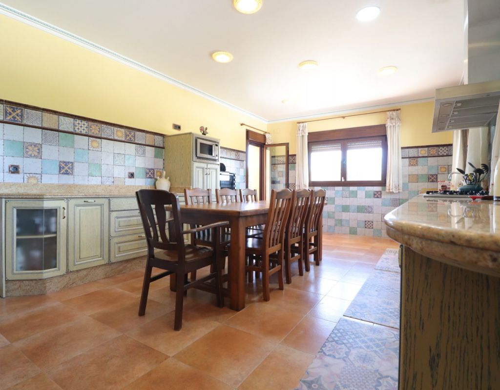 This Imposing, South Facing, Six Bedroom, Detached Villa in Callosa de Segura is located in a tranquil and picturesque setting, just a 5-minute drive from La Murada, with the towns of Cox and Callosa de Segura reachable within 10 minutes. The stunning coastline of the Costa Blanca South is approximately 30 minutes away, making this an ideal retreat that blends privacy with accessibility. Set on an expansive 12,831m² established plot, this remarkable 514m² villa is spread across three levels and boasts direct panoramic views over the surrounding citrus groves, mountains, and countryside. The impressive covered entrance terrace leads into a grand hallway with double-opening doors to a spacious living room, featuring a stunning fireplace, pre-installation for air conditioning and radiator. Three sets of double doors provide access to the outside, allowing for an abundance of natural light. The separate family-fitted kitchen offers ample space, while the adjoining utility room has direct outdoor access. The ground floor also includes four double bedrooms, all with built-in wardrobes, plus a single bedroom/office. The master suite benefits from a walk-in wardrobe and an en-suite shower room, while three additional shower rooms, one being en suite, provide convenience for family and guests. On the first floor, a second living area with air conditioning leads out to a partly covered terrace, perfect for enjoying the breathtaking views. This level also includes a double bedroom and a family bathroom. The under-build, accessible both internally and externally, features a garage, a pool room, storage, and two additional rooms, offering incredible versatility. Outside, the beautifully landscaped grounds include a recently refurbished (2024) 12 x 6 saltwater pool with an outdoor shower, a BBQ area, and an abundance of mature trees, including fig, orange, and pomegranate, as well as palm trees. A 180,000-litre irrigation system ensures the lush surroundings remain vibrant, while a water softener system and full insulation add to the villa’s practicality and comfort. This extraordinary property is a rare opportunity to own a luxurious countryside escape in the heart of the Costa Blanca South!