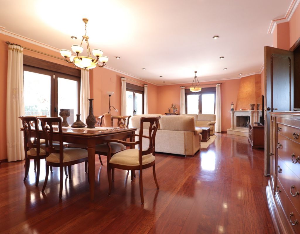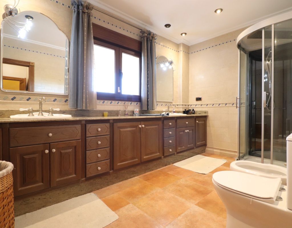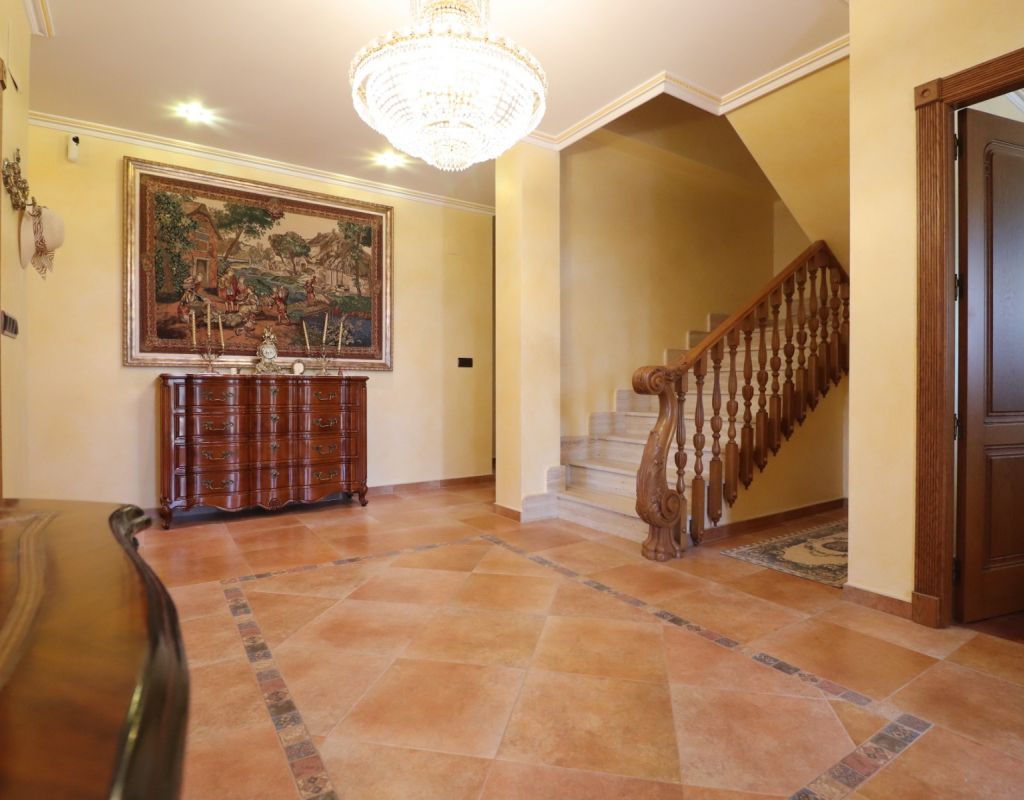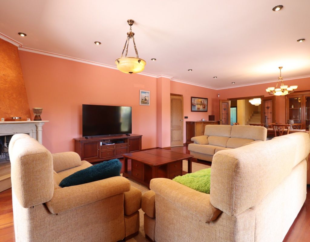 This Imposing, South Facing, Six Bedroom, Detached Villa in Callosa de Segura is located in a tranquil and picturesque setting, just a 5-minute drive from La Murada, with the towns of Cox and Callosa de Segura reachable within 10 minutes. The stunning coastline of the Costa Blanca South is approximately 30 minutes away, making this an ideal retreat that blends privacy with accessibility. Set on an expansive 12,831m² established plot, this remarkable 514m² villa is spread across three levels and boasts direct panoramic views over the surrounding citrus groves, mountains, and countryside. The impressive covered entrance terrace leads into a grand hallway with double-opening doors to a spacious living room, featuring a stunning fireplace, pre-installation for air conditioning and radiator. Three sets of double doors provide access to the outside, allowing for an abundance of natural light. The separate family-fitted kitchen offers ample space, while the adjoining utility room has direct outdoor access. The ground floor also includes four double bedrooms, all with built-in wardrobes, plus a single bedroom/office. The master suite benefits from a walk-in wardrobe and an en-suite shower room, while three additional shower rooms, one being en suite, provide convenience for family and guests. On the first floor, a second living area with air conditioning leads out to a partly covered terrace, perfect for enjoying the breathtaking views. This level also includes a double bedroom and a family bathroom. The under-build, accessible both internally and externally, features a garage, a pool room, storage, and two additional rooms, offering incredible versatility. Outside, the beautifully landscaped grounds include a recently refurbished (2024) 12 x 6 saltwater pool with an outdoor shower, a BBQ area, and an abundance of mature trees, including fig, orange, and pomegranate, as well as palm trees. A 180,000-litre irrigation system ensures the lush surroundings remain vibrant, while a water softener system and full insulation add to the villa’s practicality and comfort. This extraordinary property is a rare opportunity to own a luxurious countryside escape in the heart of the Costa Blanca South!