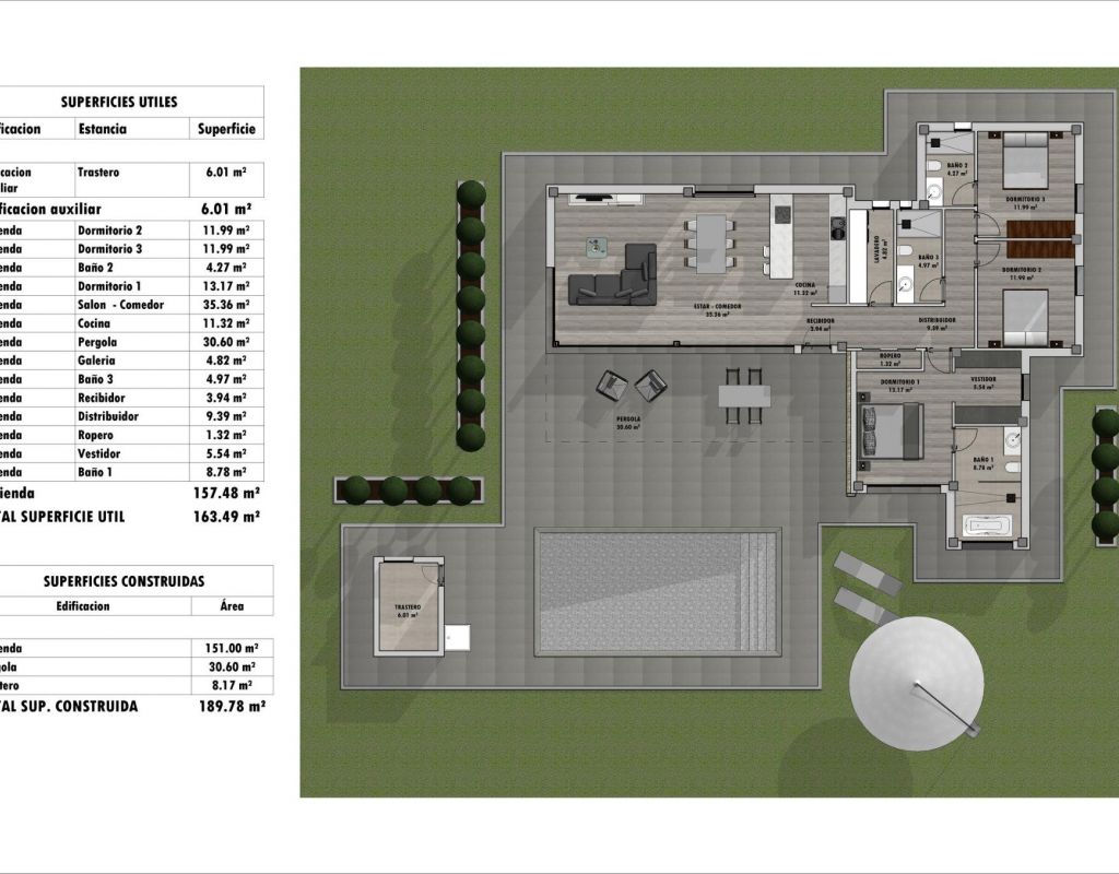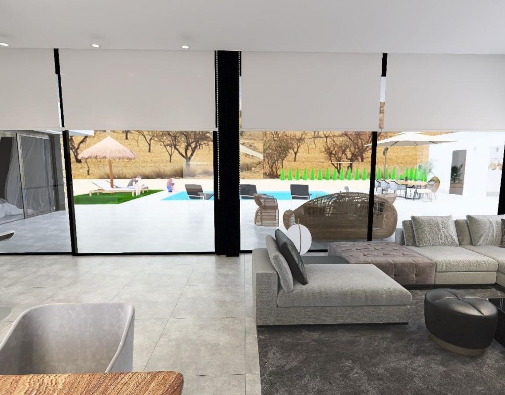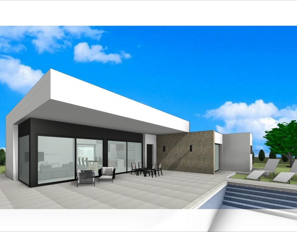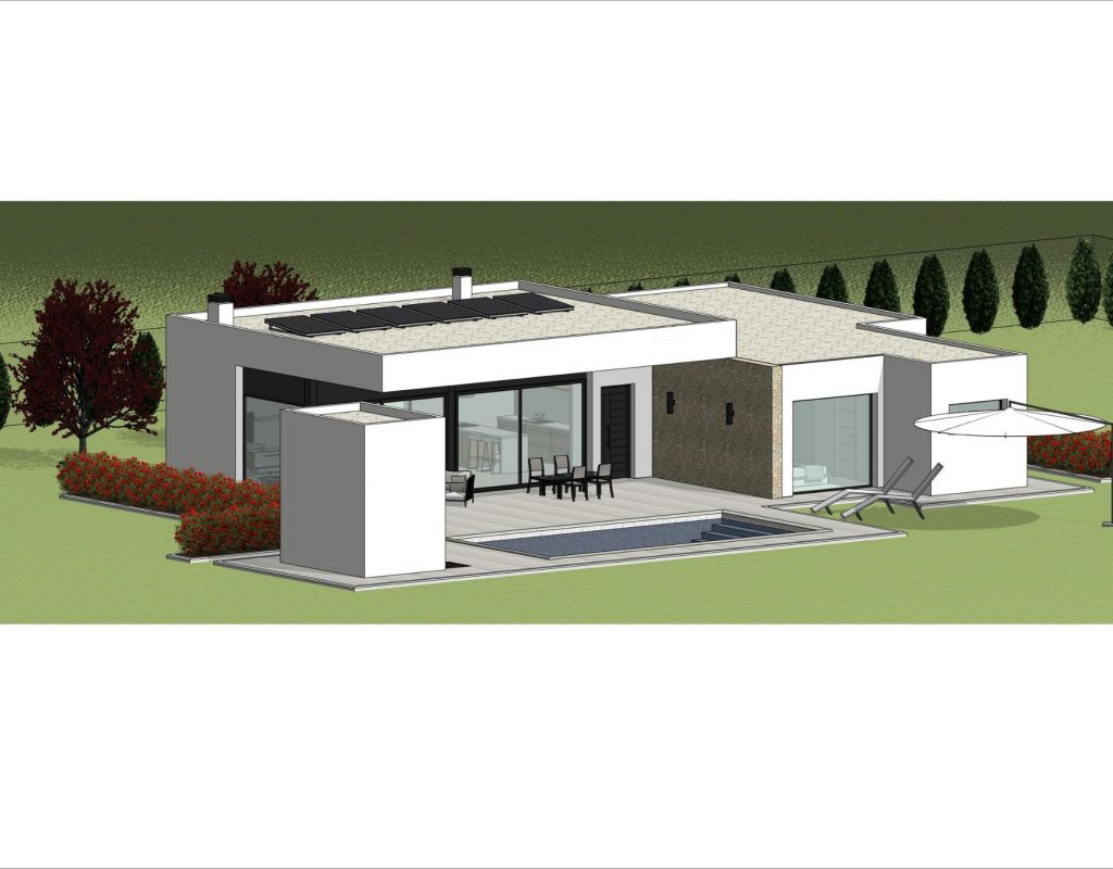 Newly built villas located in the municipality of Aspe. Newly built villas with several models to choose from, with 2, 3 or 4 bedrooms, on one or two floors and built with slabs or with a structure: depending on the model and the plot chosen, the exact price will be calculated. All the villas are built on rustic plots of over 10,000 m2, of which around 2,500 m2 will be fenced off. The villas have an open-plan kitchen with living room, built-in wardrobes, private swimming pool, porch, storage room and outdoor parking space. There are several plots to choose from. The price is based on a plot priced at €75,000 (if another plot is chosen, the difference will be paid or credited according to the price of the plot). Self-build project, delivery in approximately 12 months from the granting of the licence. If you are looking for a quiet environment, close to typical Spanish villages away from tourist crowds, surrounded by mountains, with a very large plot and about 30 minutes from the sea, this is your home. Aspe is a typical Spanish village with all the amenities for everyday life, surrounded by mountains and with several natural areas nearby where you can go hiking or mountain biking. Located 25 km from the beach, 9 km from Elche and about 20 km from Alicante airport.