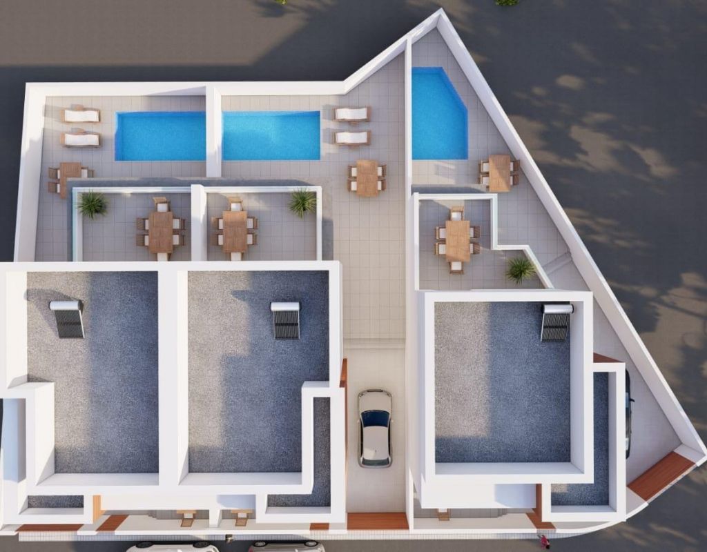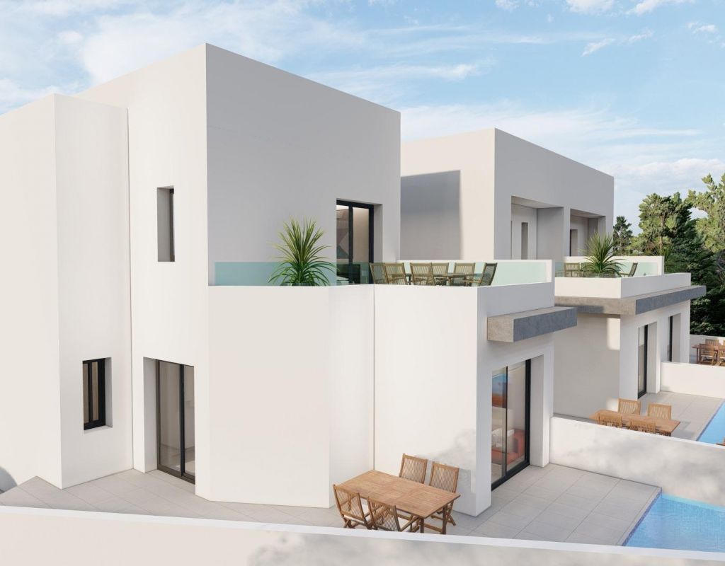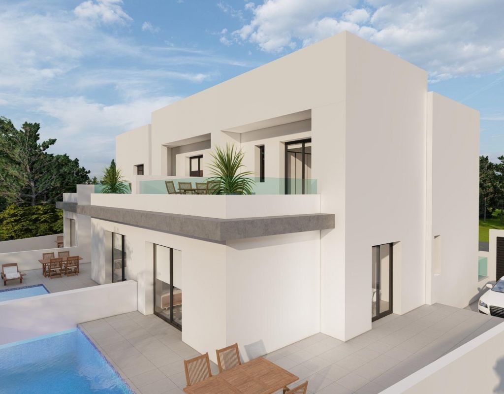 New Build Villas with Private Pool in Daya Nueva, Costa Blanca Modern Semi-Detached and Detached Villas with Excellent Design Discover this exclusive development of three newly built villas, both semi-detached and detached, located in the charming village of Daya Nueva, in the southern part of Alicante province. These stylish properties are designed with comfort, light, and privacy in mind, offering an exceptional living experience just minutes from the beaches of La Marina and Guardamar del Segura. Each villa features a bright and spacious living-dining area, an open-plan kitchen with a breakfast bar, three bedrooms, three full bathrooms, and a guest toilet. Enjoy the Mediterranean climate on the two upper terraces, relax by your private swimming pool, or park conveniently on your own plot. Comfort and Quality in Every Detail These homes have been designed to maximize natural light and outdoor living. Key features include: Private swimming pool and on-plot parking Two uncovered terraces on the upper floor Optional rooftop solarium for additional outdoor space (at extra cost) Fully furnished bathrooms with shower screens Ducted air conditioning Pre-installation Automated aluminium shutters in bedrooms, kitchen, and bathrooms The open-concept ground floor blends the kitchen, dining, and lounge areas into a cohesive and bright living space that opens directly to the terrace and pool area € perfect for relaxing or entertaining. Prime Location Close to All Amenities Situated in a peaceful residential area of Daya Nueva, these villas are only a 3-minute walk from the village centre, where you€ll find shops, restaurants, and essential services. This quiet environment offers an ideal mix of village charm and coastal convenience. Distances to Key Points of Interest: Beaches of Guardamar del Segura and La Marina: 12 km (10 minutes) La Marquesa Golf (Ciudad Quesada): 9 km (10 minutes) Habaneras Shopping Centre (Torrevieja): 20 km (20 minutes) Alicante International Airport: 38 km (25 minutes) Vega Baja Hospital: 14 km (15 minutes) Your Ideal Costa Blanca Home Awaits These villas are perfect as a permanent residence, holiday retreat, or investment. With modern architecture, thoughtful design, and a peaceful yet well-connected location, this is a unique opportunity to own a quality home on the Costa Blanca. Contact us today for more information and to schedule your visit.