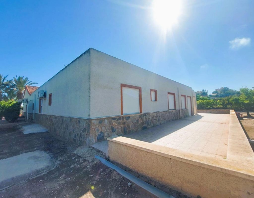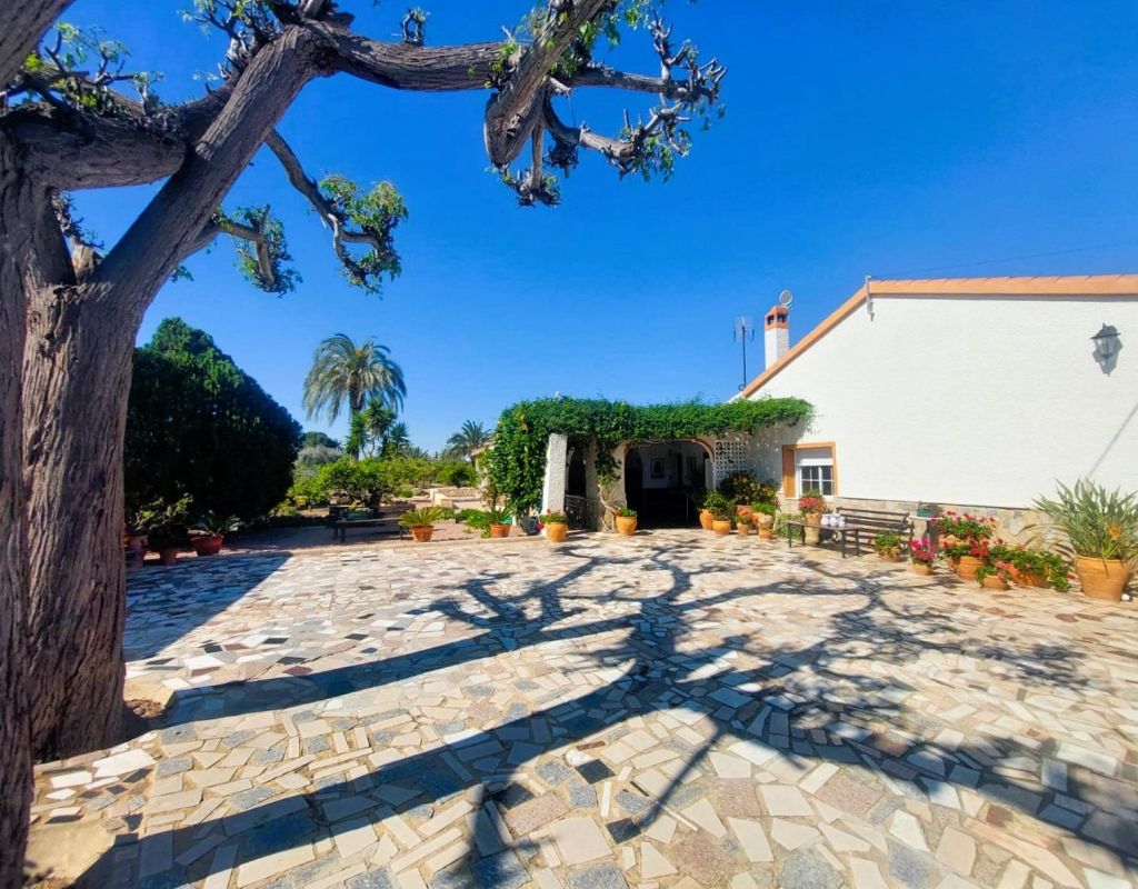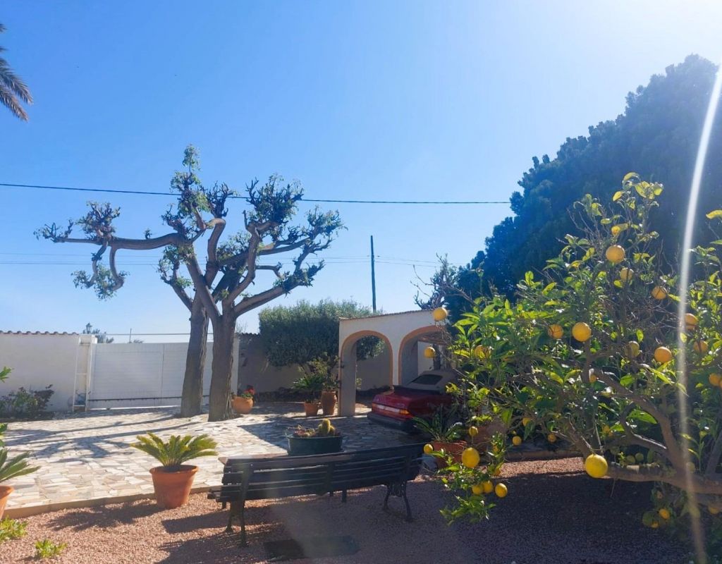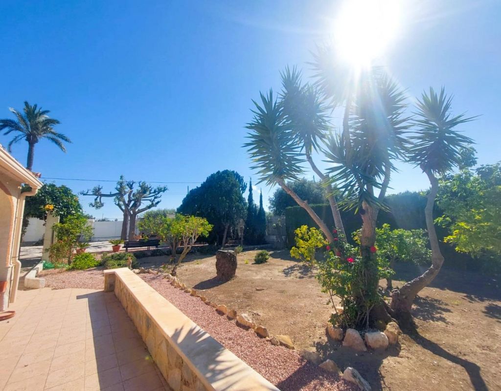 Discover this jewel of traditional Spanish style, a single-storey villa located in a privileged and very quiet area, just 400 metres from the sea. A unique opportunity to acquire a charming property, surrounded by nature and with multiple possibilities. The villa is located on a plot of more than 3.000 m2, full of palm trees and fruit trees that create a private, natural and very special environment. It has 5 large bedrooms, 2 complete bathrooms and 1 toilet, a very spacious independent kitchen, as well as a bright and spacious living-dining room ideal for family gatherings or moments of relaxation. One of its great attractions is the beautiful covered terrace, perfect for enjoying the Mediterranean climate all year round. Equipped with barbecue and grill, it becomes the ideal place to share unforgettable meals and dinners outdoors. In addition, the property has an unfinished outbuilding, which offers the possibility of adding up to 4 additional bedrooms and 4 bathrooms, which opens up a range of opportunities for both residential use and tourist exploitation or investment: perfect to be transformed into a charming rural hotel. It has covered parking space for two vehicles and the possibility of extending it. Located in a protected area where building is not allowed, this house guarantees privacy, exclusivity and a unique connection with nature without renouncing to the proximity of the beach. Ideal as a permanent residence, second home or tourist project, this property has all the ingredients to become a safe and valuable investment. Take advantage of this unique opportunity and request a visit to this paradise.