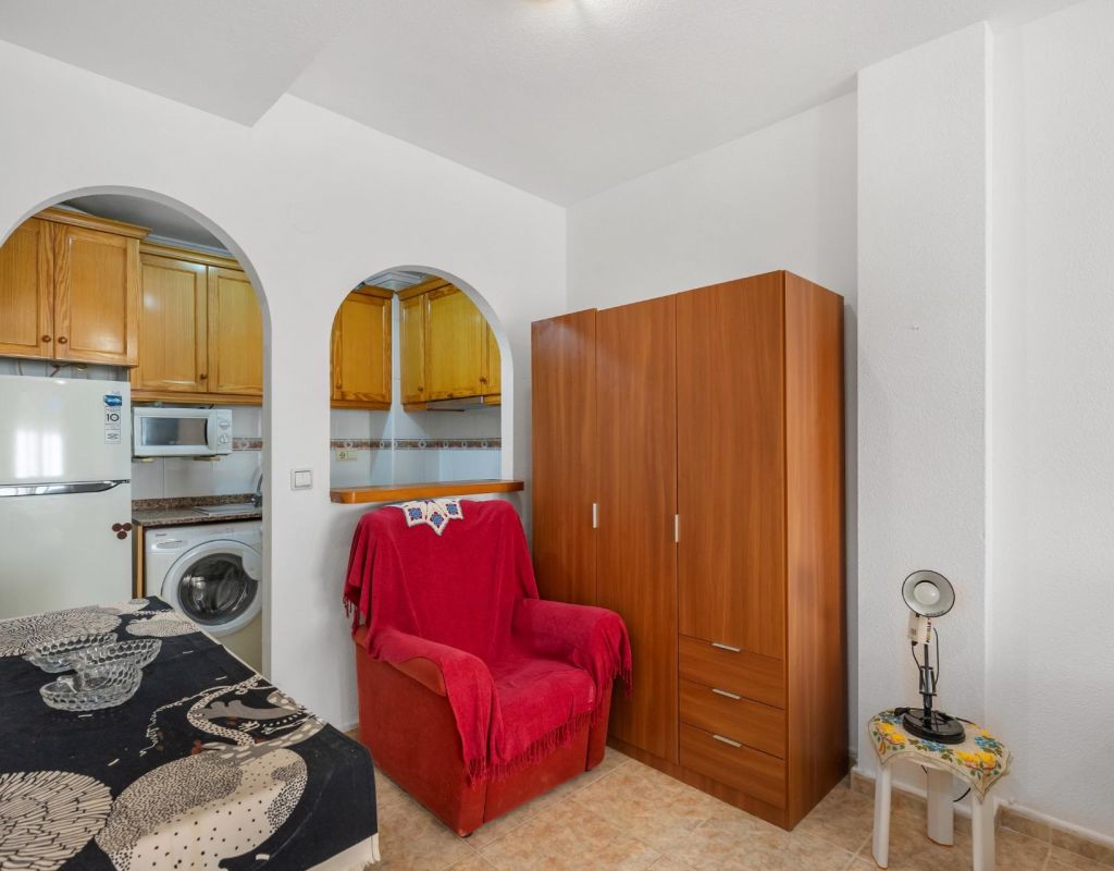 Studio with terrace 300 m from Playa del Cura, lift and excellent location~Opportunity next to Playa del Cura! 32 m² studio in one of the most sought-after areas of Torrevieja, just 300 metres from the sea and close to the bus station. It has a spacious separate kitchen, terrace, freshly painted, and new bathroom unit. East-facing to enjoy the morning sun. Building in excellent condition with lift. Surrounded by all kinds of services: supermarkets, restaurants, pharmacies… Ideal as an investment or for year-round living.