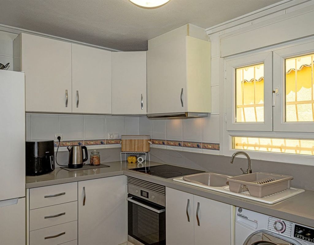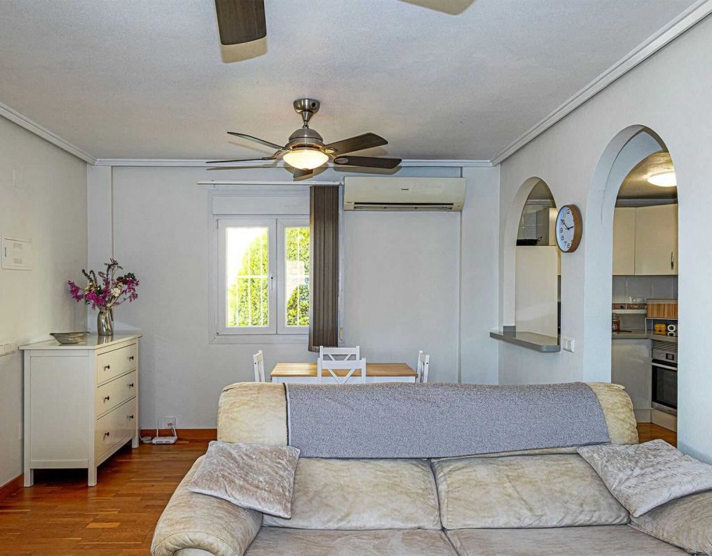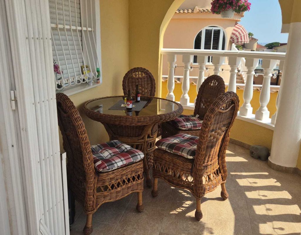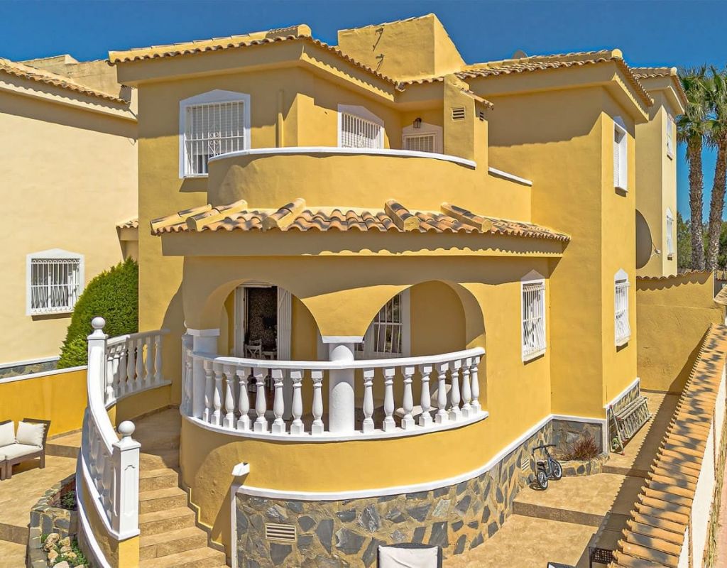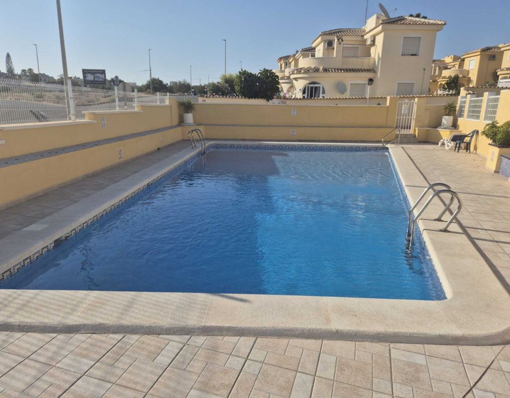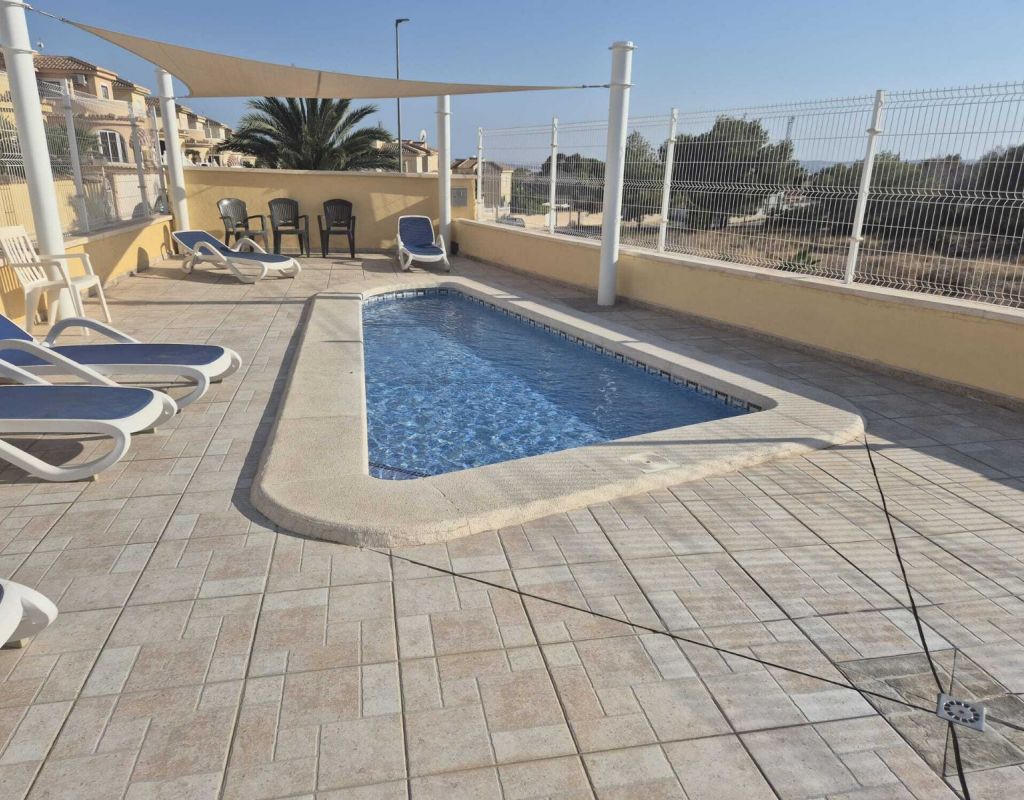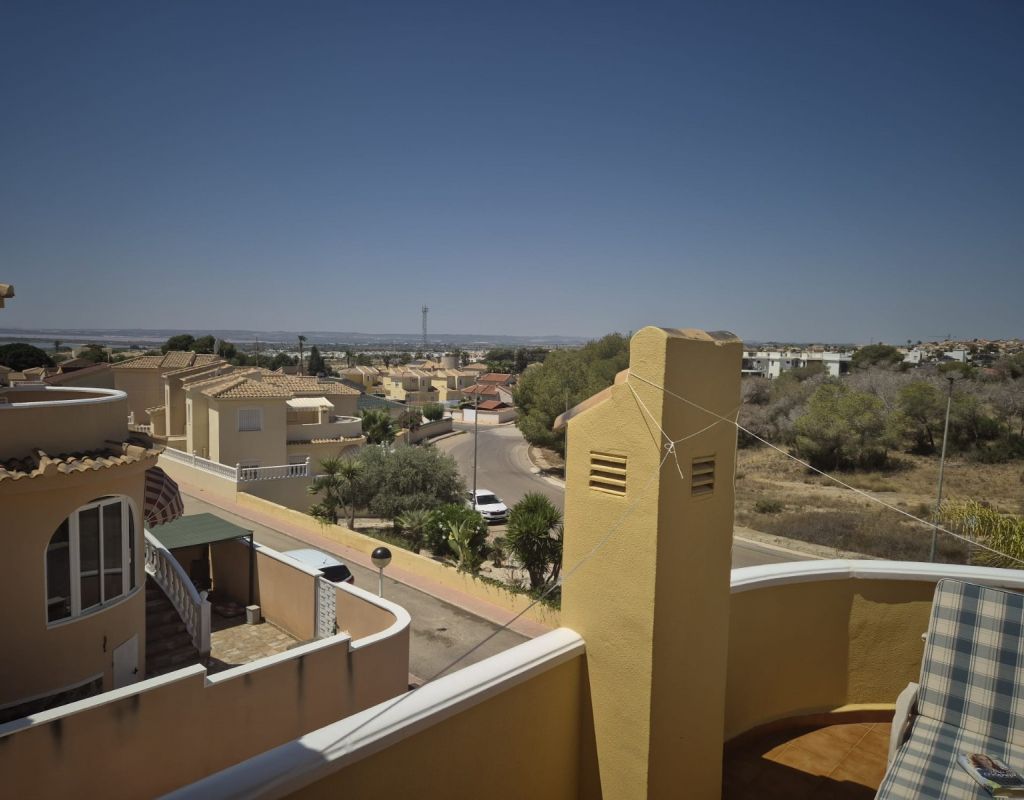 This three bed detached villa is located in the quiet residential area of Lo Pepin on the outskirts of Ciudad Quesada. Positioned on a corner plot, the property is close to the communal pools and offers a quiet retreat close to local amenities, the salt lakes, Ciudad Quesada and Torrevieja. Step inside and there are low maintenance gardens to all sides with steps up to the covered terrace. Here there is ample room for a table and chairs offering nature views. Internally you have oak flooring on the ground floor along with a bright living and dining area. The American style kitchen has a range of wall and base units, built in oven/hob and extractor along with a freestanding fridge freezer and washing machine. An internal hallway takes you to the guest cloakroom along with a bedroom with built in storage/wardrobes. Up the stairs to the first floor and there are two double bedrooms, both with built in wardrobes along with a full family bathroom. Door to the terrace which is a lovely space to sunbathe, or sit and take in the views and sunsets. The property is being sold as seen and has air conditioning along with double glazed windows to the ground floor. A lovely family home or lock up and leave holiday home requiring no work! Just bring your cases and enjoy living in this lovely neighbourhood! The location offers easy access to the AP7 motorway giving access to the cities of Elche and Alicante along with the airport in around 35-40 minutes. The nearest beaches are at El Moncayo/Guardamar in around 10 minutes/ SUMA/IBI: 150€ annually Communal fees: 82€ every three months