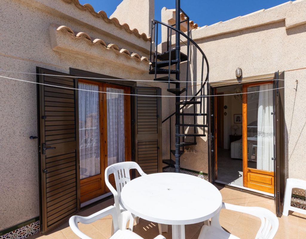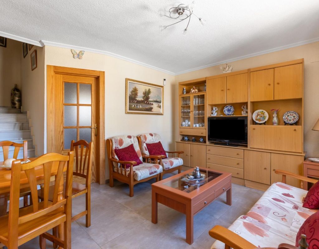 Discover this charming family villa located in the Torreblanca area of Torrevieja. With a constructed area of 80 m2 and a usable area of 78 m2, this property is ready to move into. The home features three spacious double bedrooms that offer comfort and privacy, ideal for families. It also has a full bathroom and an additional toilet. Its southeast orientation ensures light throughout the day.~~The plot has a total area of 40 m2 where you can enjoy the outdoors thanks to its private terrace surrounded by mature trees that provide natural shade.~~Notable extras include a refreshing pool, perfect for those warm summer days, as well as a security door to ensure your security. Strategically located near the sea (just 900 meters), you will have easy access to both beaches and various local amenities; nearby buses facilitate transportation, while shopping centers, schools, and medical facilities are available within the immediate area.~~You can also take advantage of the children's play areas, ideal for children, whether playing or exploring outdoors without worry, as the property is fenced, offering greater peace of mind.