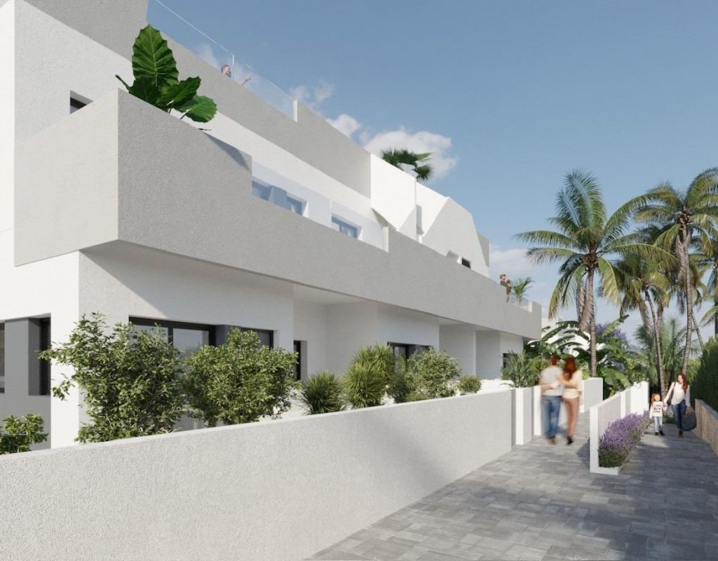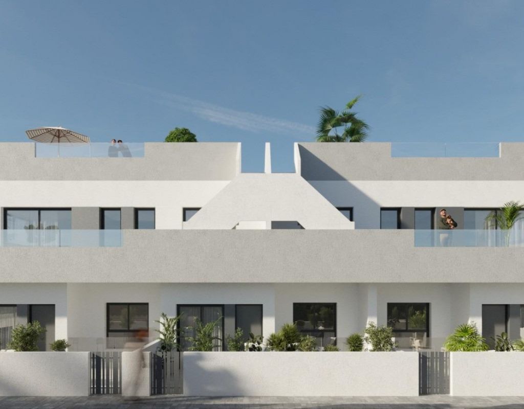 New Build Residential Complex in Los Balcones, Torrevieja Modern Homes in a Privileged Location This exclusive new development in Los Balcones, Torrevieja consists of 20 modern bungalows, perfectly designed for comfort and style. Located just 4 km from the beaches of Torrevieja and close to shops, restaurants, and essential services, this project offers an ideal setting for both permanent living and holiday getaways on the Costa Blanca. Los Balcones is one of the most sought-after residential areas of Torrevieja, offering a peaceful atmosphere while being only a short drive from the vibrant city center. The area features supermarkets, local amenities, and the public hospital, with regular bus connections into town. Property Layouts to Suit Your Lifestyle Ground-floor bungalows: 3 bedrooms and 3 bathrooms, including a master bedroom with ensuite on the main floor, open-plan living room with kitchen, guest toilet, and spacious terrace. A staircase leads to the lower ground level with 2 additional bedrooms, 2 bathrooms, laundry room, and patio. Top-floor bungalows: 2 bedrooms, 2 bathrooms, open-plan kitchen with large living area, terrace, and private solarium, perfect for enjoying the Mediterranean sun. All homes include private parking spaces. High-Quality Finishes and Comfort Features Every bungalow has been designed with top specifications to guarantee maximum comfort: Armored front door and motorized aluminum shutters Double-glazed windows with solar control Fully installed ducted air conditioning Aerothermal hot water system Fitted kitchen with appliances LED lighting inside and outside Bathrooms with furniture, mirrors, and shower screens Alarm system with detectors and central unit Exclusive Community Amenities The residential complex features beautiful landscaped gardens, a two-level communal pool, and a fully equipped gym, creating the perfect environment to relax and socialize. Excellent Connectivity on the Costa Blanca The development enjoys outstanding transport links: Beaches: 4 km Alicante Airport: 55 km (40 minutes) Murcia Airport: 65 km (1 hour) Villamartín Golf Course: 9 km Torrevieja Marina: 5 km Your New Home in Torrevieja Awaits With its modern design, high-quality finishes, and privileged location, this residential complex in Los Balcones is the perfect choice for a new life by the Mediterranean. Contact us today to arrange a visit and secure your dream property in Torrevieja.