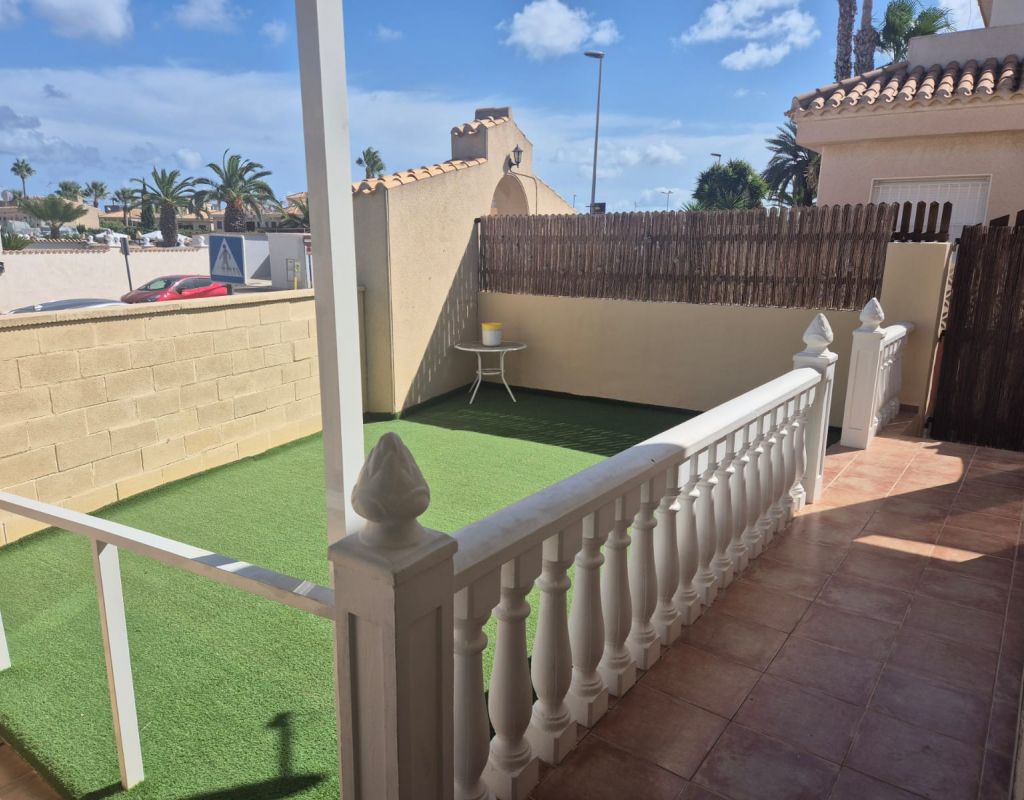 Discover this charming and functional semi-detached duplex villa, located in a private, gated residential complex that combines security, comfort and the unbeatable Mediterranean lifestyle. Its location is simply exceptional, just a five-minute walk from the Zenia Boulevard Shopping Centre and only one kilometre from the Blue Flag beaches of Orihuela Costa. It is a unique opportunity with ideal orientation and is ready to enjoy. The property has three bedrooms with large fitted wardrobes and two bathrooms. The main floor has been designed for everyday comfort. It offers a bright living-dining room connected to a fully equipped separate kitchen. It includes a bedroom and a bathroom, ideal for guests or as an accessible master bedroom. Enjoy a private garden perfect for summer and a bright, glazed gazebo, a versatile space ideal for use as an additional living room or winter dining room. The upper floor offers the sleeping area with two spacious bedrooms and a full bathroom with shower. Access to a private balcony allows you to enjoy the sea breeze and unobstructed views. The complex offers its residents unbeatable amenities. It has a large communal swimming pool surrounded by green areas and communal parking within the enclosed perimeter. Its excellent south-east orientation guarantees optimal light and a pleasant climate all year round. The house is delivered fully furnished and has a comprehensive hot and cold air conditioning system throughout. Playa Flamenca is the residential area par excellence of Orihuela Costa. It is famous for its unbeatable quality of life and exceptional location. It boasts the award-winning beaches of Cala Mosca and Cala las Estacas, both of which have been awarded Blue Flag status and are connected by a wide and attractive promenade. It is the commercial and leisure hub of the area, with the Zenia Boulevard Shopping Centre, one of the largest in the province, being a particular highlight. It also has a municipal sports centre, supermarkets, medical centres and a popular weekly market. The area is distinguished by its cosmopolitan and multicultural atmosphere, with a wide range of international cuisine. It is a paradise for golfers due to its proximity to the prestigious courses of Villamartín, Las Ramblas and Campoamor. It has quick access to the N-332 and AP-7 motorways and is strategically located near the airports. Living in Playa Flamenca means combining the tranquillity of the beach with the convenience of having all the amenities of a town just a few metres away.