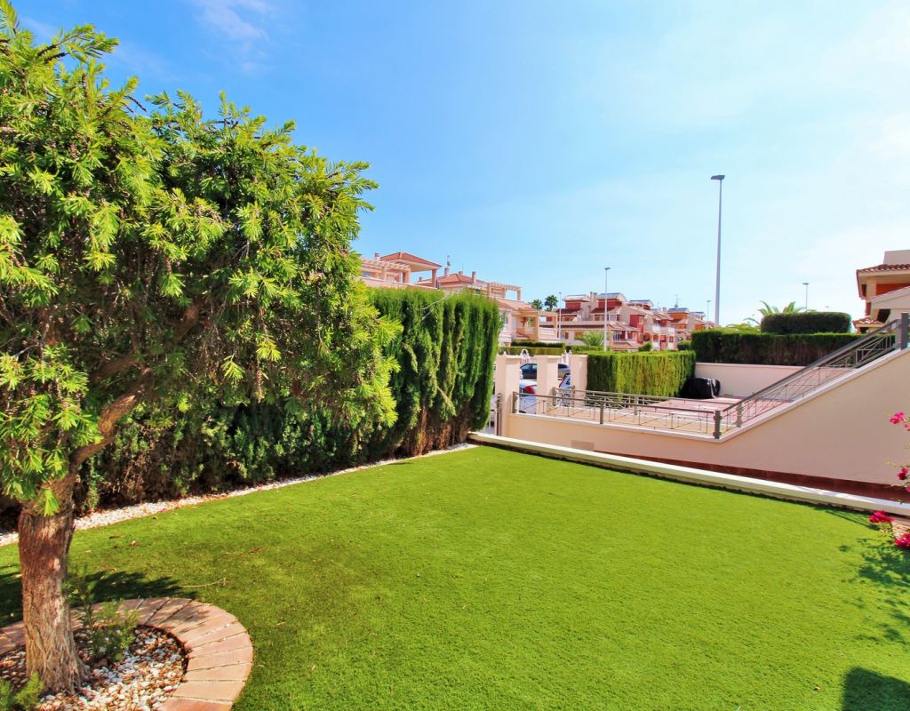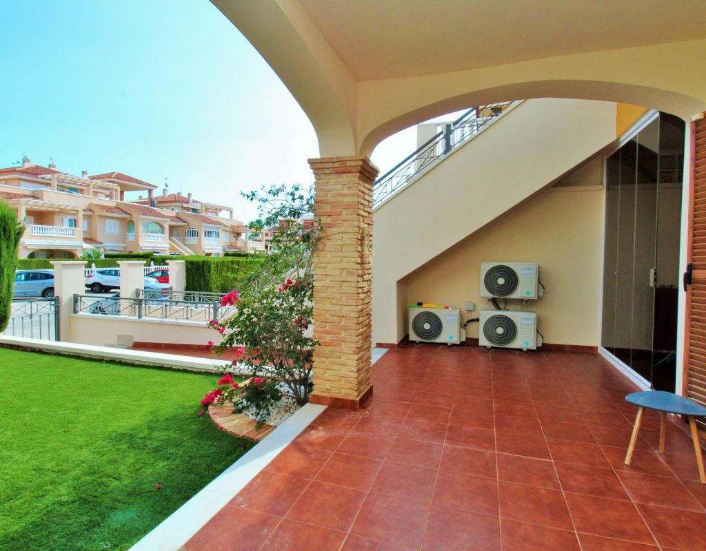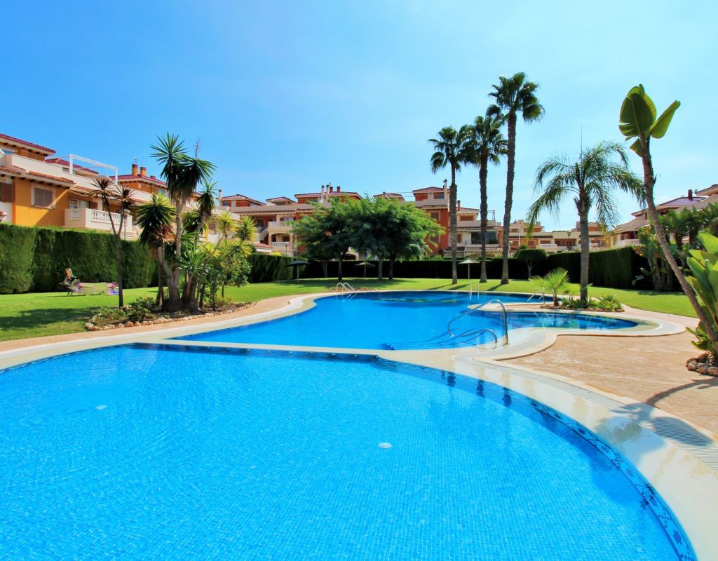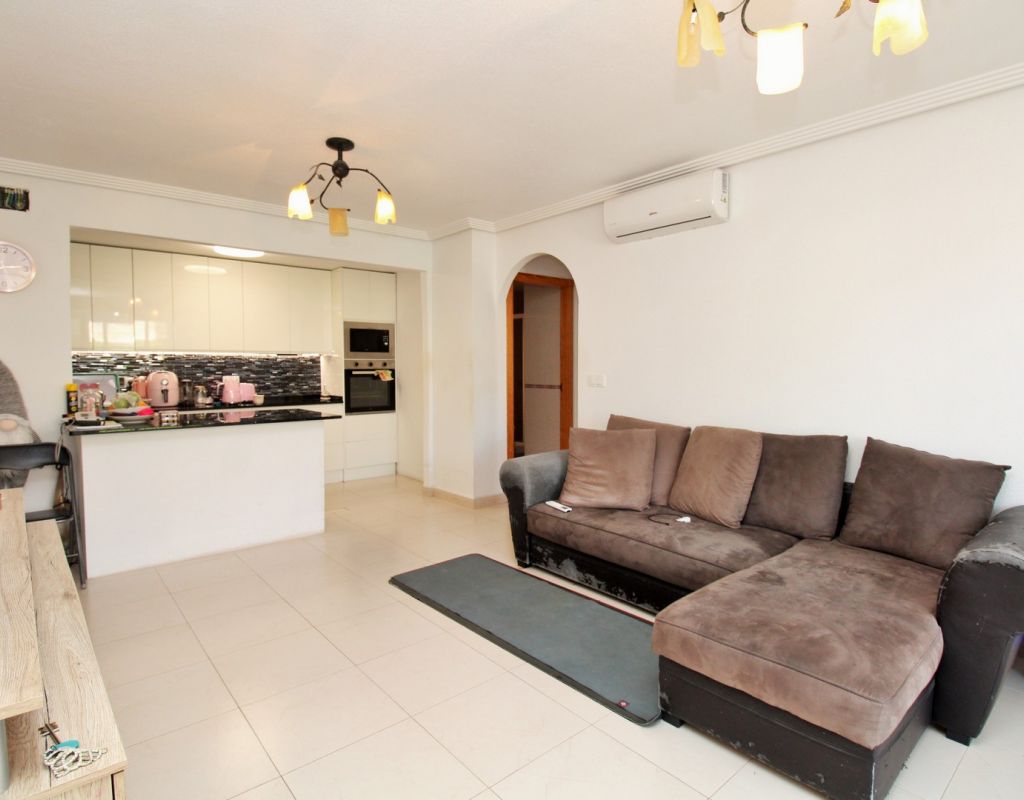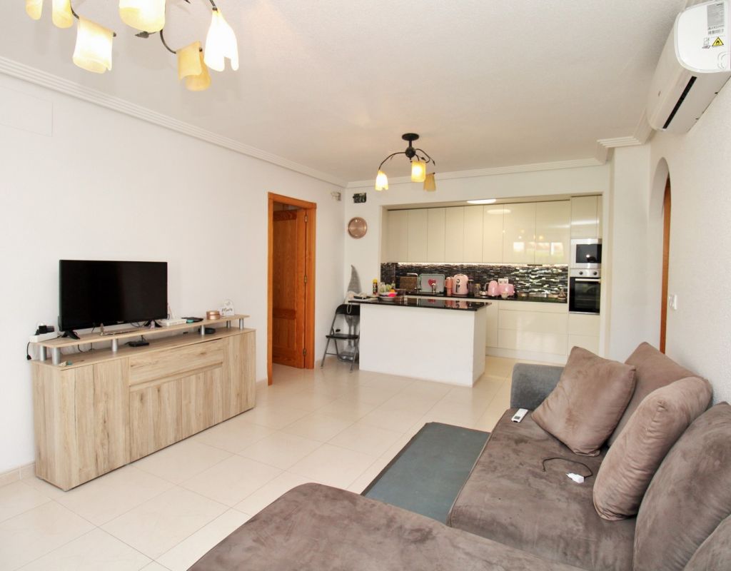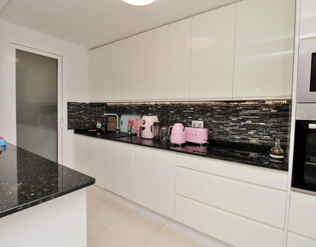 This well-presented ground floor apartment is located within the popular Zenia Mar 8 urbanisation in Playa Flamenca. The property offers two bedrooms and two bathrooms, along with a bright living and dining area that opens onto a terrace overlooking the spacious front garden. The kitchen has been fully renovated to a modern open-plan layout, complete with quality appliances and a separate utility area. The apartment is in excellent condition throughout, furnished and equipped with air conditioning. It is being sold fully furnished, including all white goods. Residents of Zenia Mar 8 enjoy beautifully maintained communal gardens and an impressive swimming pool area surrounded by greenery. The development is ideally located close to local amenities, shops, restaurants and within walking distance of the beach. Playa Flamenca offers a relaxed Mediterranean lifestyle with a warm climate, excellent facilities, and easy access to golf courses and the Orihuela Costa coastline.