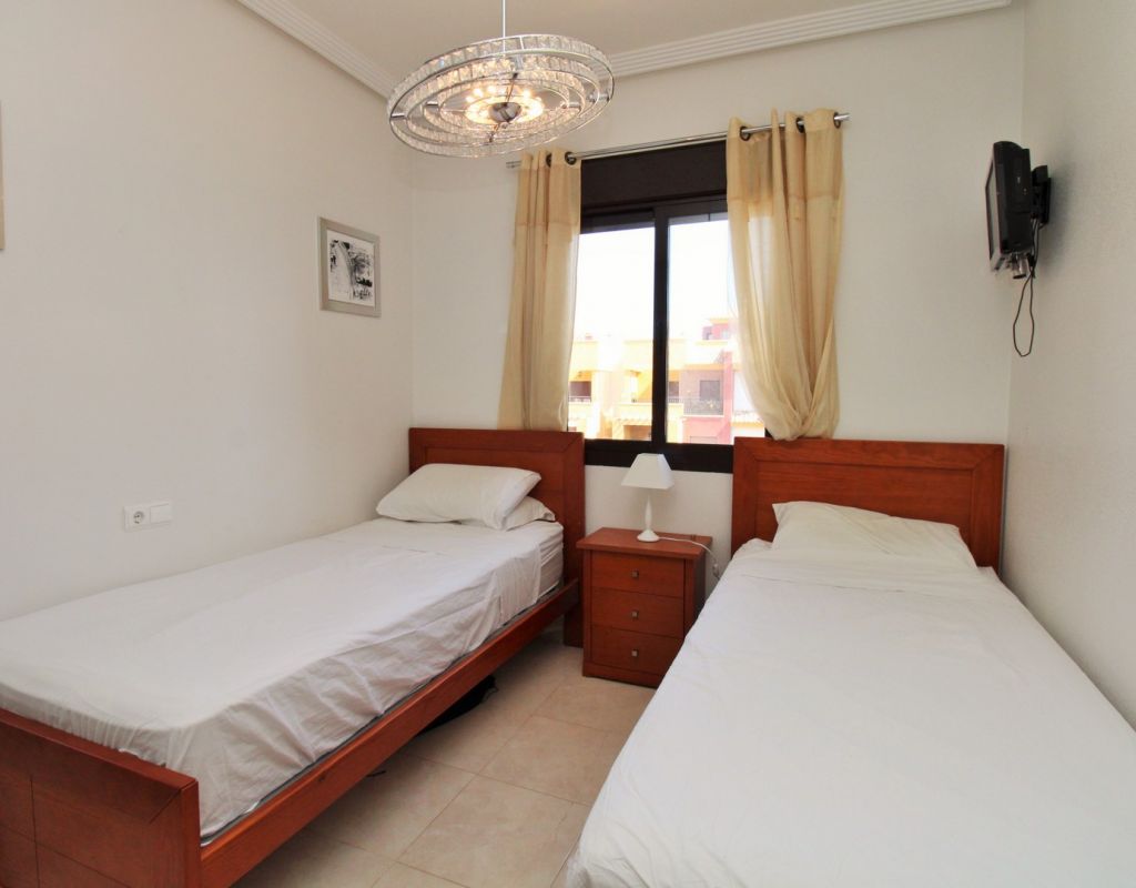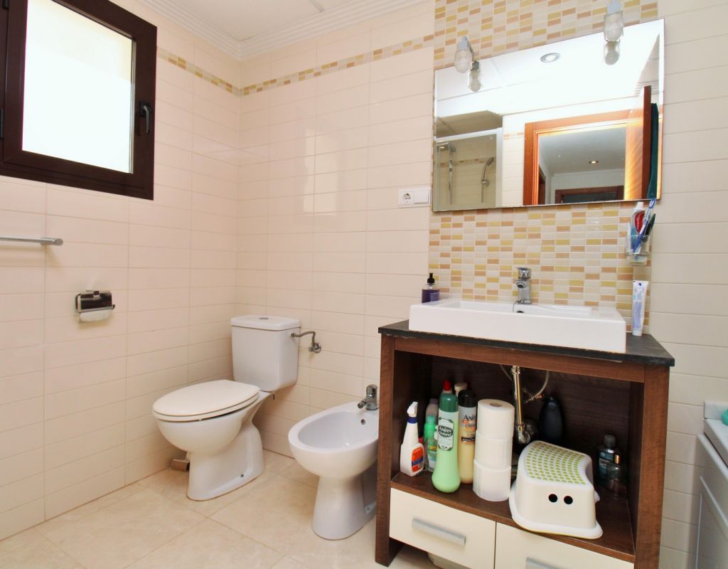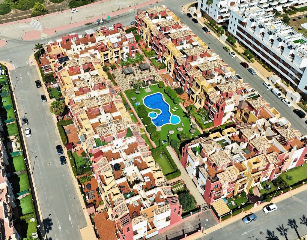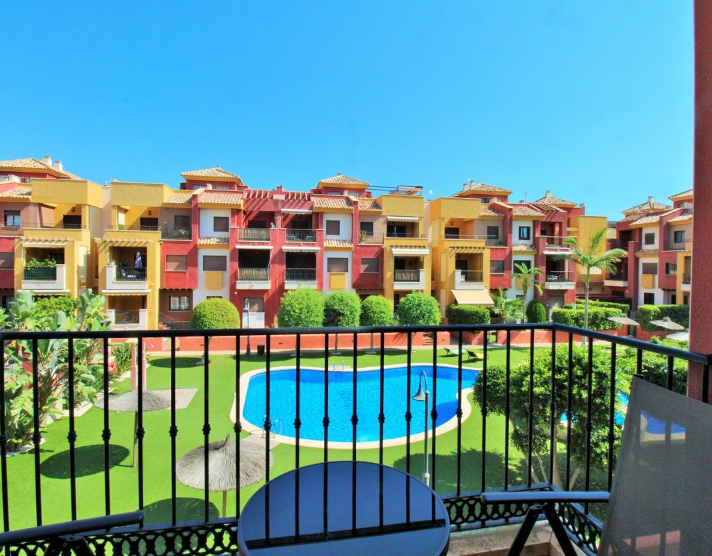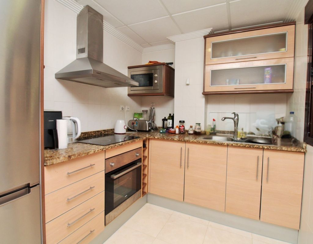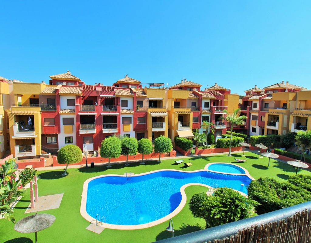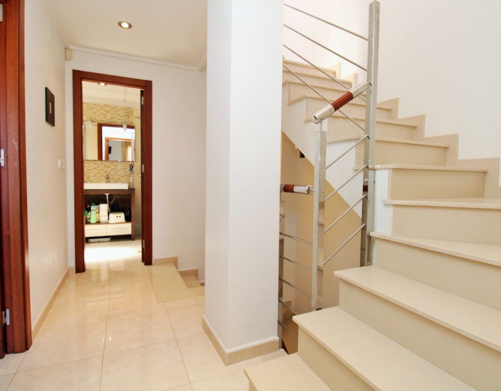 This well-presented duplex apartment is located within the prestigious Royal Park Spa development in Lomas de Cabo Roig, one of the most sought-after residential areas on the Orihuela Costa. Set within a secure gated community, the property enjoys attractive views over the communal pool and landscaped gardens and benefits from access to exclusive on-site spa facilities. The apartment offers two bedrooms and 1.5 bathrooms and includes an underground parking space in the price. Residents of Royal Park Spa enjoy use of a luxury wellness area, featuring an indoor heated swimming pool, gym, sauna, and steam room, making it ideal for year-round living or holidays. On the ground floor, the property comprises an entrance hallway, a spacious lounge-dining area with access to a covered balcony overlooking the pool, a separate fully fitted kitchen with adjoining utility room, and a guest toilet. Upstairs, there are two double bedrooms sharing a generous family bathroom with bath and shower. The master bedroom features its own private terrace with open views across the gardens. Internal stairs lead up to a large private roof solarium, complete with a built-in BBQ area, providing an excellent space for outdoor dining, sunbathing, and entertaining. Ideally situated within walking distance of bars, restaurants, and a supermarket, this property offers an excellent combination of comfort, leisure facilities, and convenient location in one of the area’s most desirable residential complexes.