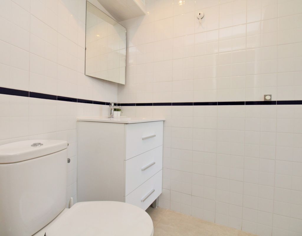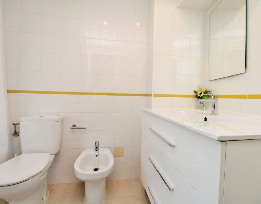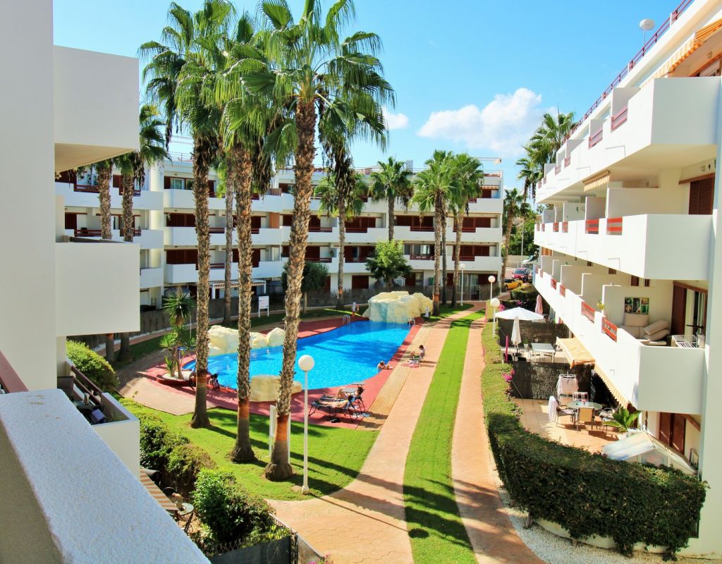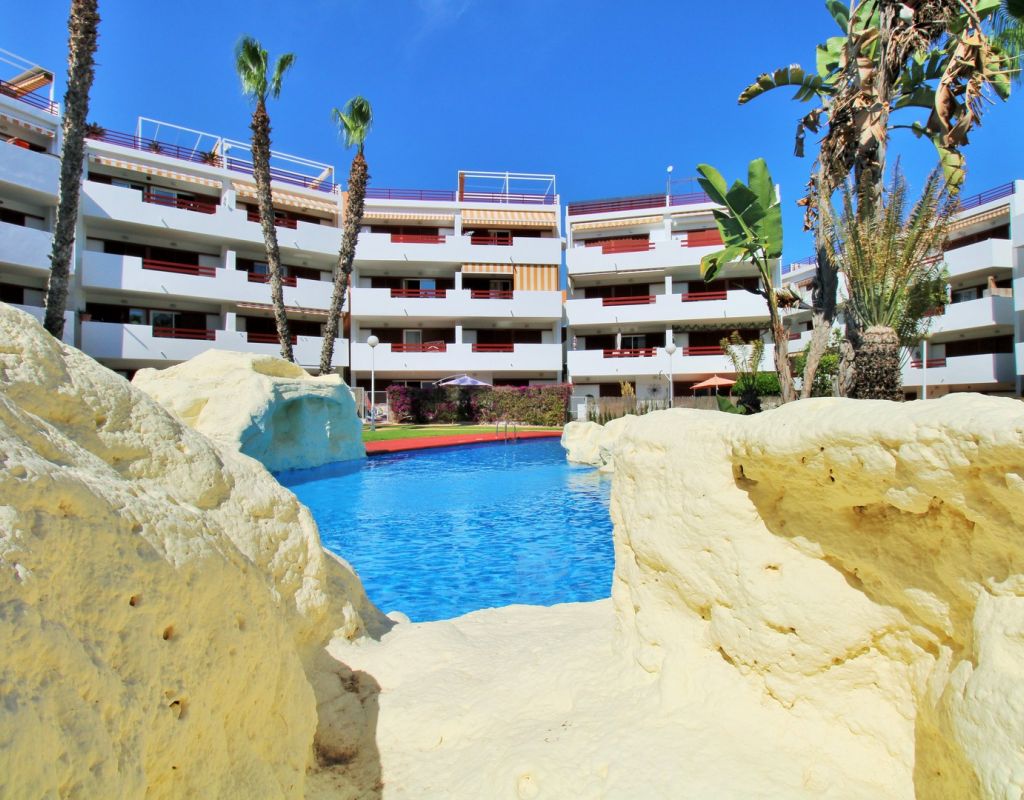 This beautifully presented 2-bedroom, 2-bathroom second-floor apartment (with lift access) is located in the highly sought-after El Rincon complex in Playa Flamenca. Ideally positioned overlooking the communal pool and gardens, the property enjoys a bright aspect and plenty of natural light thanks to its corner position with no adjoining block. The interior comprises an open lounge and dining area with patio doors leading to a private balcony offering attractive pool and garden views, an open-plan kitchen, and two double bedrooms each with fitted wardrobes and en-suite bathrooms featuring underfloor heating. The apartment also benefits from a utility/storage room, ducted air-conditioning throughout, and secure underground parking. Recent upgrades include new flooring and contemporary bathroom vanity units, while the entire community has recently been repainted, ensuring a fresh and well-maintained appearance. Residents enjoy access to two pristine communal swimming pools surrounded by lush gardens, creating a peaceful and inviting atmosphere. Perfectly situated, the apartment is just a short stroll from three supermarkets, the Playa Flamenca and Citrus commercial centres, offering a fantastic choice of bars, restaurants, and shops. The Playa Flamenca beach and Zenia Boulevard shopping mall are only a few minutes’ drive away. Whether you’re looking for a holiday retreat, permanent residence, or rental investment, this apartment offers excellent value in one of the Costa Blanca’s most desirable coastal locations. Don’t miss this opportunity!