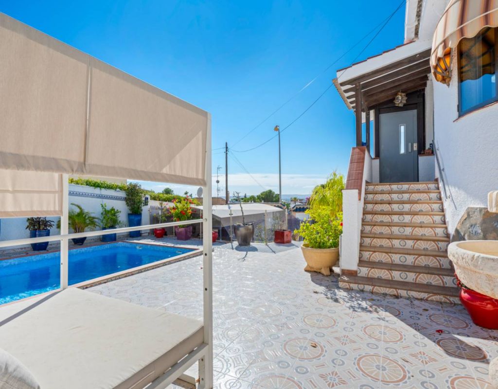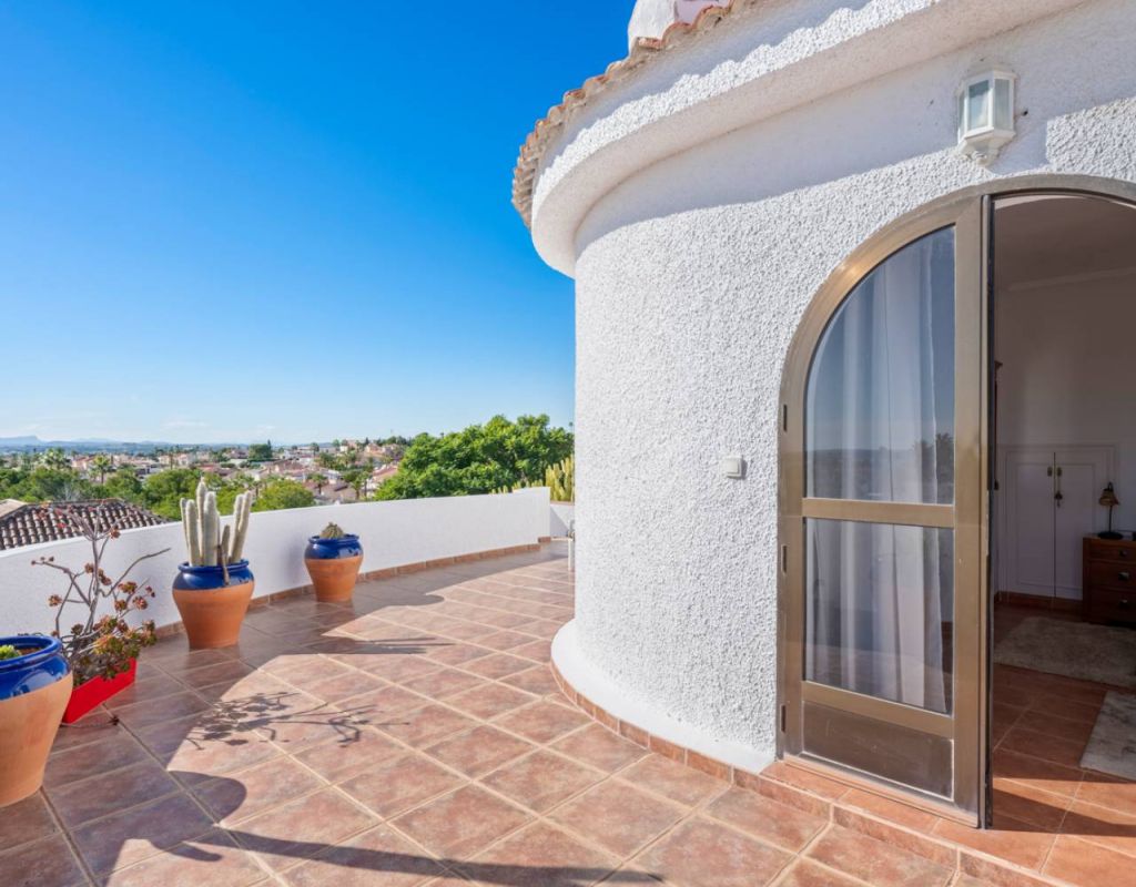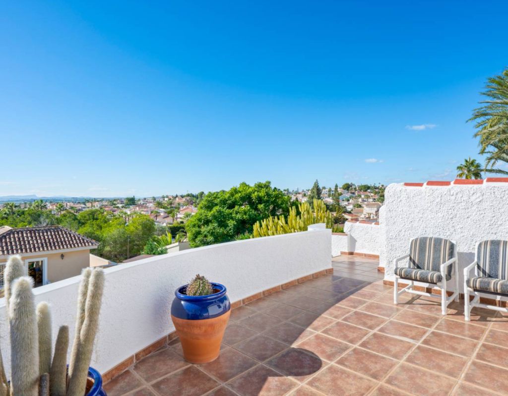 ☀️ Elegant 4-Bedroom South-Facing Villa with Private Pool, Lift & Panoramic Views Built in 1990 and presented in excellent condition, this stunning 4-bedroom, 3-bathroom villa offers 200m² of beautifully maintained living space on a 520m² plot. Perfectly positioned south-facing, the home enjoys sunshine all day and panoramic views of the surrounding area — just 10 minutes from the beach and close to golf, shops, and restaurants. The property features a spacious and bright interior, including both an open-plan kitchen and a separate fully equipped kitchen, ideal for entertaining or multi-generational living. The living area boasts a fireplace and access to a glazed terrace, creating a cozy space for year-round relaxation. The villa includes four double bedrooms with fitted wardrobes, one of which has its own separate entrance upstairs with stunning views across the salt lakes and over Quesada,with an ensuite bathroom, and modern comforts such as air conditioning, gas central heating, fibre optic internet, and even a lift for easy access between levels. Outside, you’ll find a private pool, outdoor kitchen and BBQ area, sun-drenched terraces, and a private solarium — perfect for enjoying the Mediterranean lifestyle. Additional features include: Off-road parking & carportElectric gates & gated entranceAlarm systemWater filtration systemUtility roomFurniture negotiable Located just 10 minutes from the beach, 5 minutes from local amenities, and 30 minutes from the airport, this property offers the perfect blend of comfort, convenience, and quality — ideal as a permanent residence or luxury holiday home.