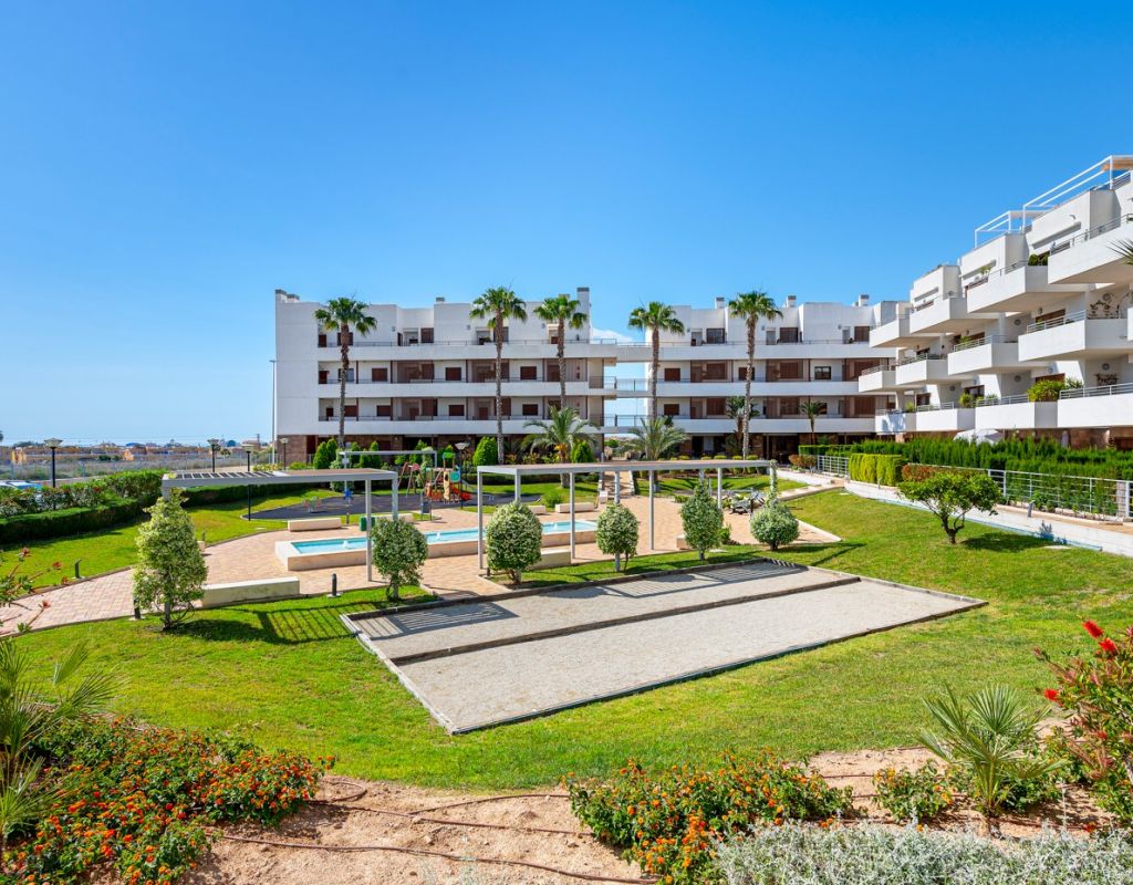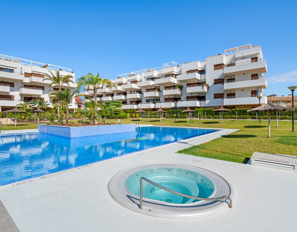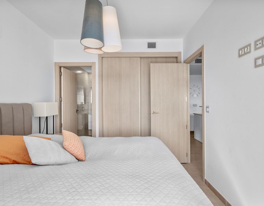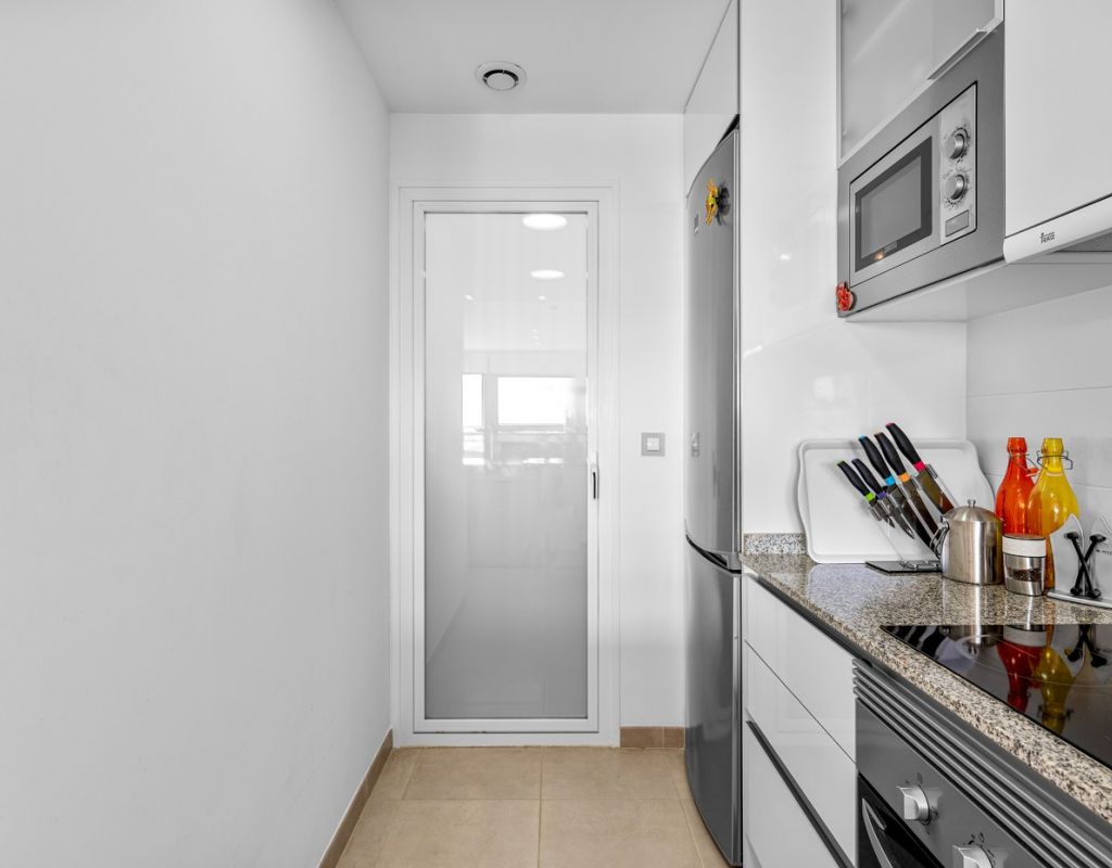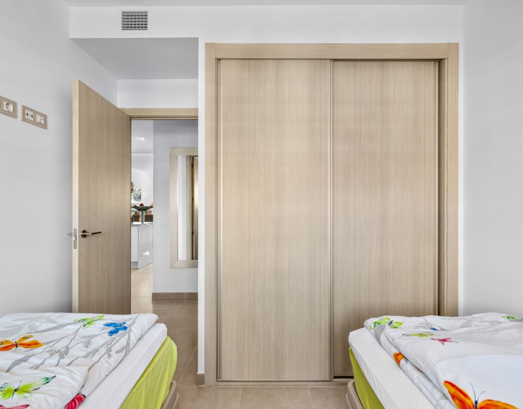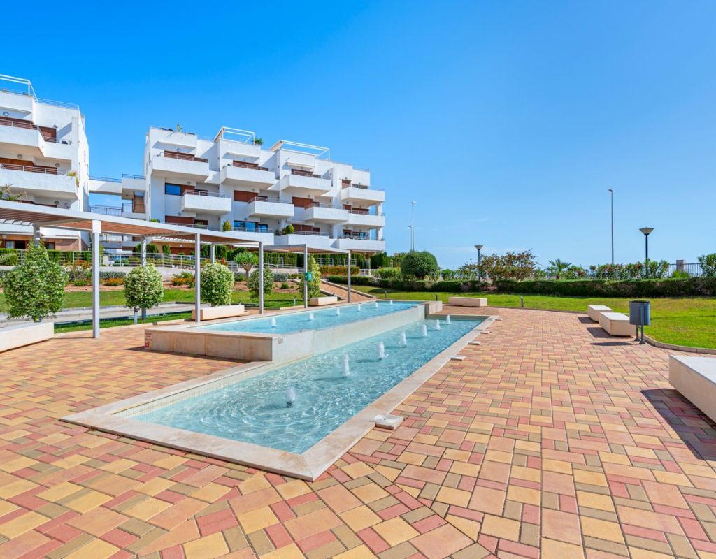 Bright and spacious apartment with sea views – close to La Zenia Boulevard. Lomas de Cabo Roig. Terrazas de Campoamor. This is a beautiful modern apartment with high ceilings and large windows that let in plenty of natural light. Here you will get a fantastic sea view and a warm atmosphere. The apartment has 2 bedrooms, 2 bathrooms, a storage room, an enclosed utility room, and a good-sized kitchen. The apartment offers: - Bright and airy living room with large windows and an open plan layout - Bedrooms with plenty of space and natural light - Under-bed storage - Cabinet for practical storage - Private, indoor parking - Gated community - Walking distance to restaurantes and grocery store Short walk to La Zenia Boulevard – one of the Costa Blanca’s largest shopping centres with over 150 shops, restaurants, a pharmacy and a bowling alley. Not far from the apartment are both Las Ramblas Golf and Las Colinas Golf & Country Club which are two outstanding golf courses located in Orihuela Costa, Alicante. This is a rare opportunity to live in an apartment that combines comfort, views and a prime location.