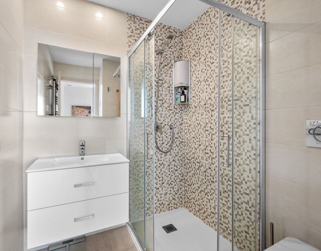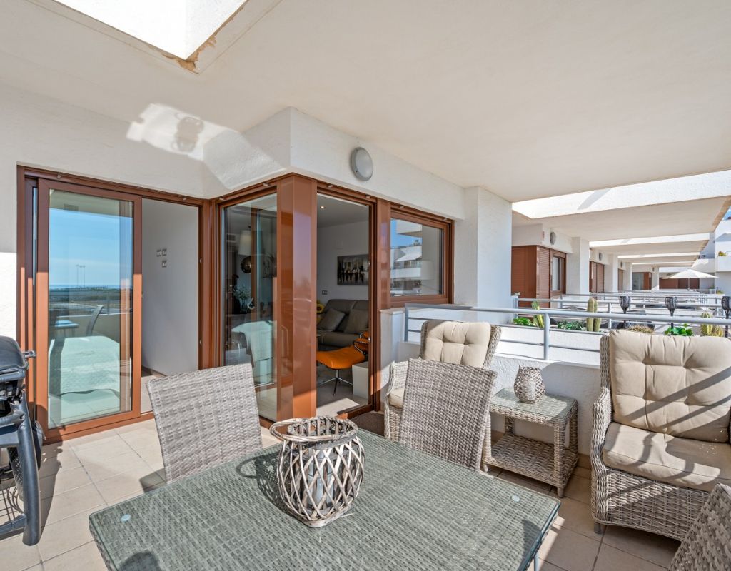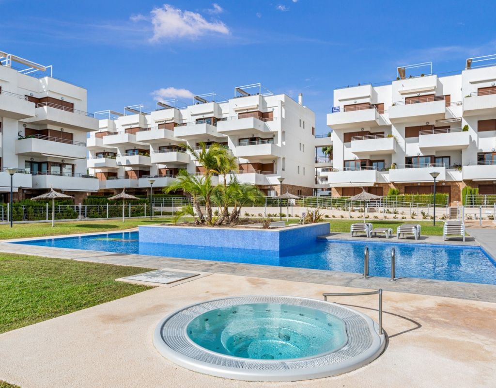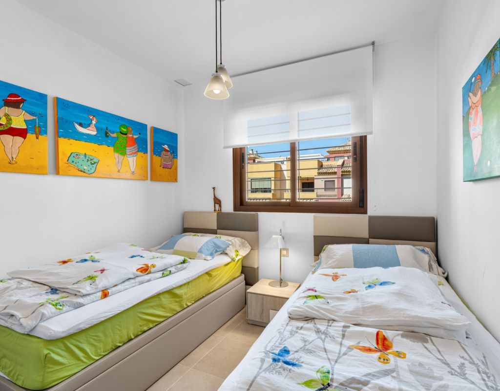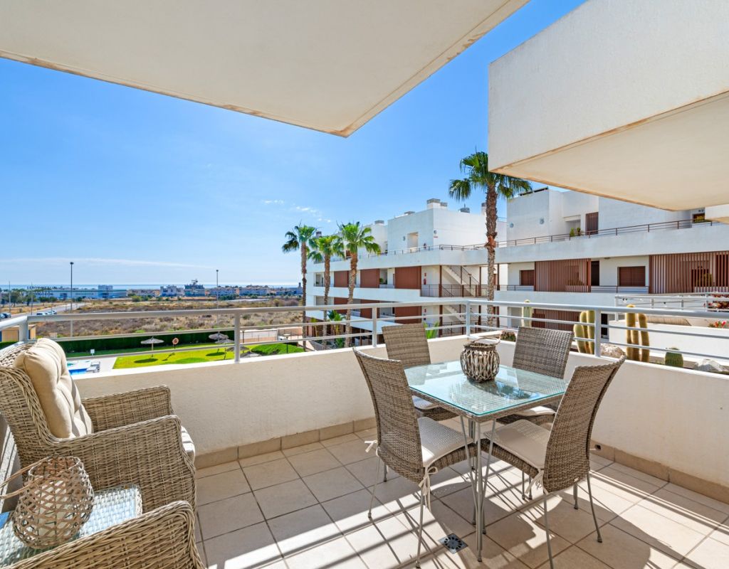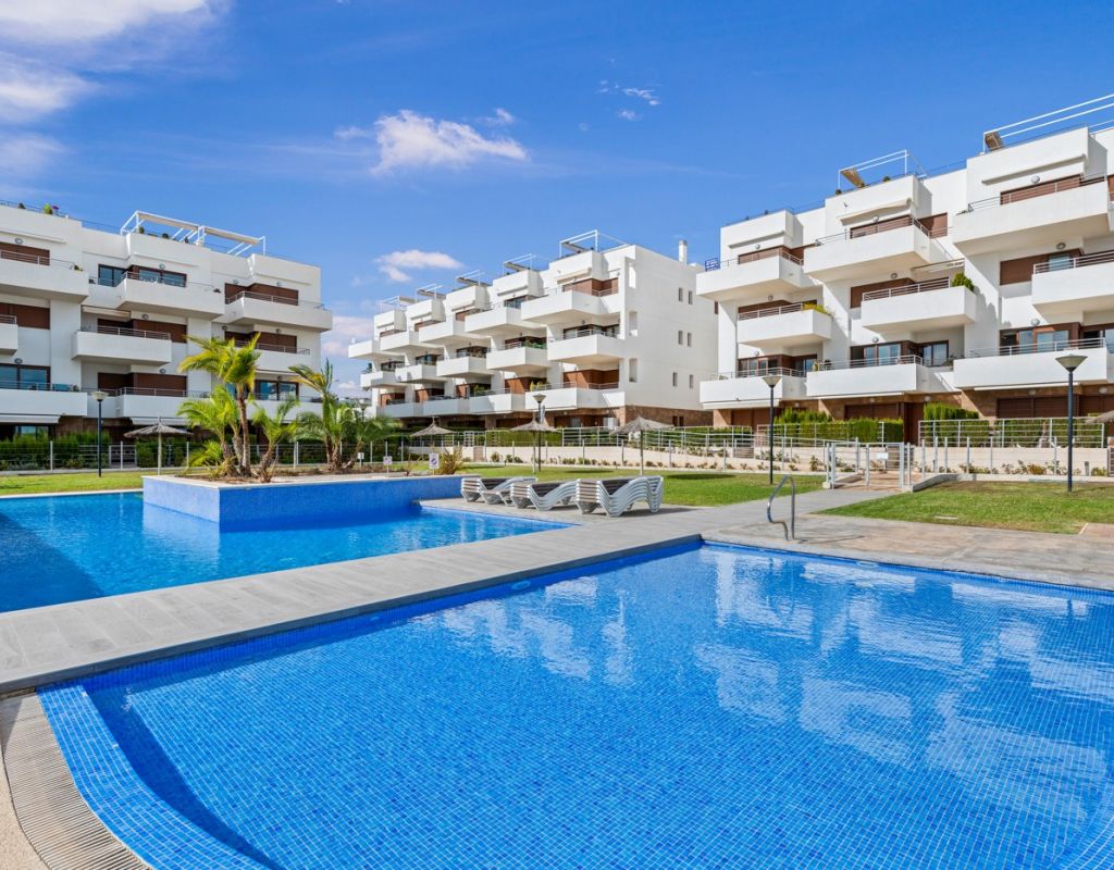 Bright and spacious apartment with sea views – close to La Zenia Boulevard. Lomas de Cabo Roig. Terrazas de Campoamor. This is a beautiful modern apartment with high ceilings and large windows that let in plenty of natural light. Here you will get a fantastic sea view and a warm atmosphere. The apartment has 2 bedrooms, 2 bathrooms, a storage room, an enclosed utility room, and a good-sized kitchen. The apartment offers: - Bright and airy living room with large windows and an open plan layout - Bedrooms with plenty of space and natural light - Under-bed storage - Cabinet for practical storage - Private, indoor parking - Gated community - Walking distance to restaurantes and grocery store Short walk to La Zenia Boulevard – one of the Costa Blanca’s largest shopping centres with over 150 shops, restaurants, a pharmacy and a bowling alley. Not far from the apartment are both Las Ramblas Golf and Las Colinas Golf & Country Club which are two outstanding golf courses located in Orihuela Costa, Alicante. This is a rare opportunity to live in an apartment that combines comfort, views and a prime location.