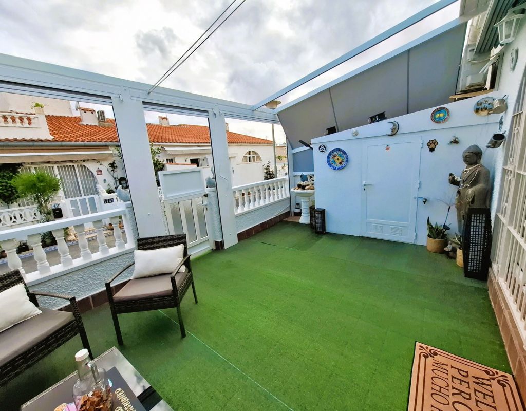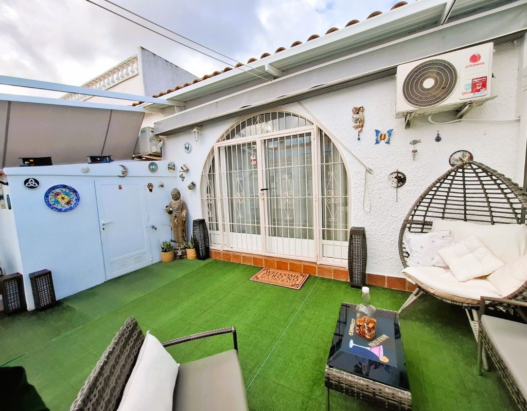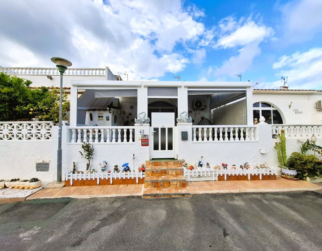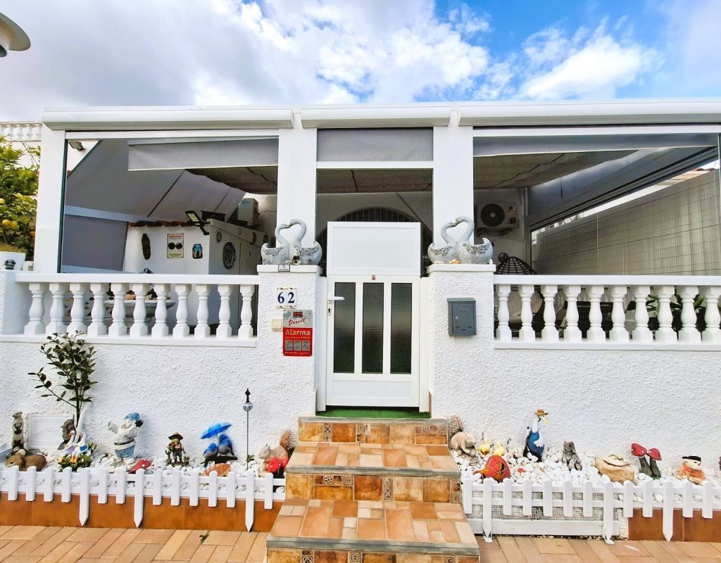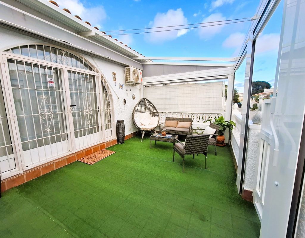 Cosy bungalow for sale, located in a very quiet residential area of Torrevieja, ideal for those seeking comfort, privacy and a home that is ready to move into. The property has been refurbished and offers a practical layout with 2 bedrooms, 1 full bathroom, living-dining room and spacious separate kitchen, providing functionality and comfort for everyday living. At the entrance there is a 25 m² terrace, equipped for enjoying moments of relaxation outdoors and family gatherings, as well as a small storage room and a complete mobile enclosure, which allows you to make the most of the space at any time of the year. The property has an alarm system and air conditioning, ensuring security and thermal comfort. From the interior, there is access to a loft currently used as a storage room, with the possibility of extension, allowing for an additional bedroom and bathroom to be added, which adds interesting potential for improvement and value to the property. It is sold furnished, ready to move into, with no additional initial investment required. Another highlight is that there are no community fees, which avoids monthly expenses, and there is free parking on the adjacent street, making parking convenient and free of charge. An excellent opportunity for those looking for a practical, comfortable home with outdoor space and located in a quiet area within Torrevieja.