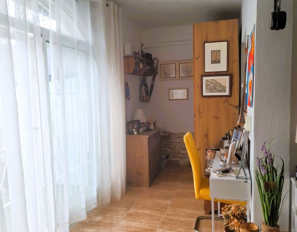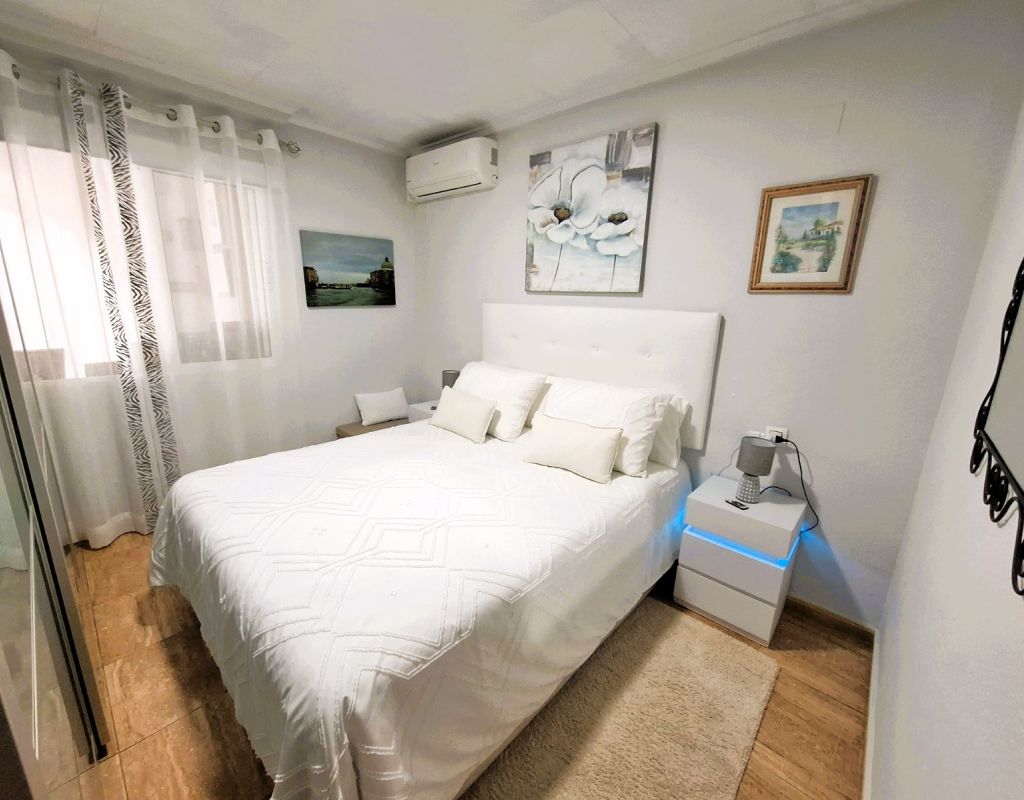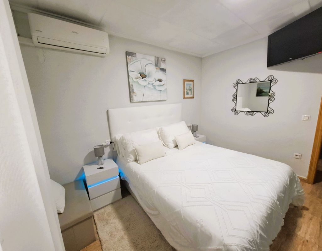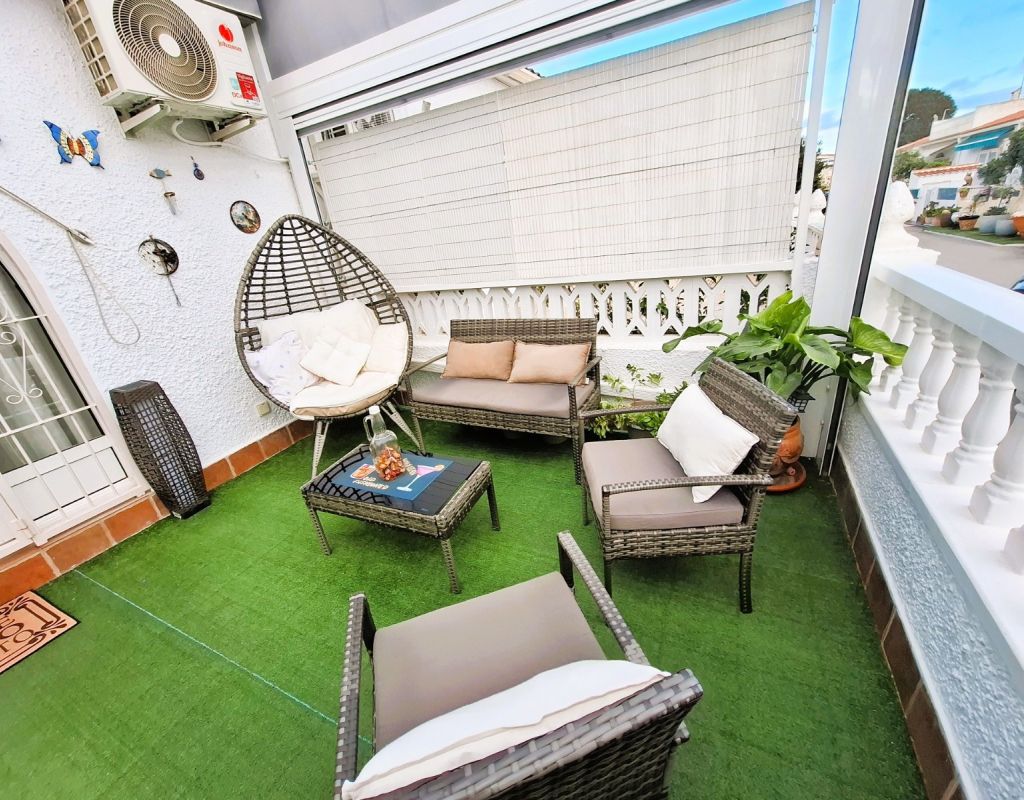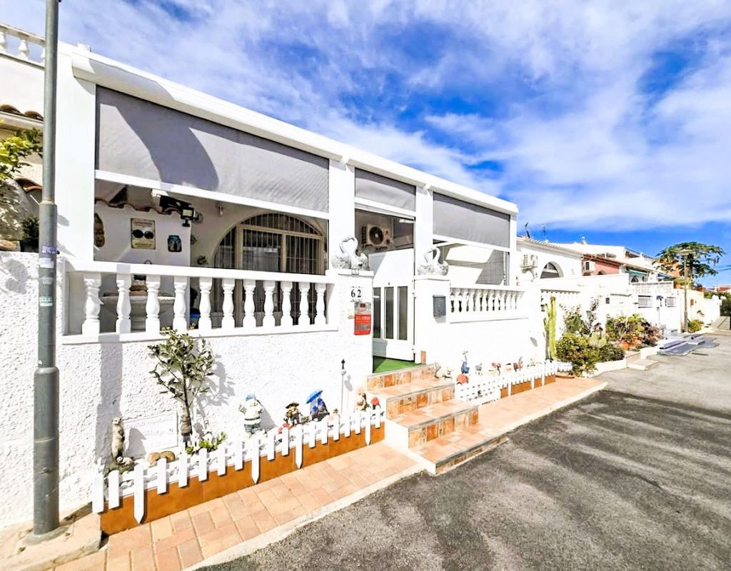Cosy bungalow for sale, located in a very quiet residential area of Torrevieja, ideal for those seeking comfort, privacy and a home that is ready to move into. The property has been refurbished and offers a practical layout with 2 bedrooms, 1 full bathroom, living-dining room and spacious separate kitchen, providing functionality and comfort for everyday living. At the entrance there is a 25 m² terrace, equipped for enjoying moments of relaxation outdoors and family gatherings, as well as a small storage room and a complete mobile enclosure, which allows you to make the most of the space at any time of the year. The property has an alarm system and air conditioning, ensuring security and thermal comfort. From the interior, there is access to a loft currently used as a storage room, with the possibility of extension, allowing for an additional bedroom and bathroom to be added, which adds interesting potential for improvement and value to the property. It is sold furnished, ready to move into, with no additional initial investment required. Another highlight is that there are no community fees, which avoids monthly expenses, and there is free parking on the adjacent street, making parking convenient and free of charge. An excellent opportunity for those looking for a practical, comfortable home with outdoor space and located in a quiet area within Torrevieja.