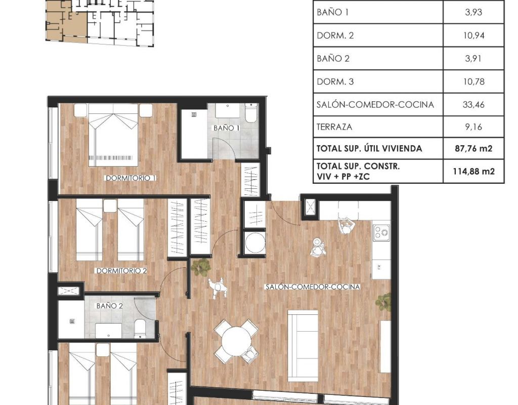 Modern New Build Apartments in Central Torrevieja Costa Blanca Exclusive Residential Development With Premium Amenities Discover a select new construction project of 35 modern apartments in the heart of Torrevieja. Offering 1, 2 or 3 bedroom layouts and 2 or 3 bathrooms, this residence also features luxury penthouses with private solariums. Designed for comfort and style, this community blends contemporary architecture with high quality finishes and exceptional shared facilities. Prime Location in Central Torrevieja Located just 600 meters from Acequion Beach, this development enjoys one of the most privileged positions in Torrevieja. With supermarkets, restaurants, medical services, shops and public transport all within walking distance, this is the perfect choice for those seeking a comfortable Mediterranean lifestyle close to everything. Torrevieja is famous for its mild Mediterranean climate, beautiful sandy beaches and vibrant seaside promenades, making it a top destination on the Costa Blanca. Resort Style Facilities for Wellness and Relaxation The building includes an exceptional range of communal amenities. On the ground floor you will find a heated swimming pool, a social club space and a fully equipped gym. The rooftop solarium provides a true relaxation oasis with sun loungers, a Finnish sauna, barbecue area and mini pool jacuzzi. Both stairs and lift access lead to the rooftop, offering comfort and accessibility for all residents. High Quality Homes With Contemporary Design These new build apartments feature open plan American style kitchens integrated with the living room, spacious terraces, fitted wardrobes and fully equipped kitchens with appliances. Bathrooms include furniture, shower screens and underfloor heating for maximum comfort. There is also pre installation for ducted air conditioning. Optional underground parking and storage rooms are available at an additional cost. Surrounded by Nature and Coastal Beauty Torrevieja is famous for its natural salt lagoons and protected natural parks. The La Mata and Torrevieja Natural Park is located just a short distance from the city and offers beautiful trails and stunning pink and green salt lakes. This unique environment provides a healthy lifestyle and breathtaking landscapes. Distances to Key Points of Interest Acequion Beach 0.6 km Torrevieja Marina 1.5 km La Mata Natural Park 4 km Villamartin Golf 8 km Alicante Airport 45 km Murcia Airport 60 km Live the Mediterranean Lifestyle Do not miss the opportunity to own a modern home in one of the most desirable coastal cities in Spain. Contact us today to schedule a visit and secure your place in this exceptional new development.