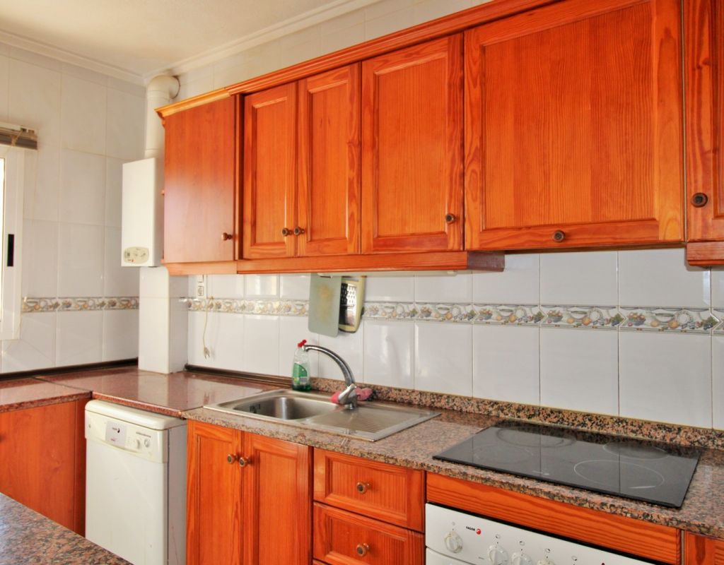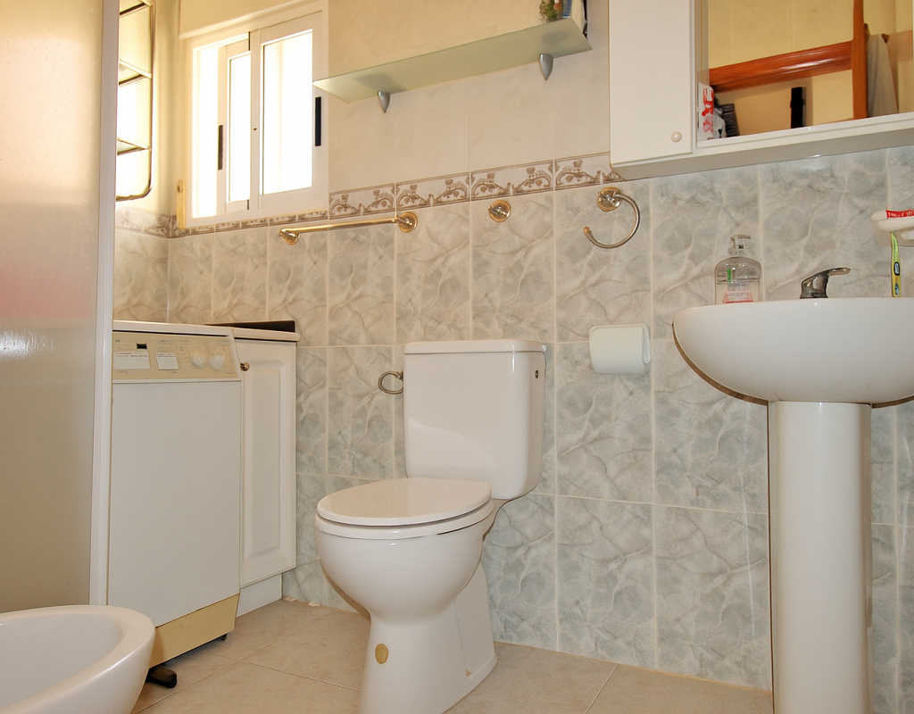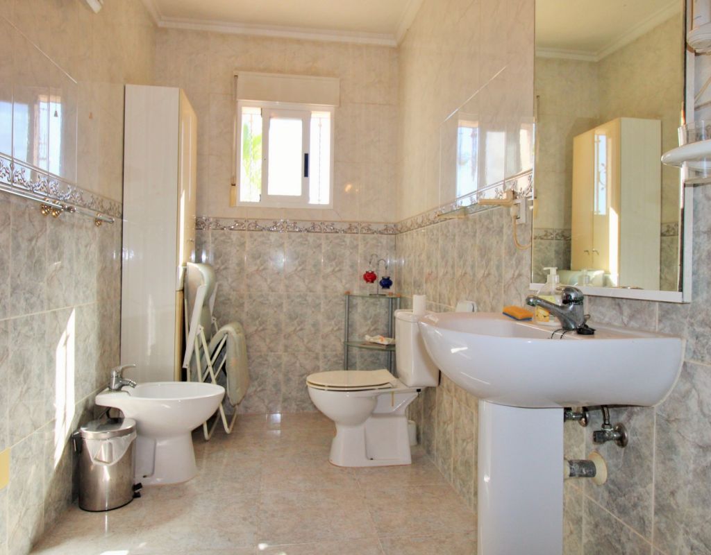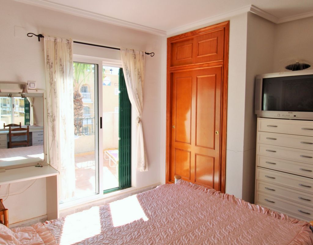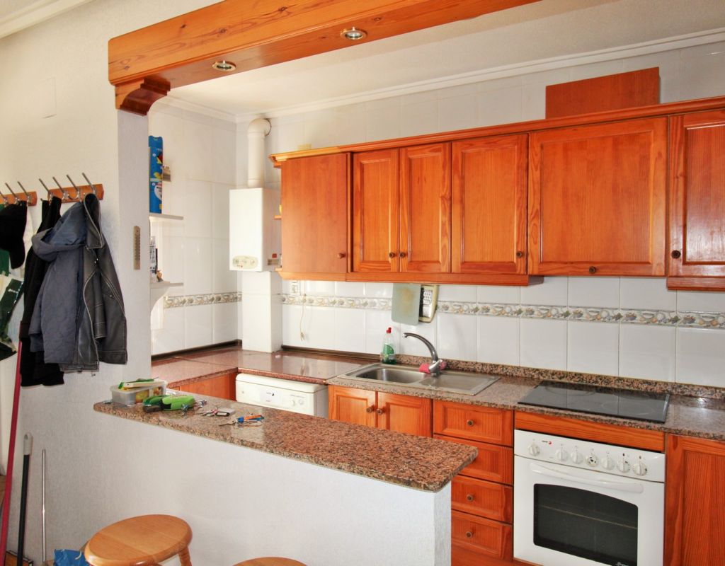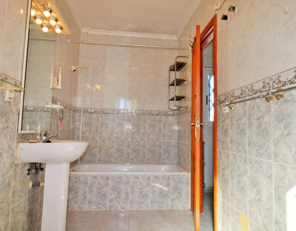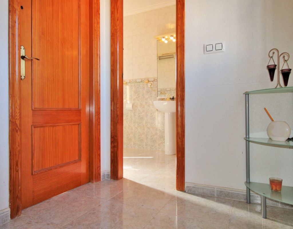 Substantial semi-detached townhouse with a large underbuild in the sought-after community of Montegolf VI in Villamartin. The property offers 3 bedrooms and 2 bathrooms in the main living accommodation, with additional flexible living space in the underbuild. Externally, the home benefits from a private rear garden, off-road parking, a front terrace, and a roof solarium. Residents also enjoy the use of a beautiful communal pool within the development. The main level features a raised front terrace leading into a bright living and dining area with feature fireplace, a fitted kitchen to the side, two double bedrooms, and a family bathroom. The upper floor offers the master bedroom with its own bathroom and direct access to the roof solarium. The spacious semi-basement level provides additional accommodation, currently used as a separate apartment comprising lounge area, three bedrooms, a bathroom, and a secondary kitchen. This space is ideal for guests, extended family, hobbies, fitness studio, or home office use. Located within a short walk of the Villamartin Plaza and golf course, and just a few minutes' drive to the beaches of the Orihuela Costa and the Zenia Boulevard shopping centre, this property offers excellent versatility in a highly popular residential setting.